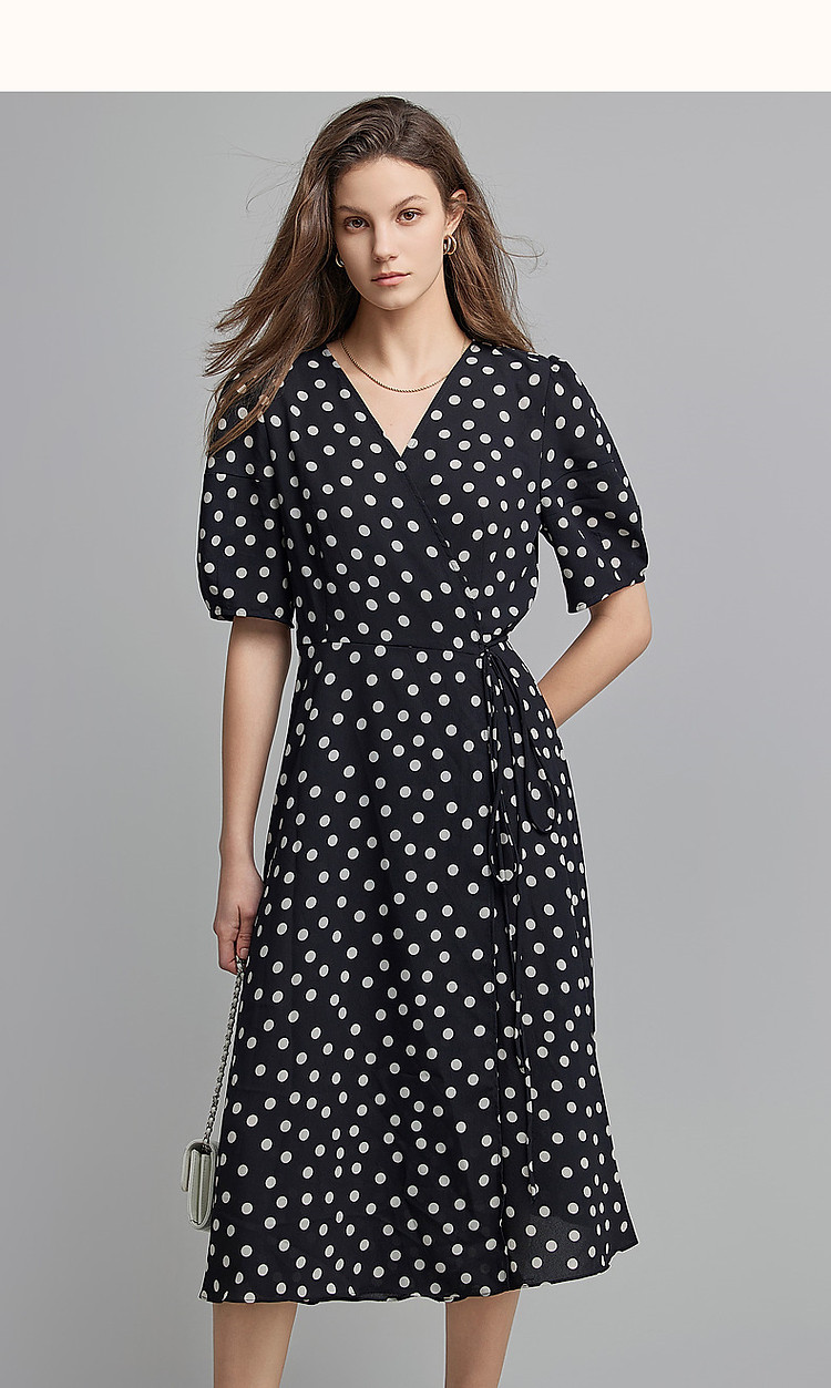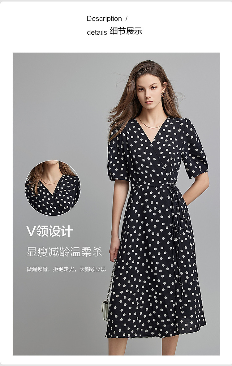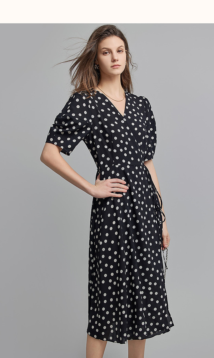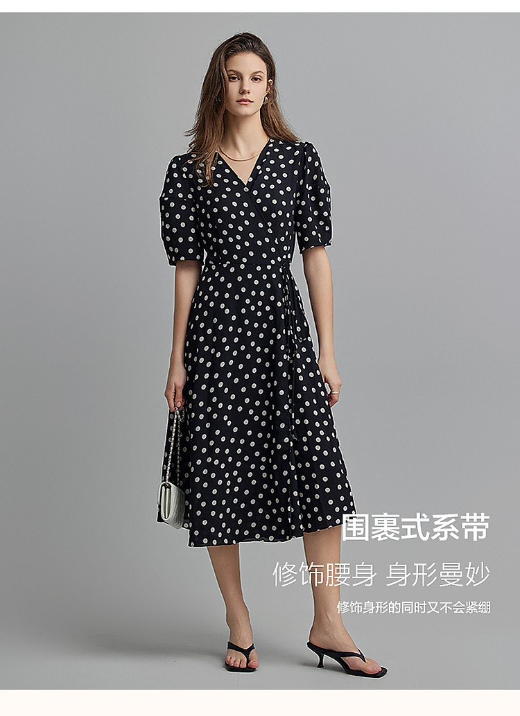 商品名称:【法式下午茶】夏V领波点包裹式茶歇裙交叉绑带连衣裙女中长款 577217