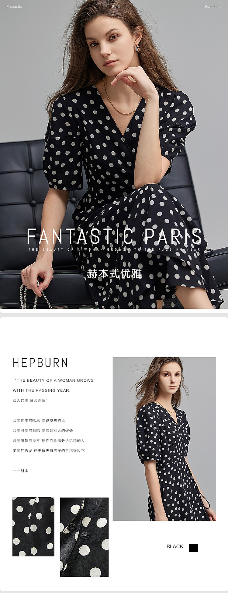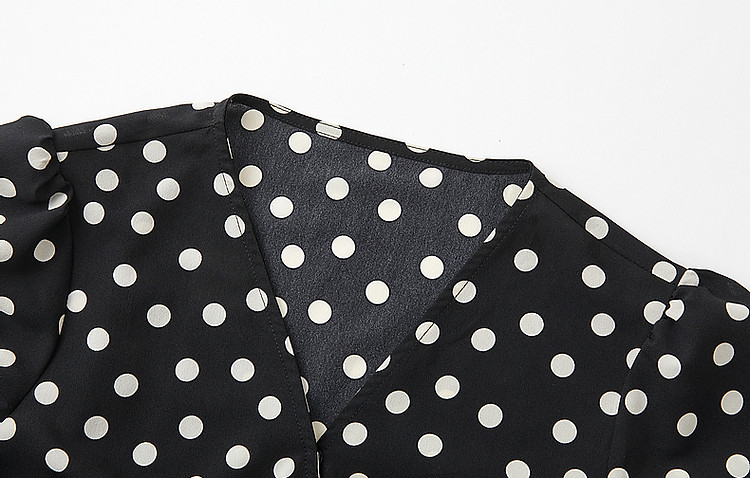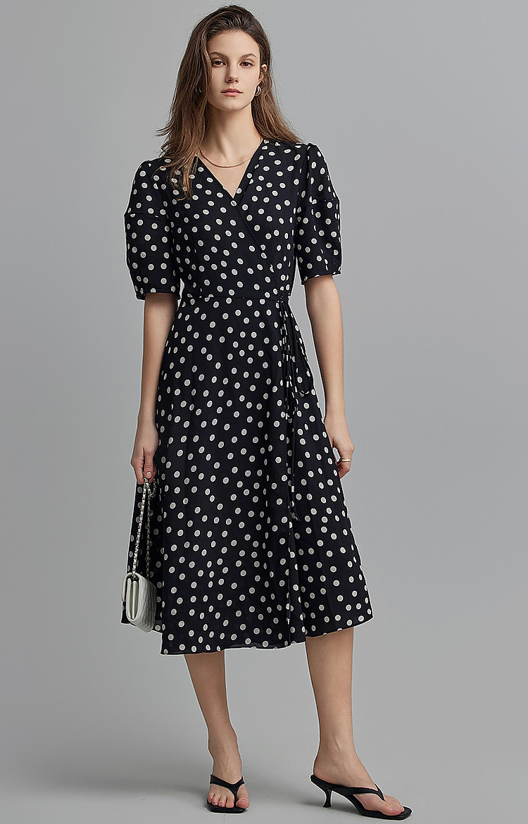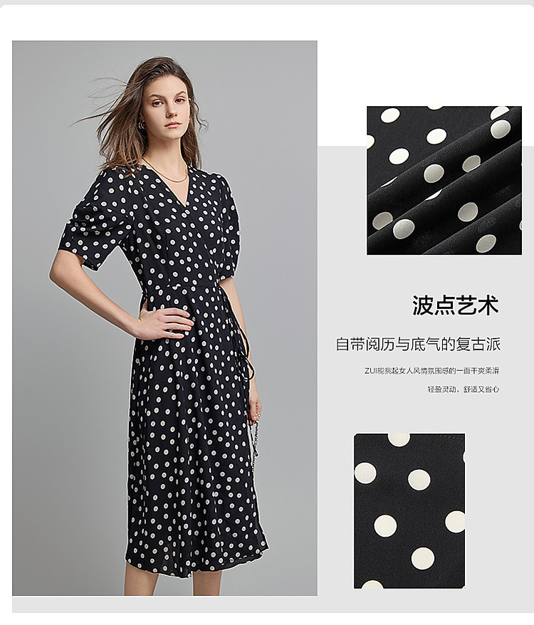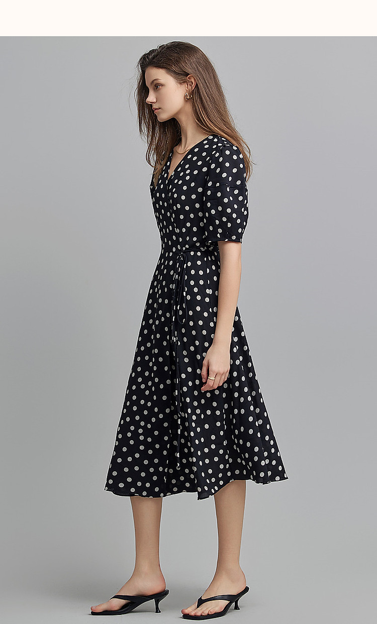 商品名称:【法式下午茶】夏V领波点包裹式茶歇裙交叉绑带连衣裙女中长款 577217