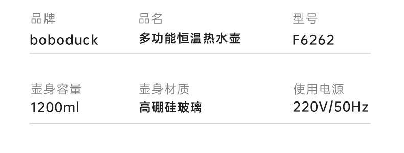 商品名称:大嘴鸭 (boboduck) 多功能恒温热水壶 1.2L F6262