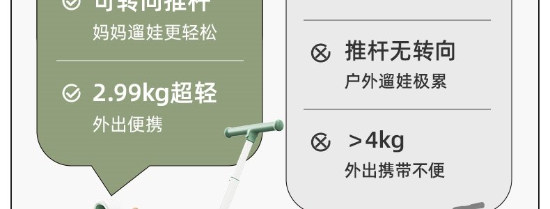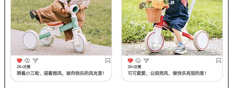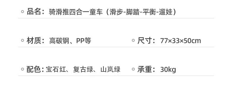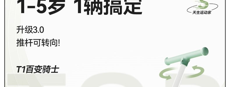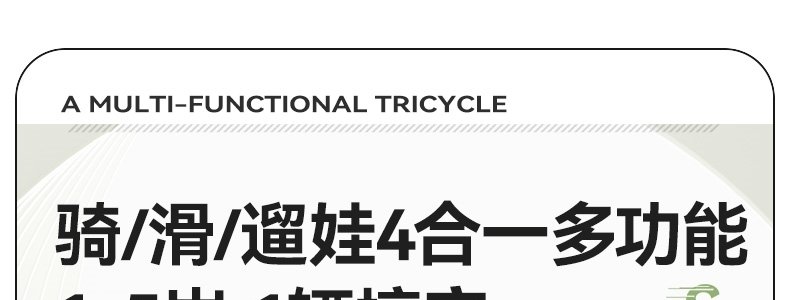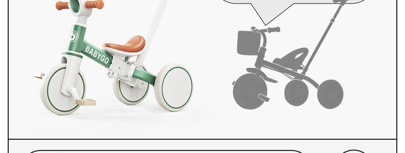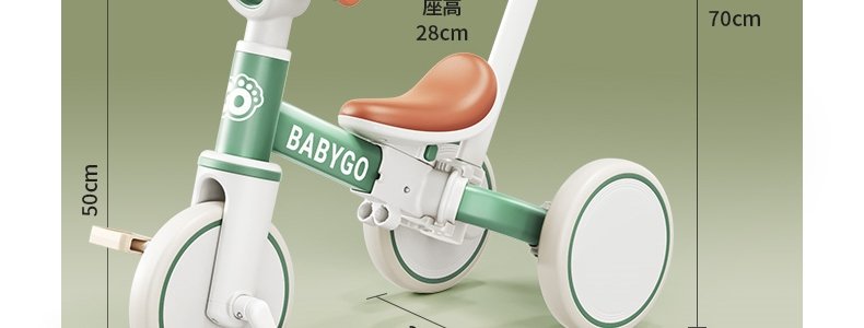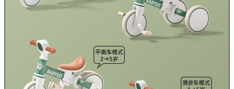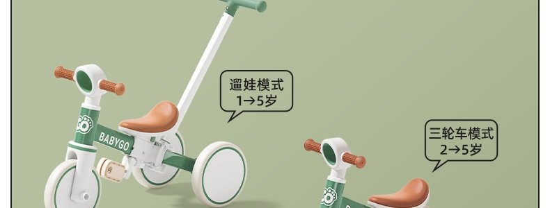 商品名称:BABYGO 儿童多功能三轮车 T1百变骑士 Pro2推杆可转向 山岚绿