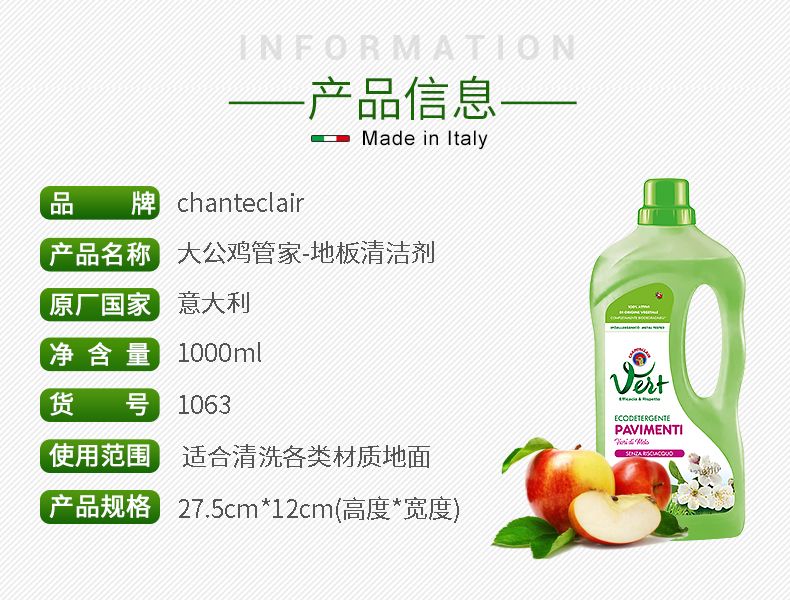商品名称:大公鸡管家 地板清洗剂(花香)1000ml