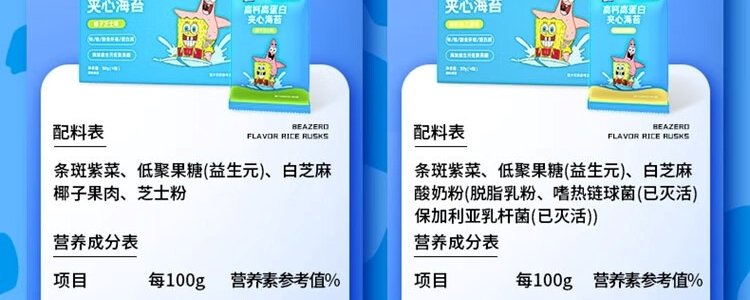 商品名称:海绵宝宝 夹心海苔 椰子芝士味 32g