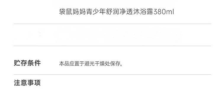 商品名称:袋鼠妈妈 青少年舒润净透沐浴露 380ml