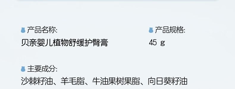 商品名称:贝亲(Pigeon)婴儿植物舒缓护臀膏 45g