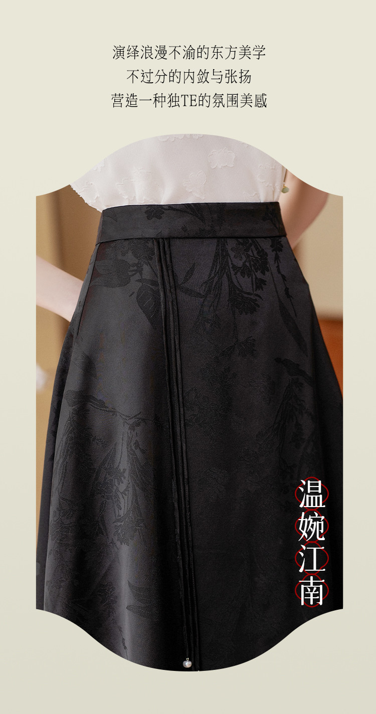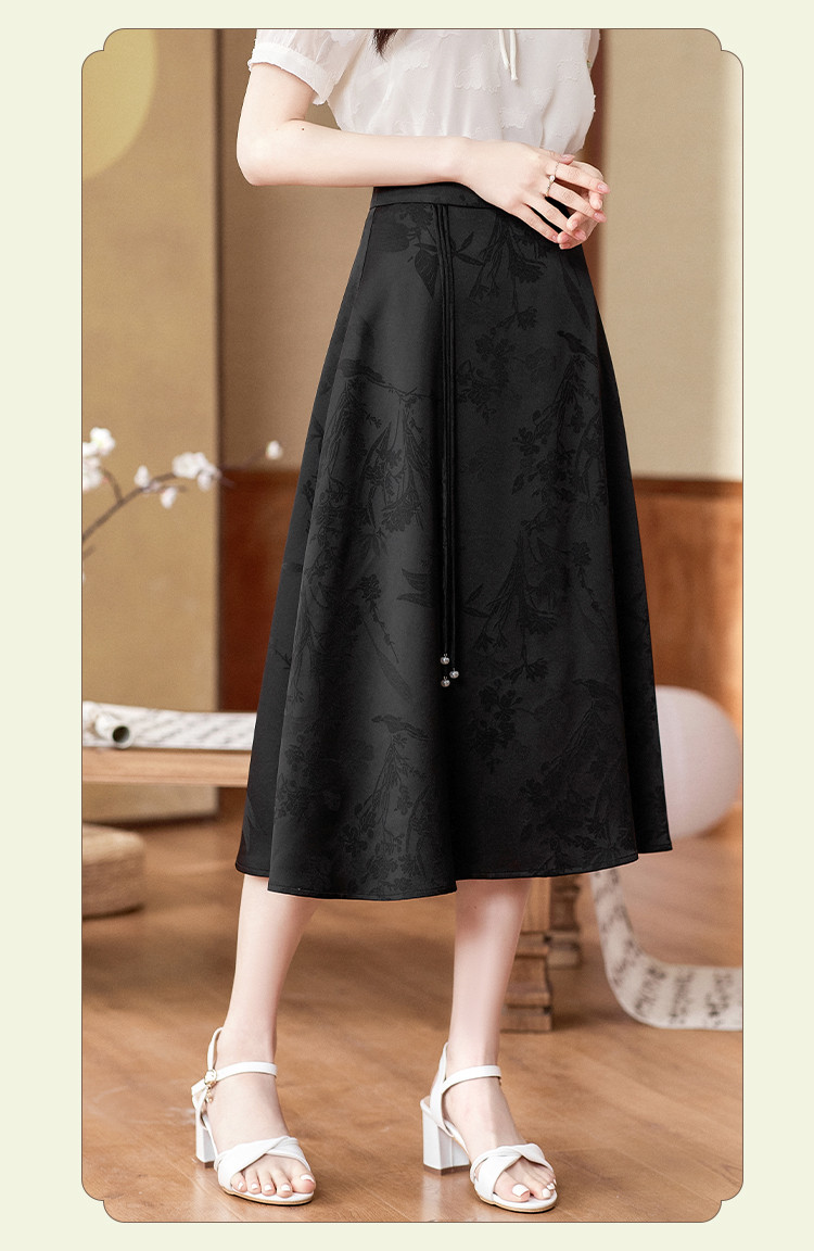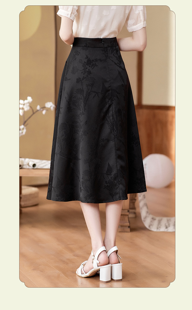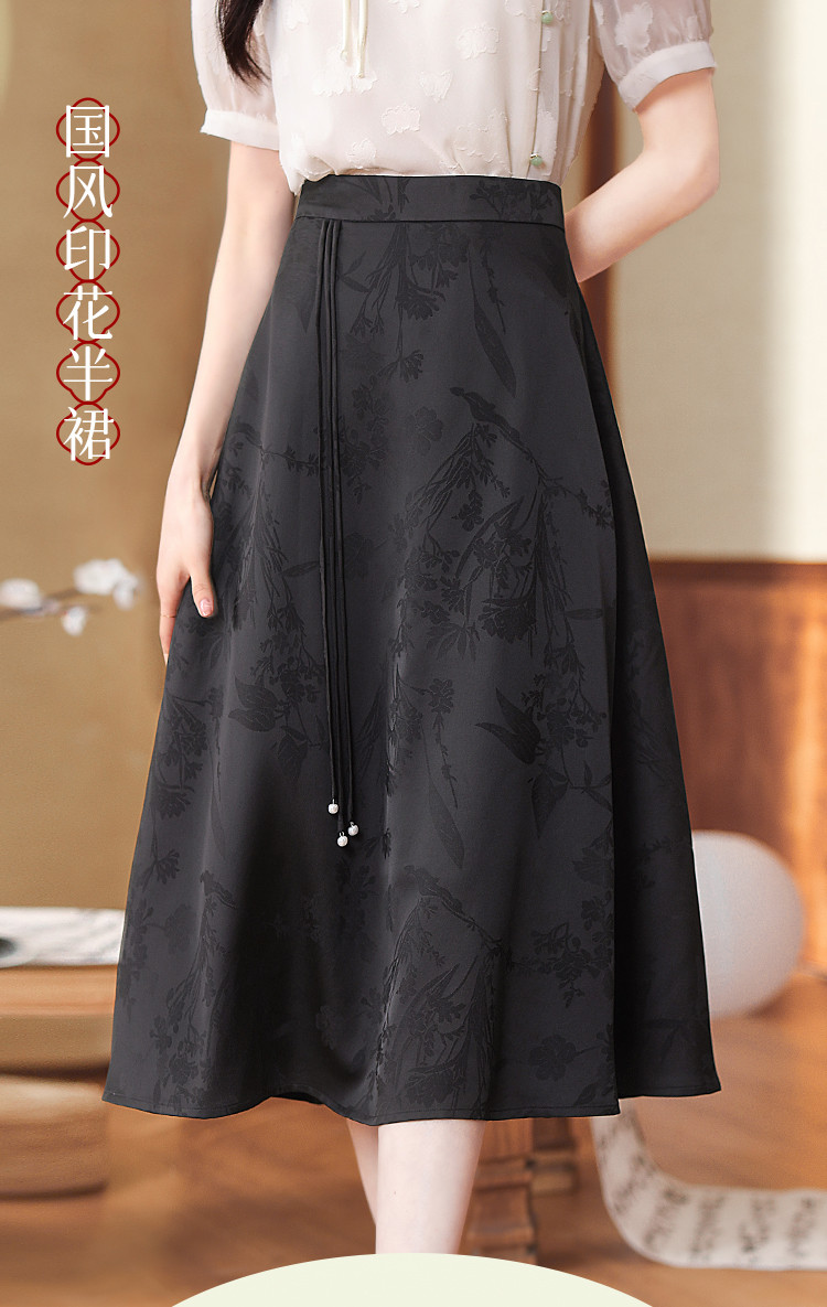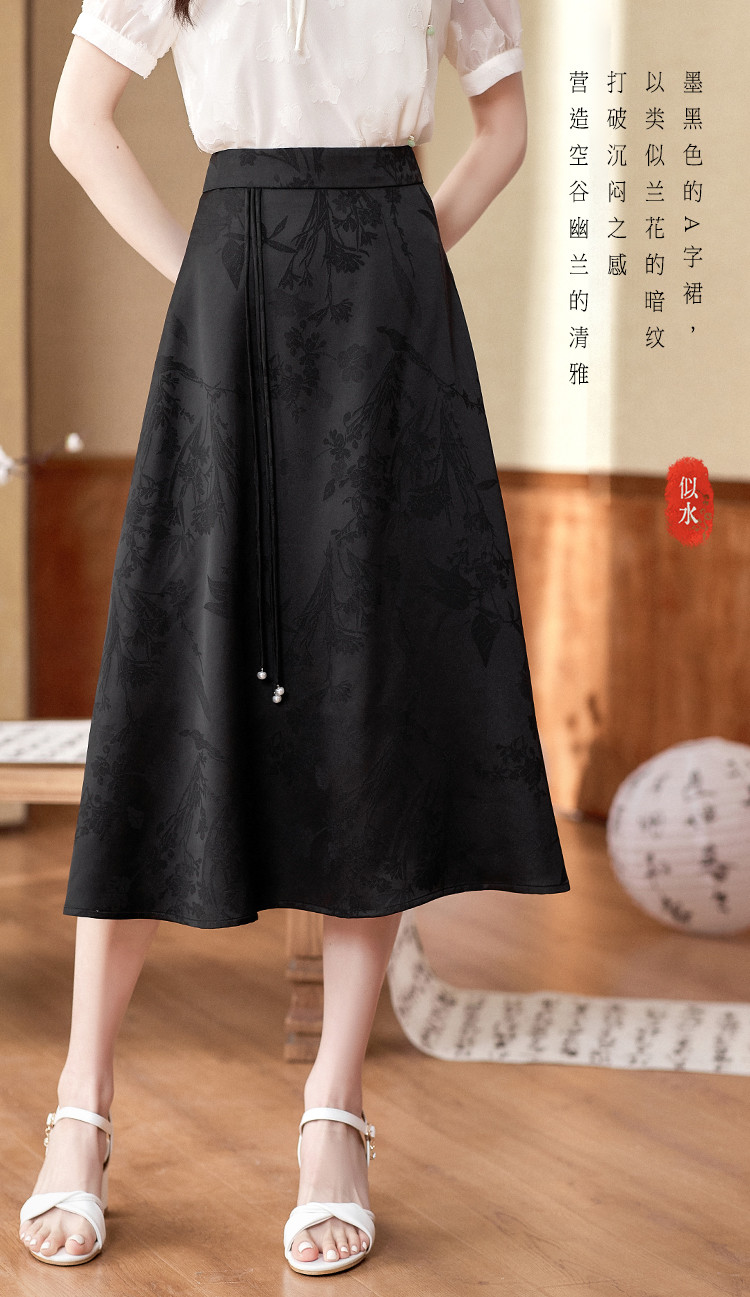 商品名称:【墨色幽兰】夏高级感穿搭缎面提花设计感气质显瘦小个子半截裙 106264