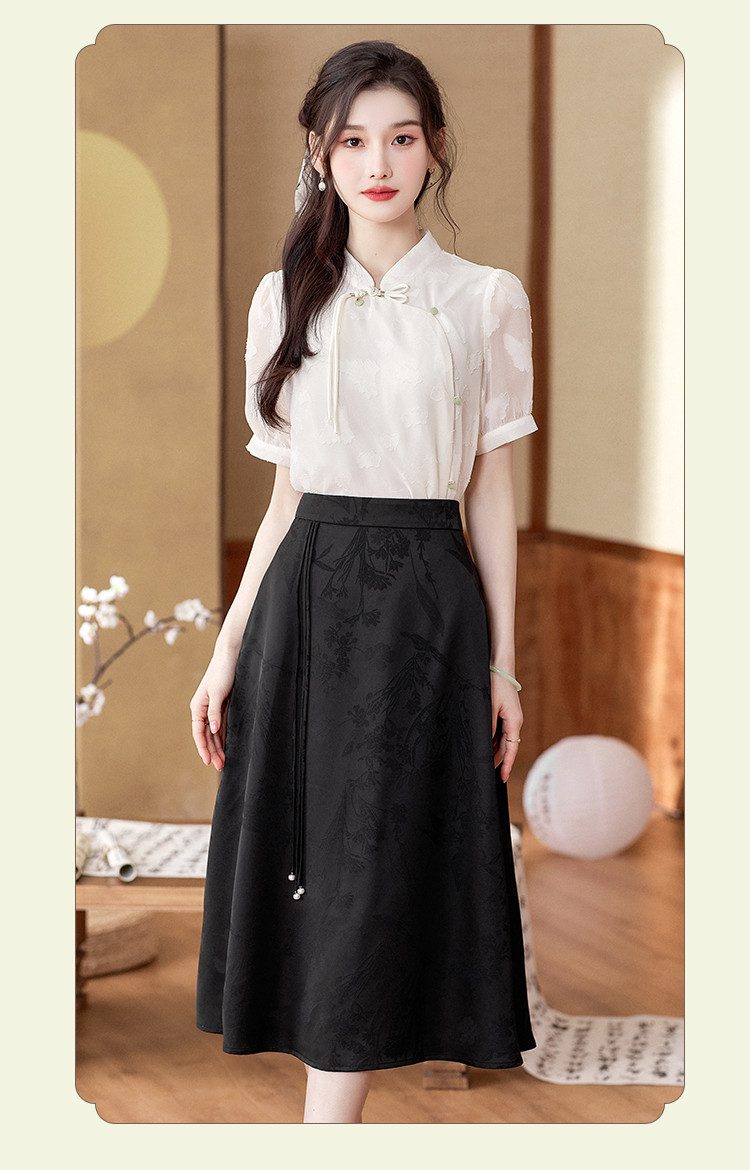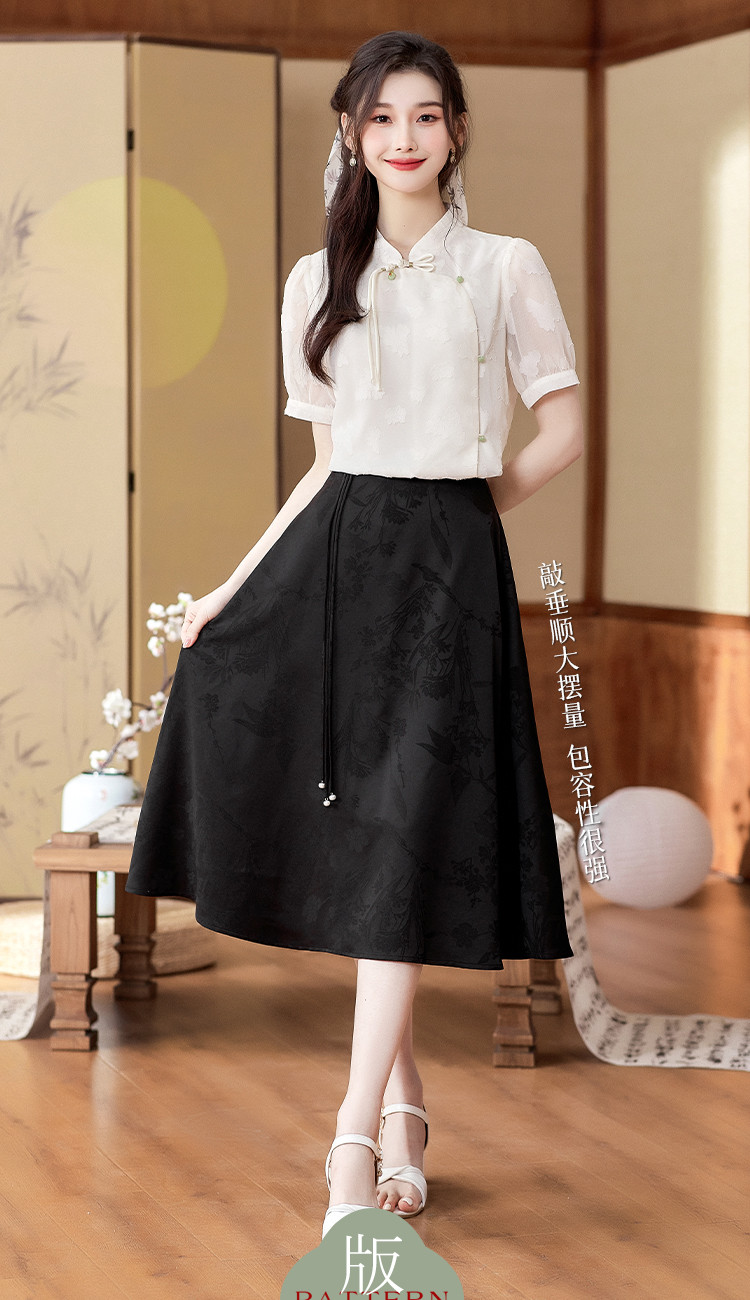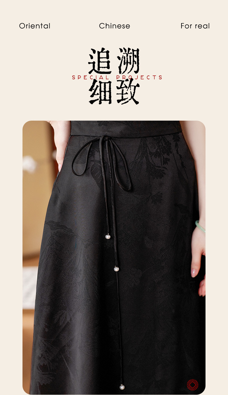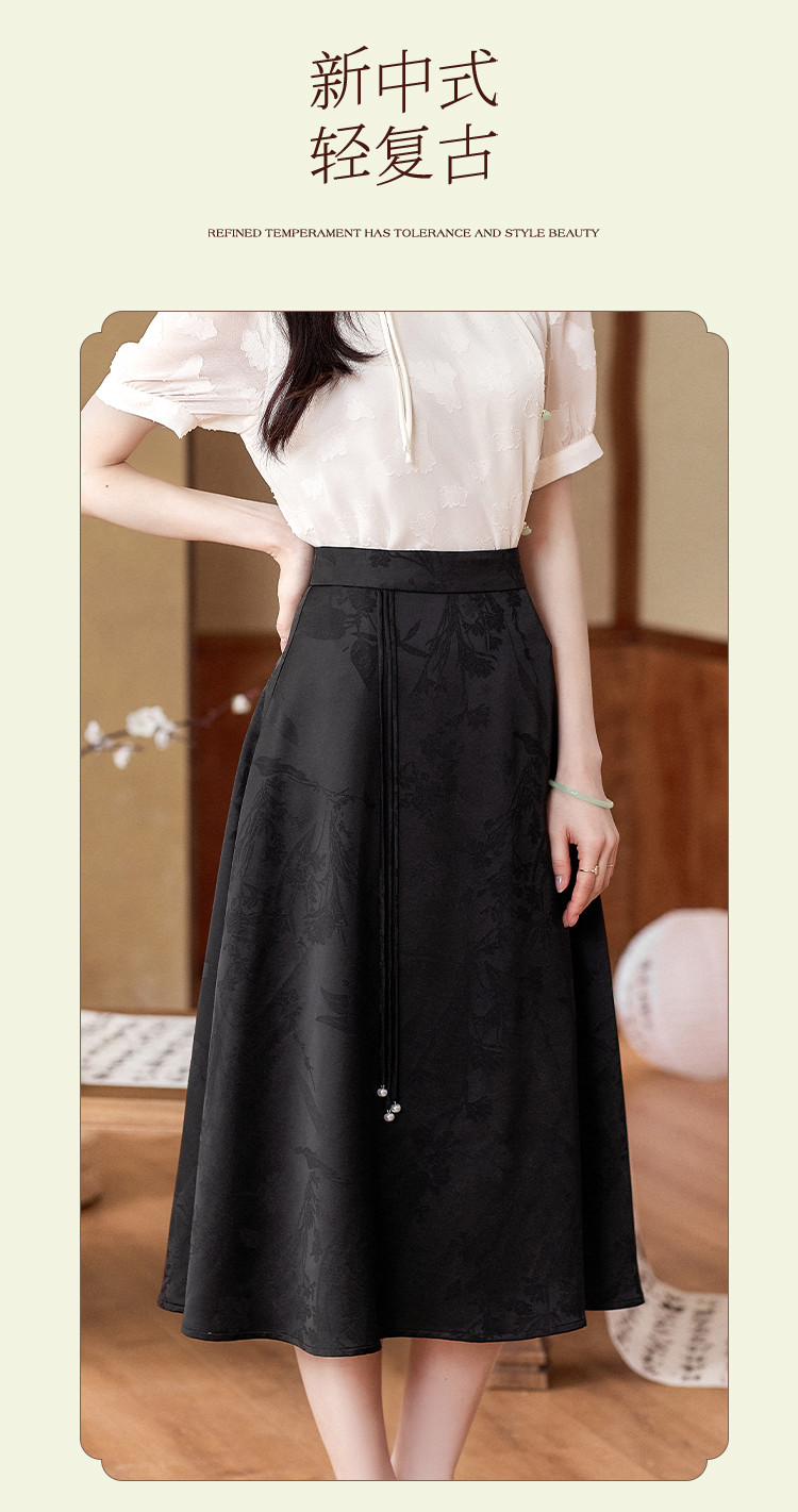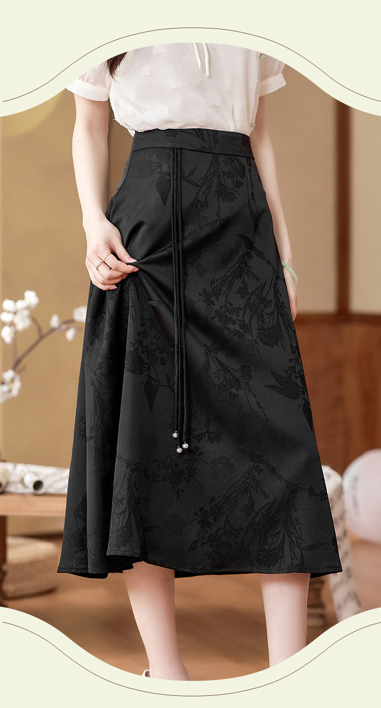 商品名称:【墨色幽兰】夏高级感穿搭缎面提花设计感气质显瘦小个子半截裙 106264