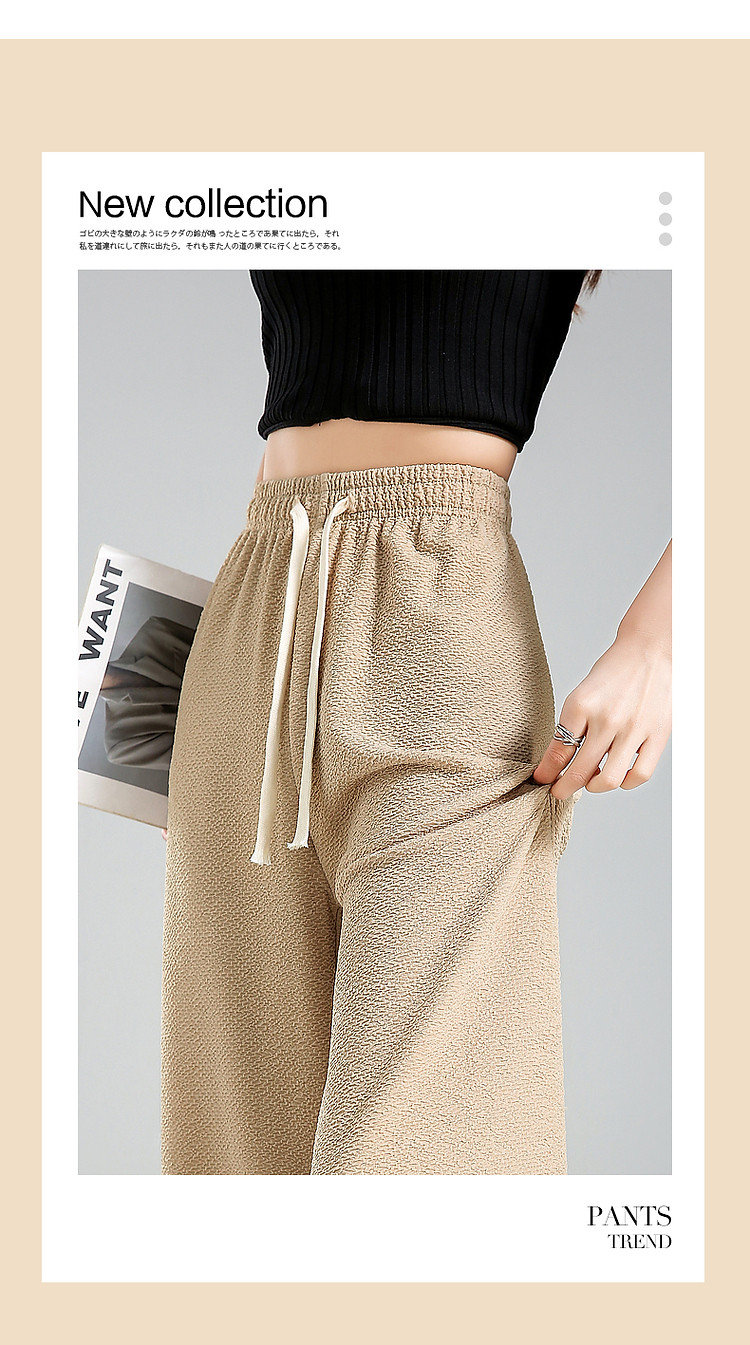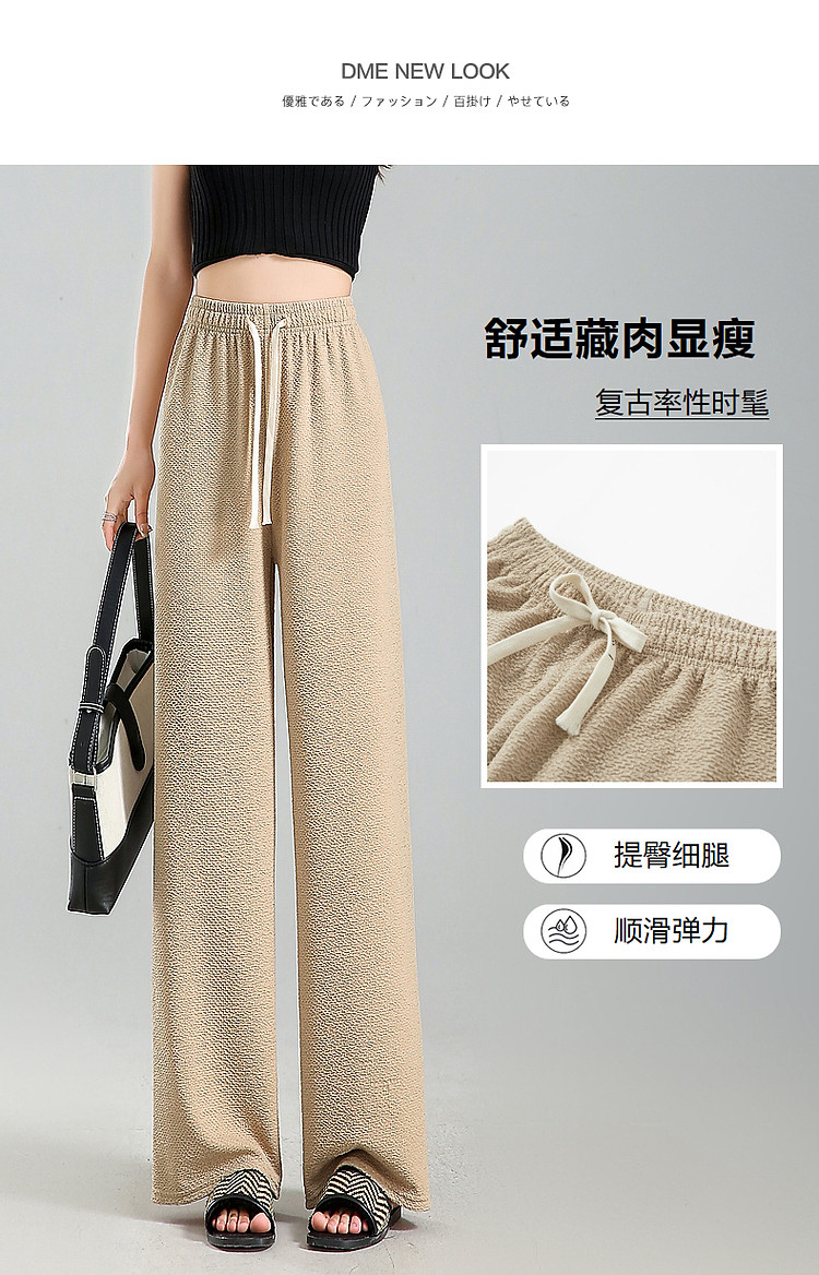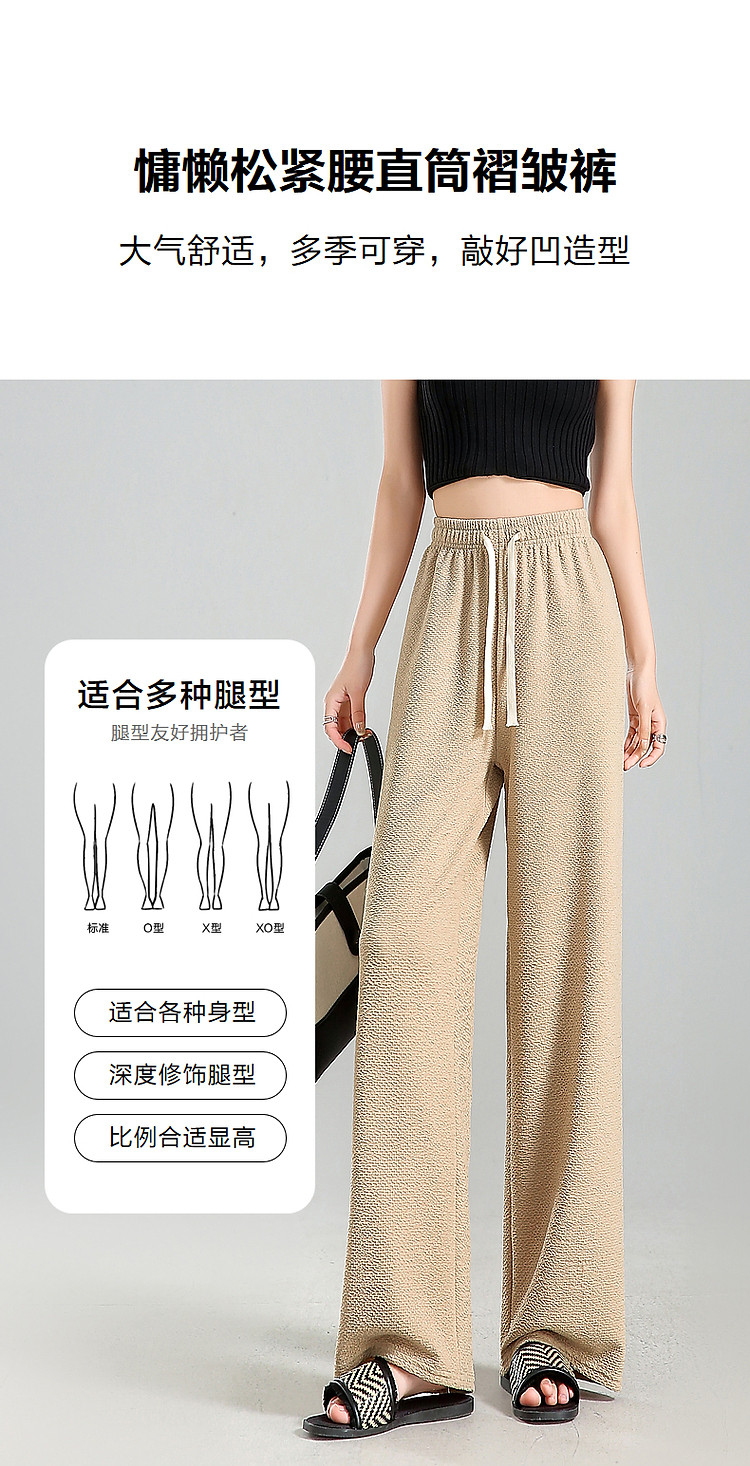 商品名称:【慵懒褶皱裤】夏松紧腰直筒显瘦藏肉舒适飘逸垂坠休闲裤 857089