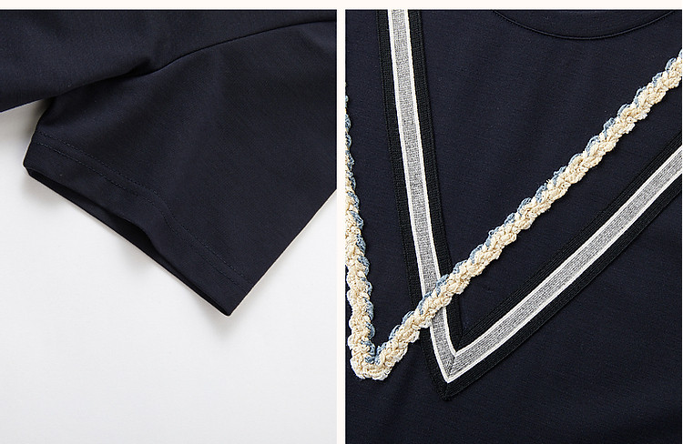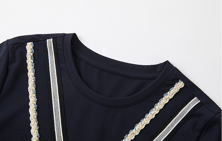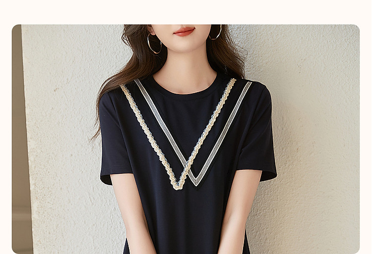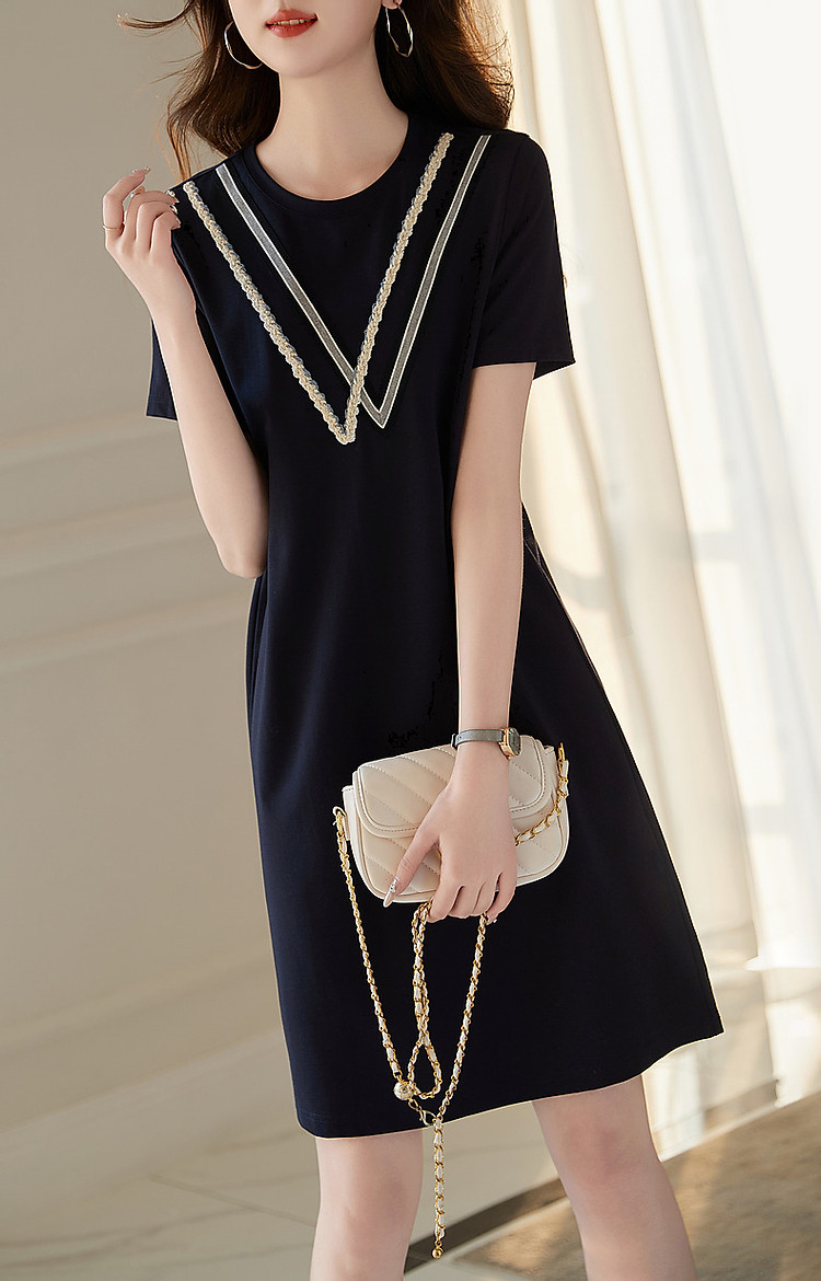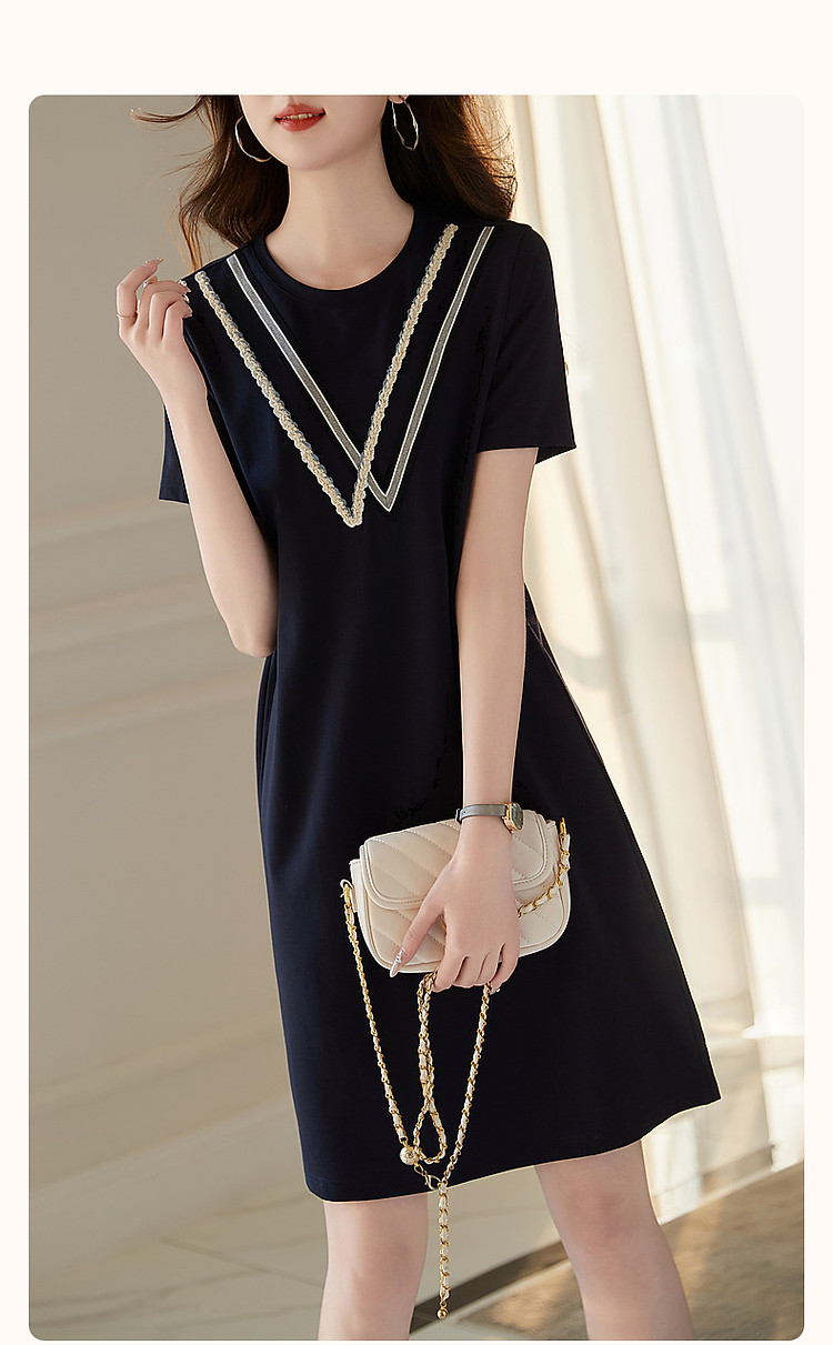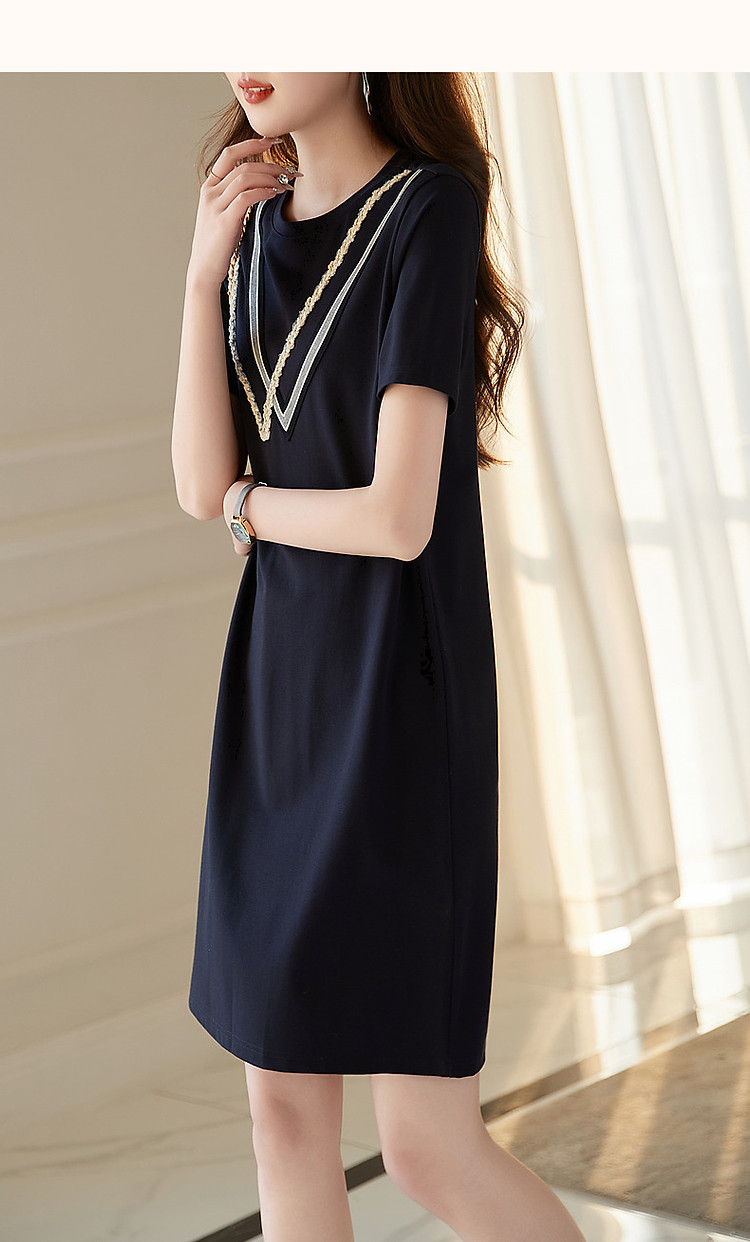 商品名称:【复古姐姐裙】夏减龄圆领罗马棉绞花织带直筒短袖连衣裙女中长款 410817