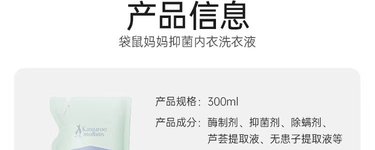 商品名称:袋鼠妈妈 抑菌内衣洗衣液 300ml