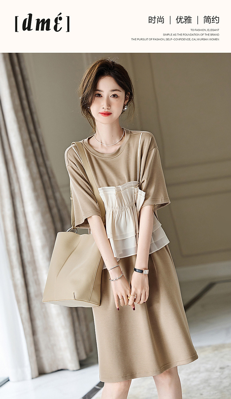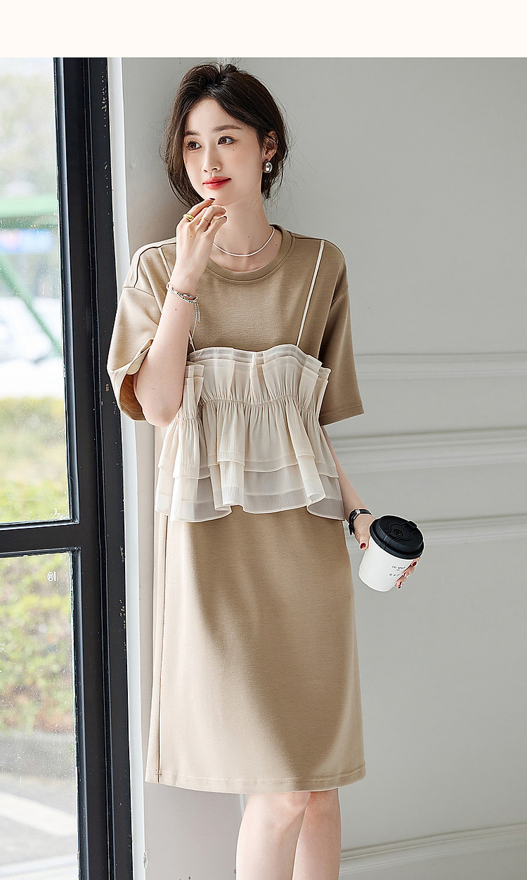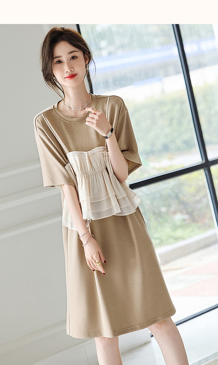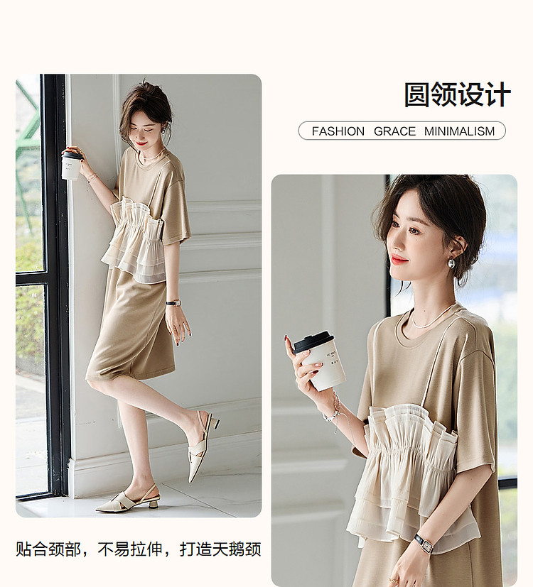 商品名称:【轻法图鉴】夏圆领飘逸拼接针织温柔针织连衣裙女中长款 930625