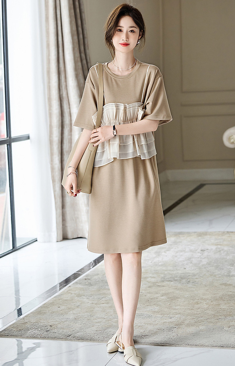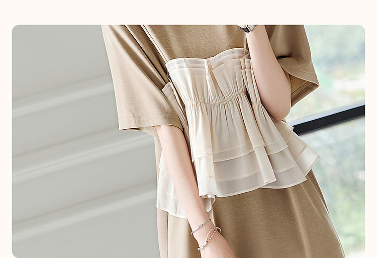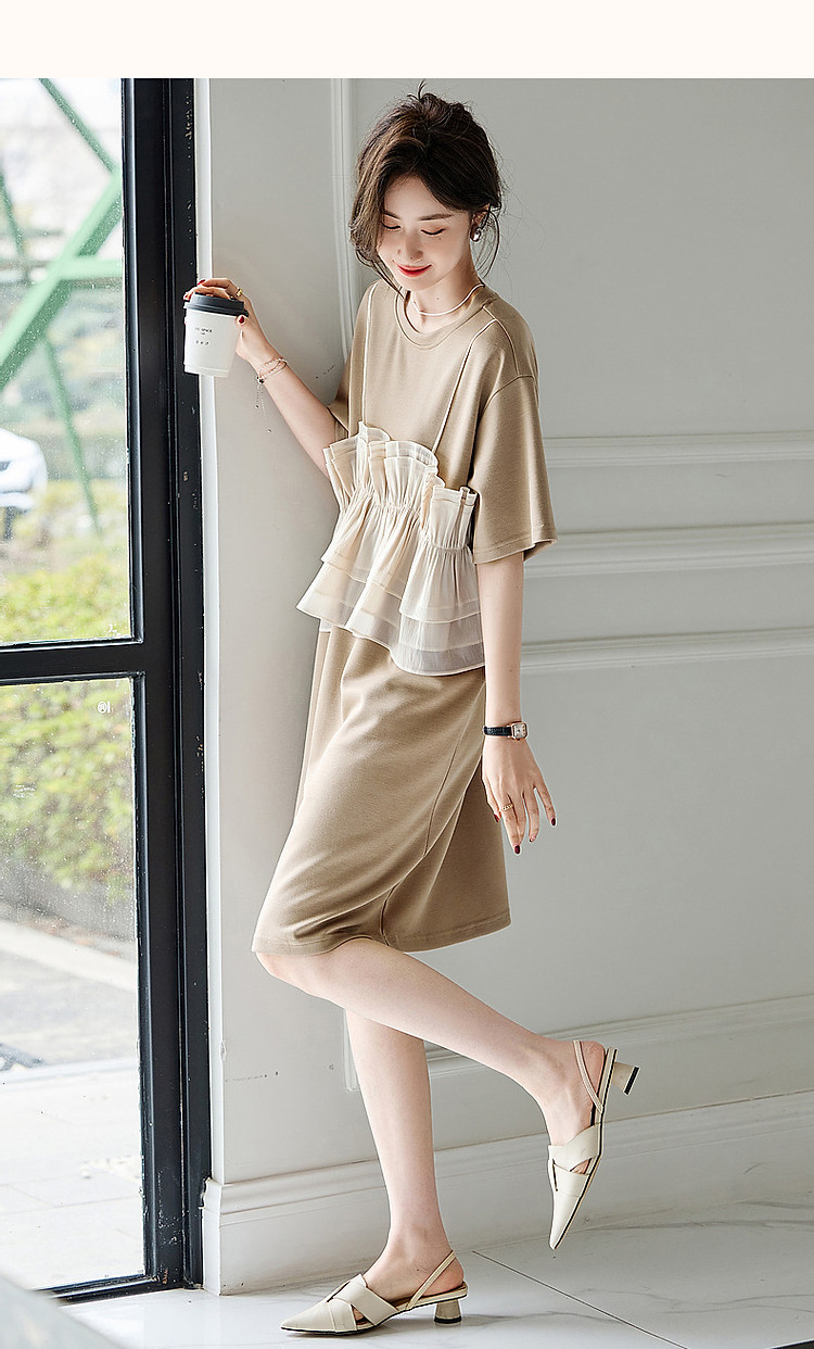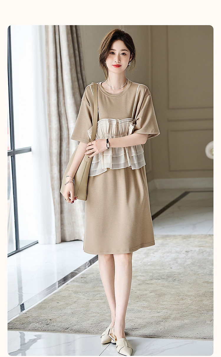 商品名称:【轻法图鉴】夏圆领飘逸拼接针织温柔针织连衣裙女中长款 930625