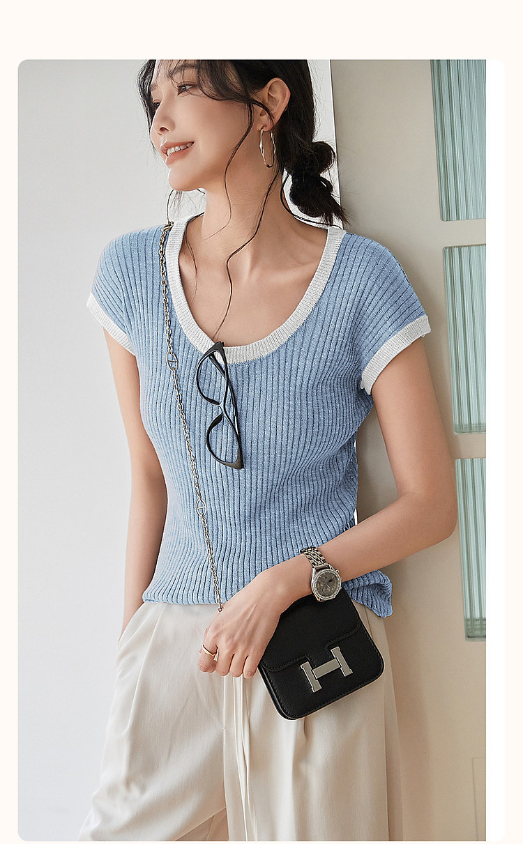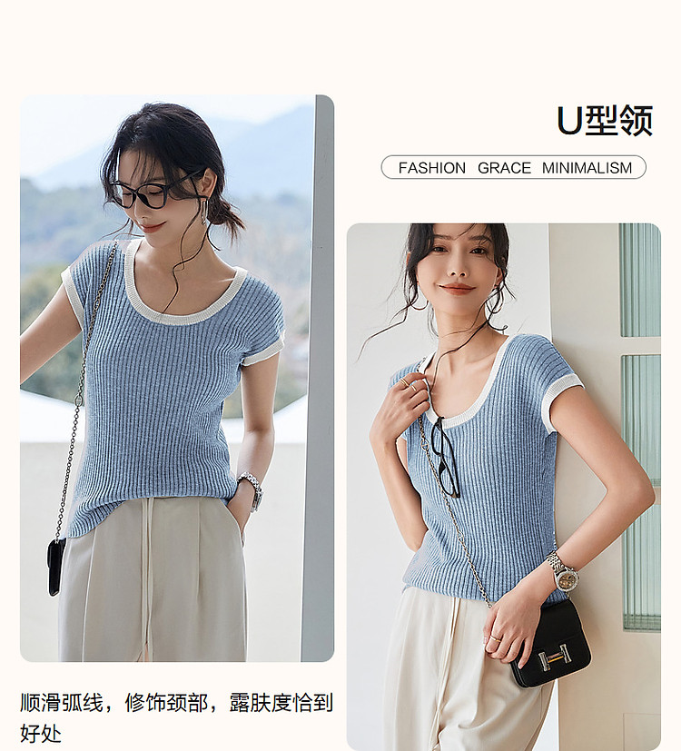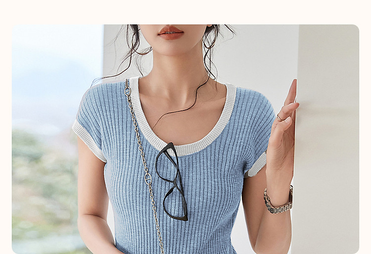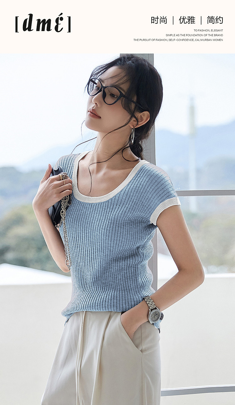 商品名称:【格雷系穿搭】高智感简约U领无袖线衫活力撞色藏肉针织衫女上衣 541697