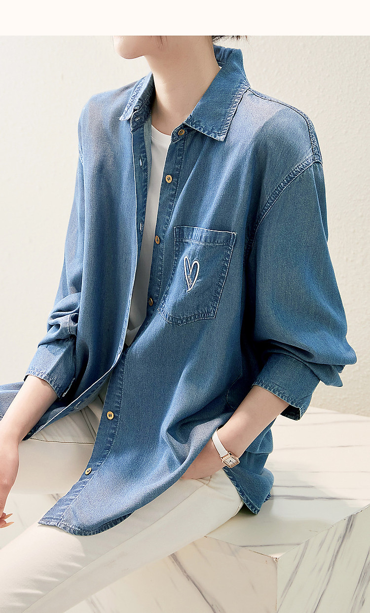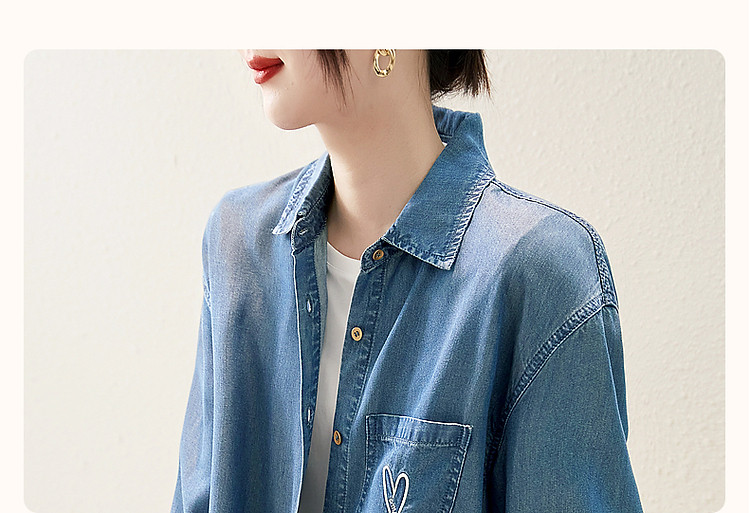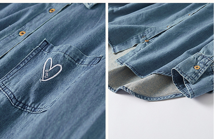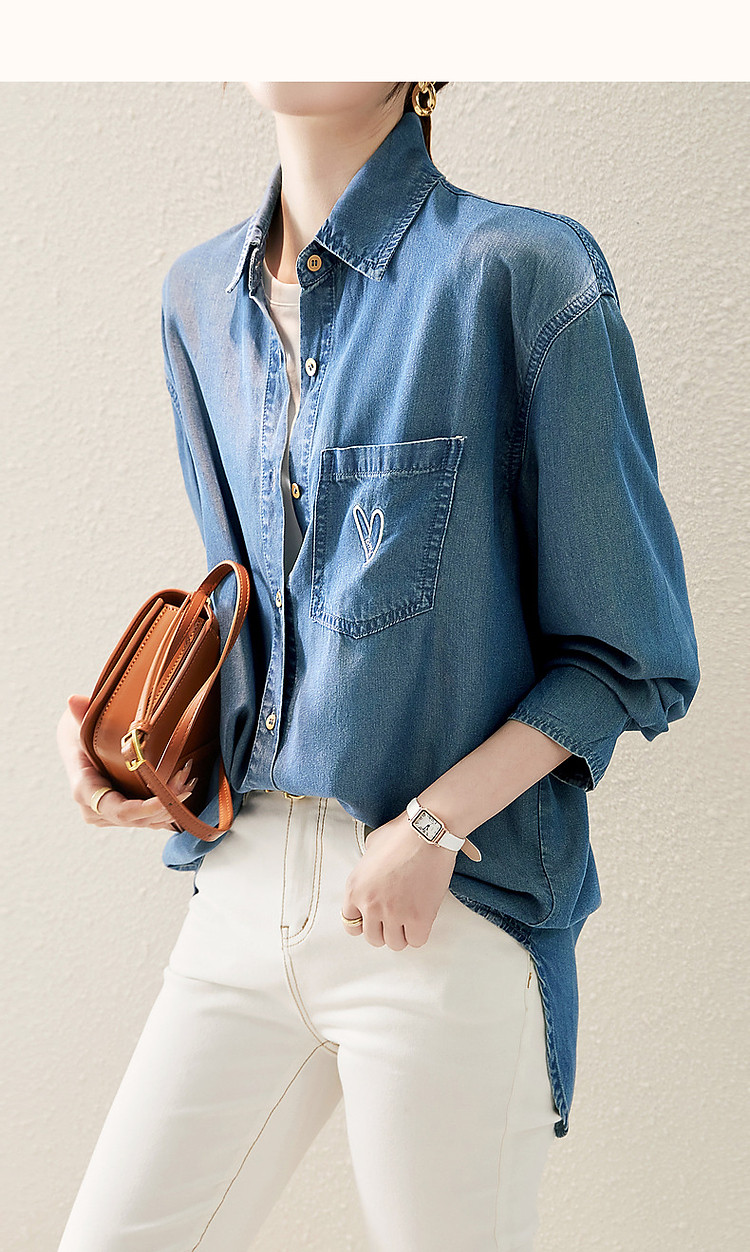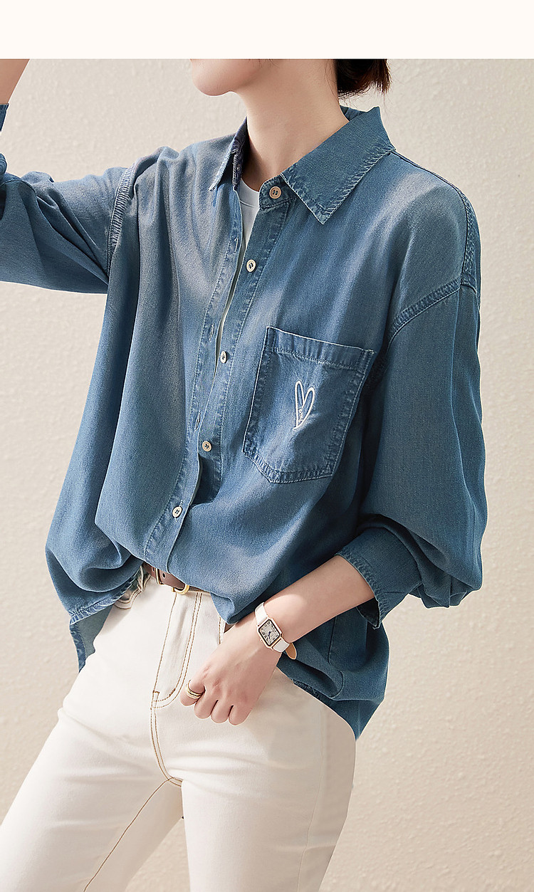 商品名称:【远方来信】春秋简约风云感棉牛仔衬衫爱心刺绣遮肉衬衣女装上衣 254145