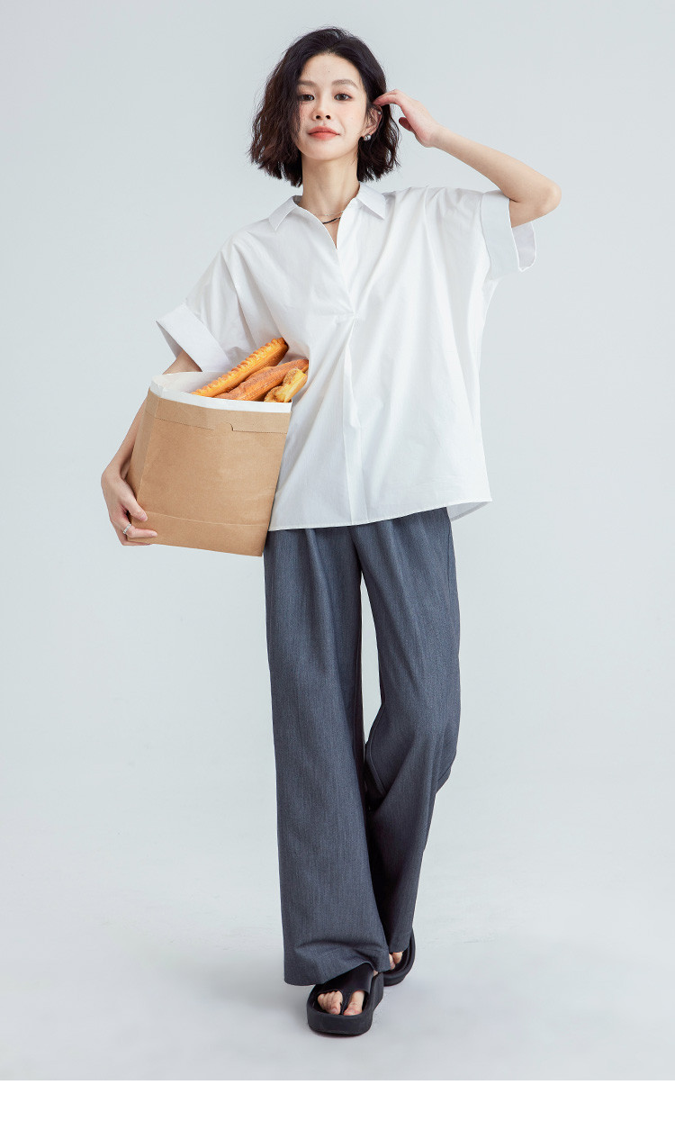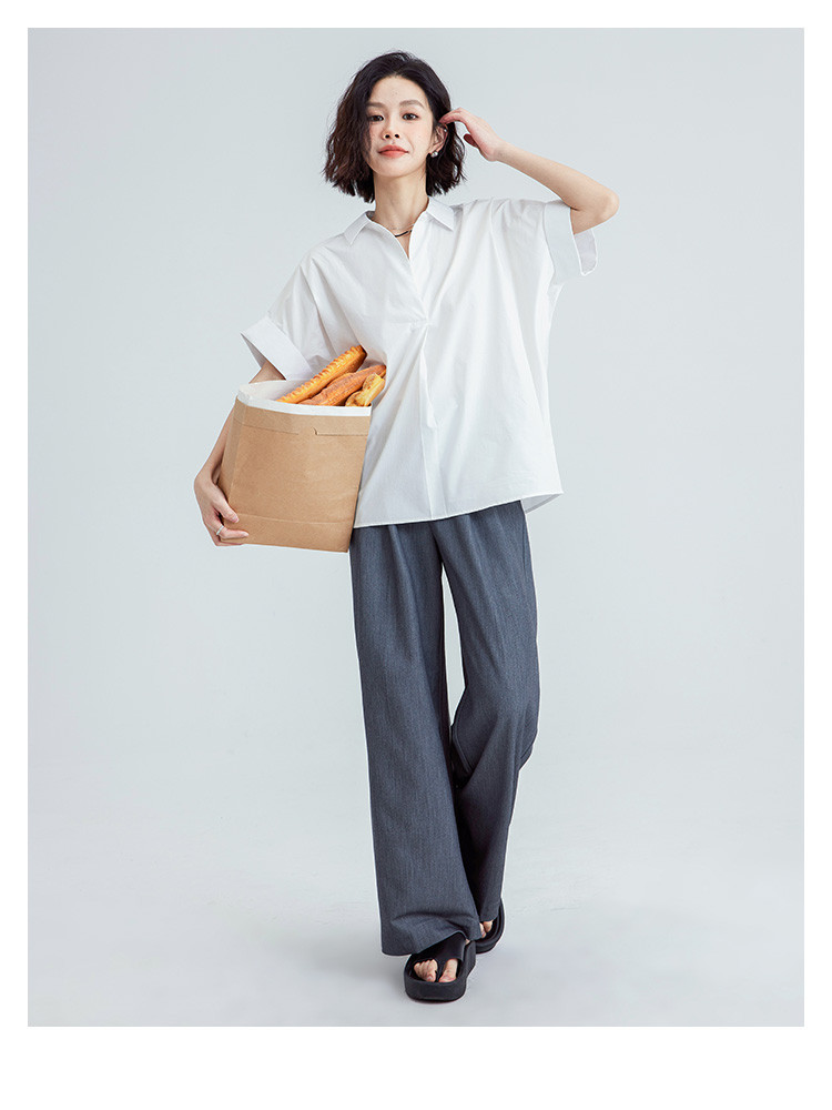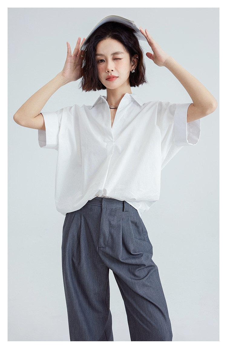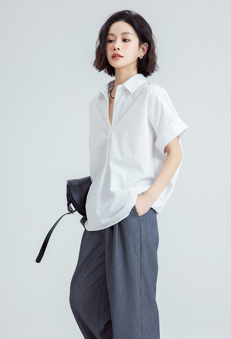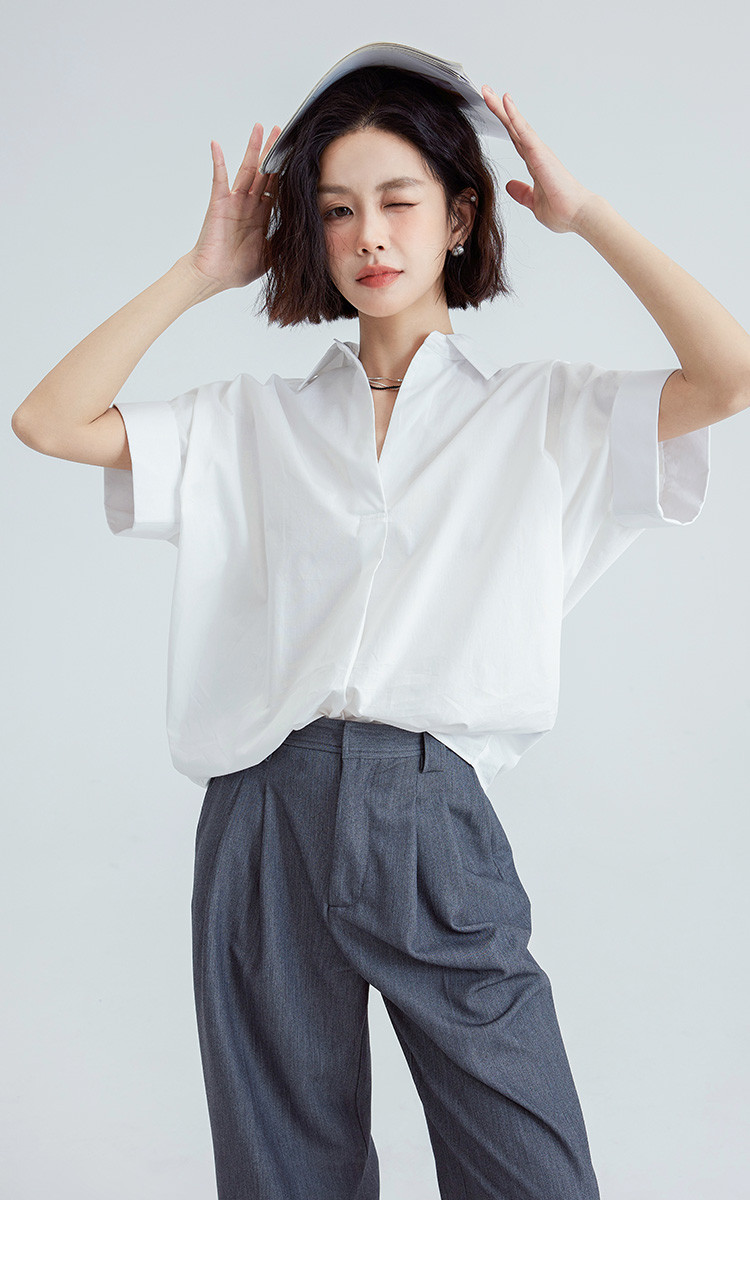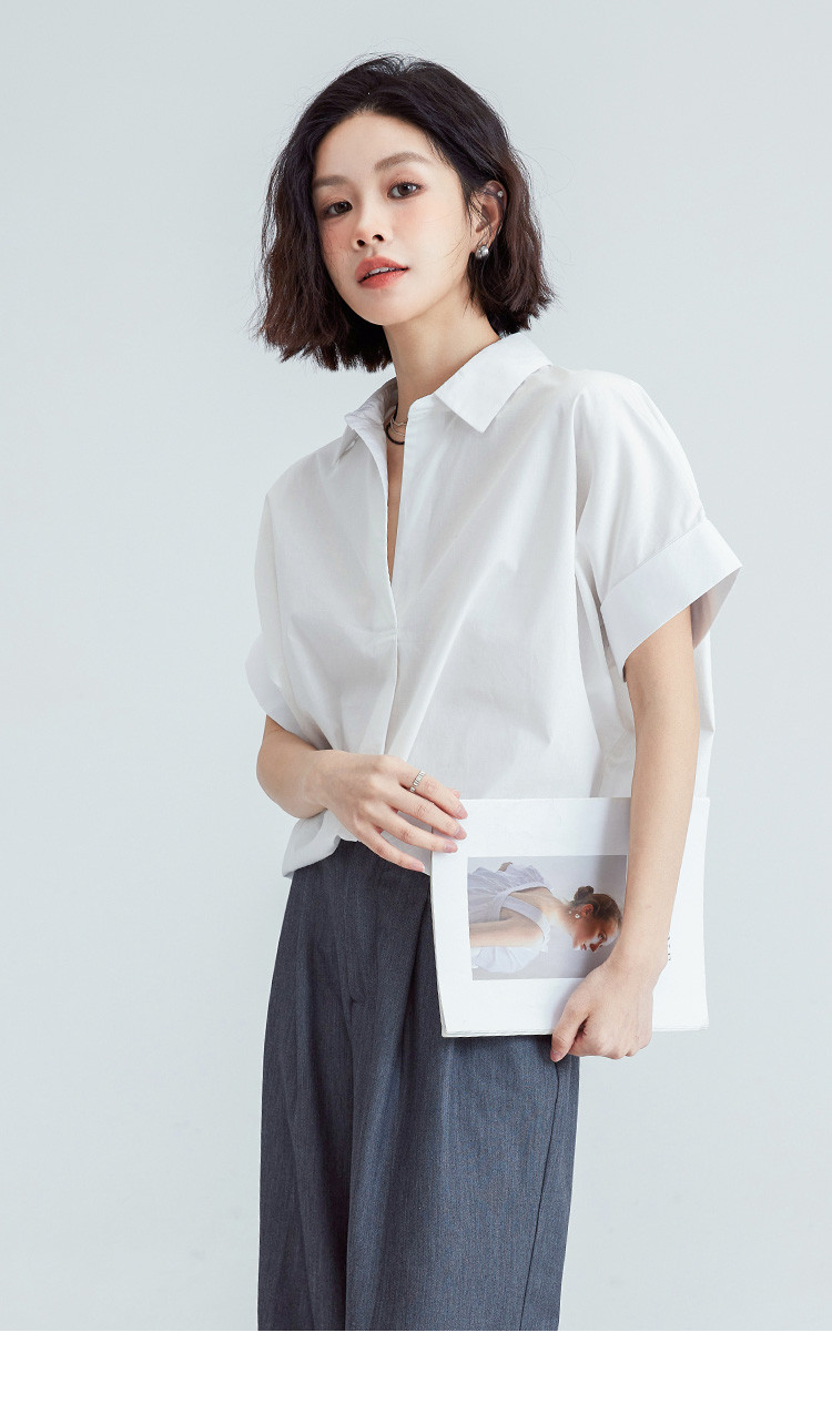 商品名称:【简约通勤衬衫】夏款简约纯色半门襟套头宽边袖小衫女 728194