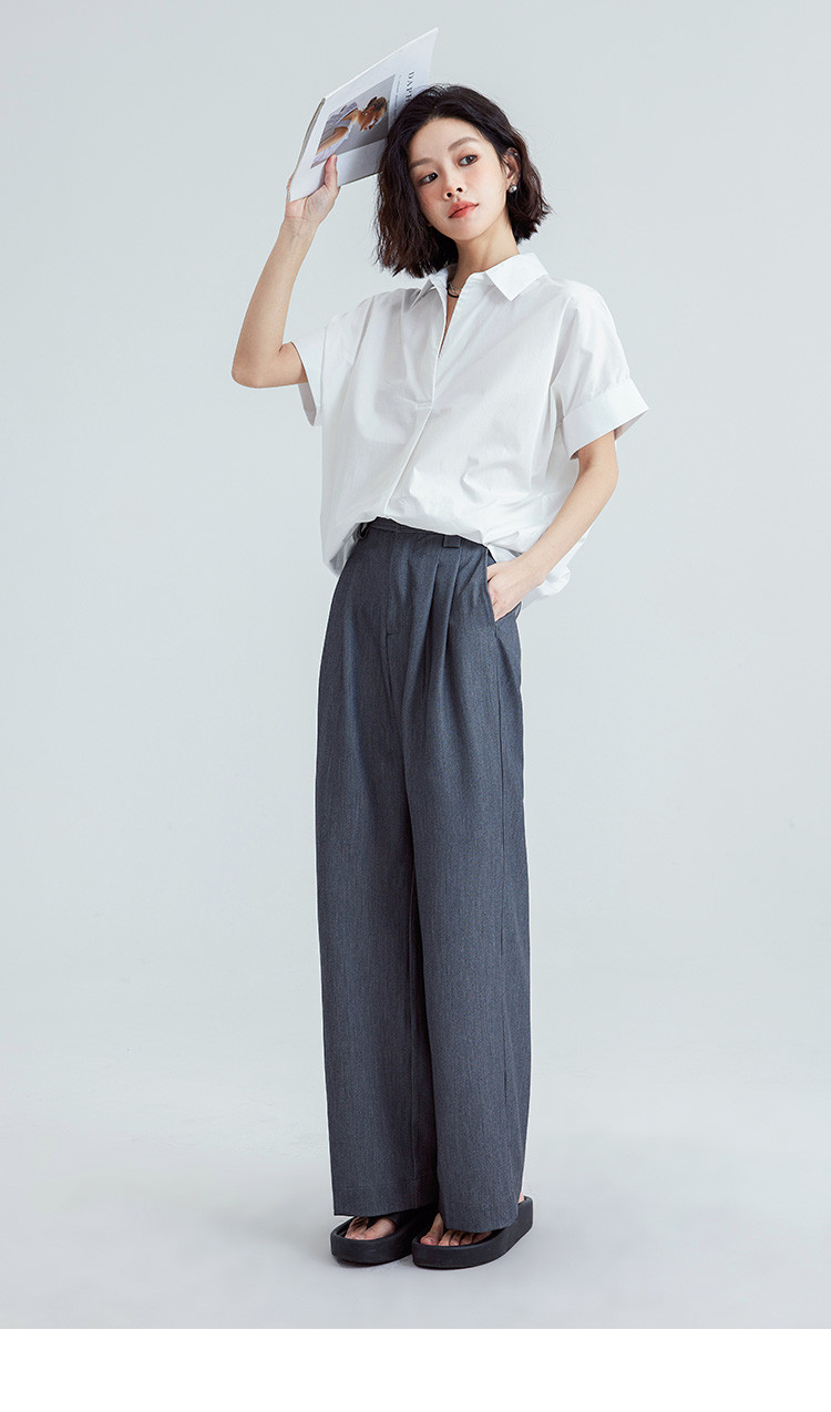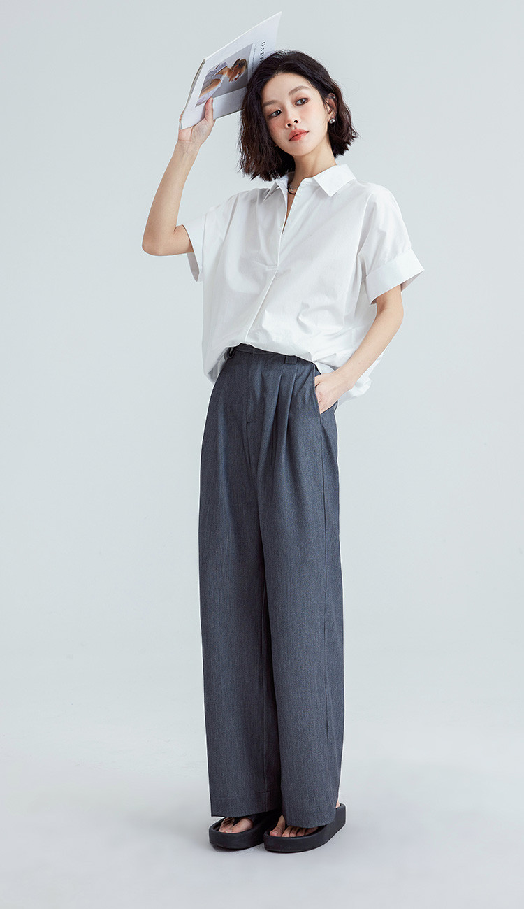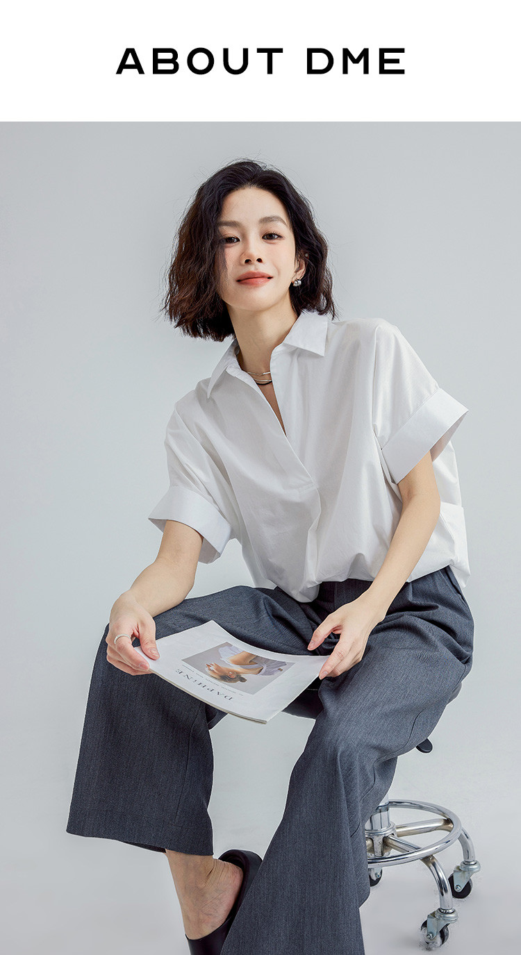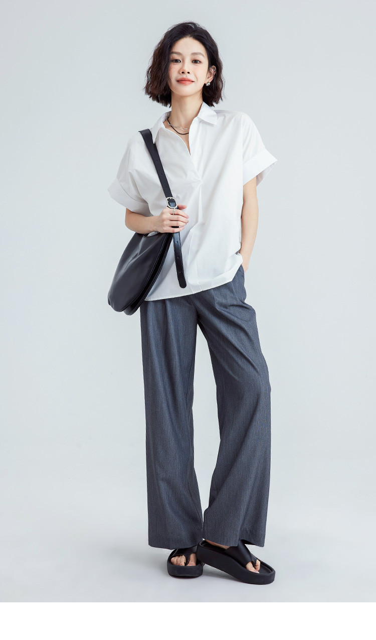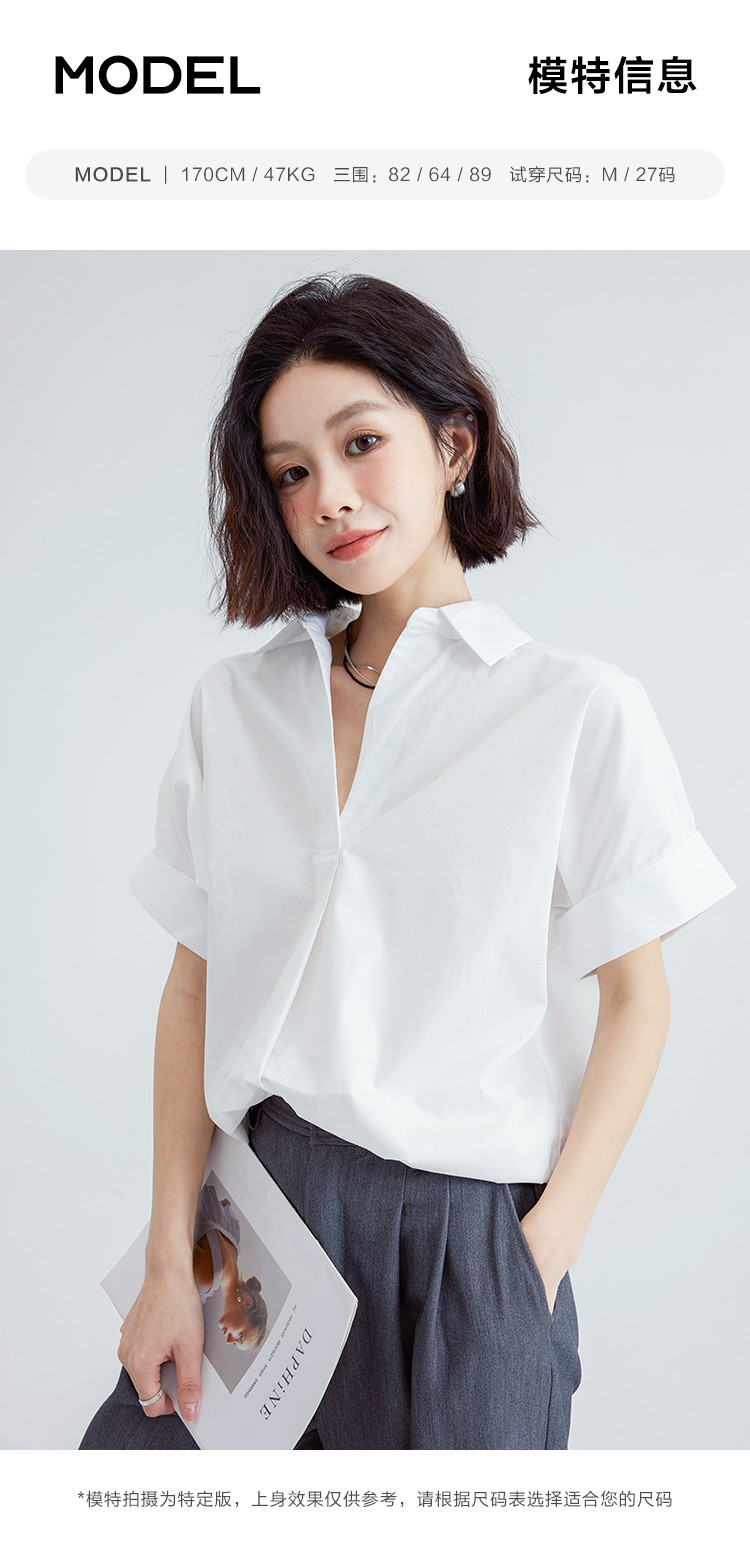 商品名称:【简约通勤衬衫】夏款简约纯色半门襟套头宽边袖小衫女 728194