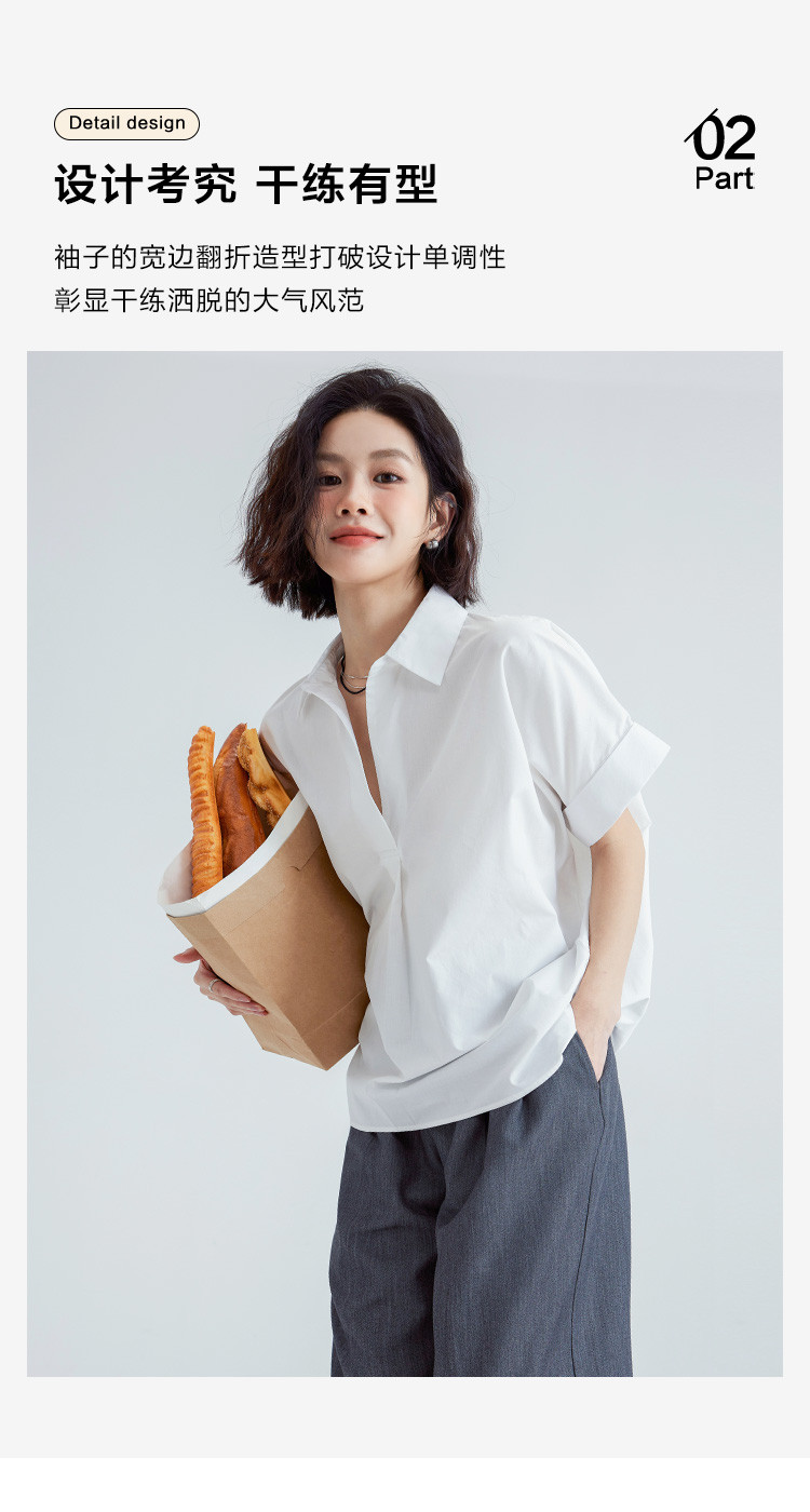 【简约通勤衬衫】夏款简约纯色半门襟套头宽边袖小衫女 728194