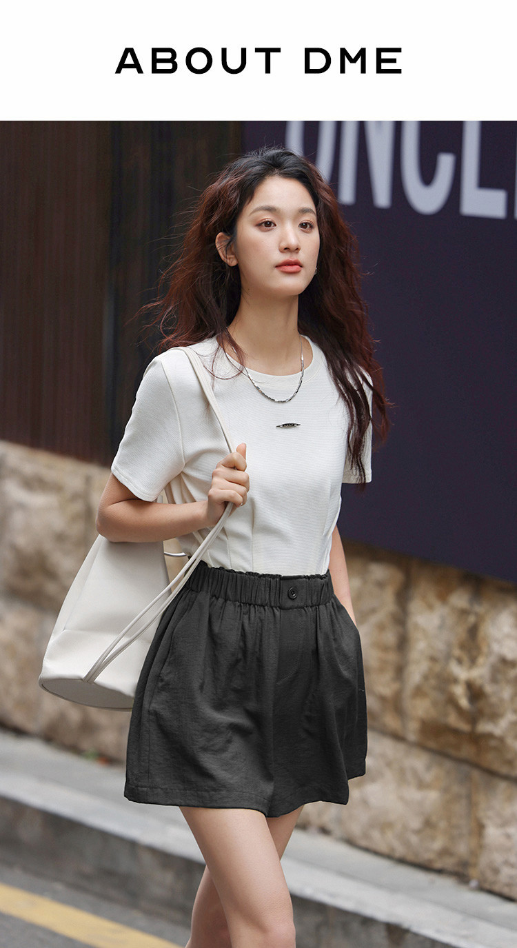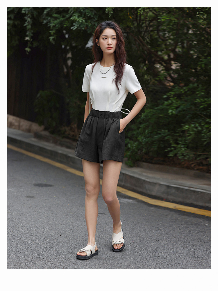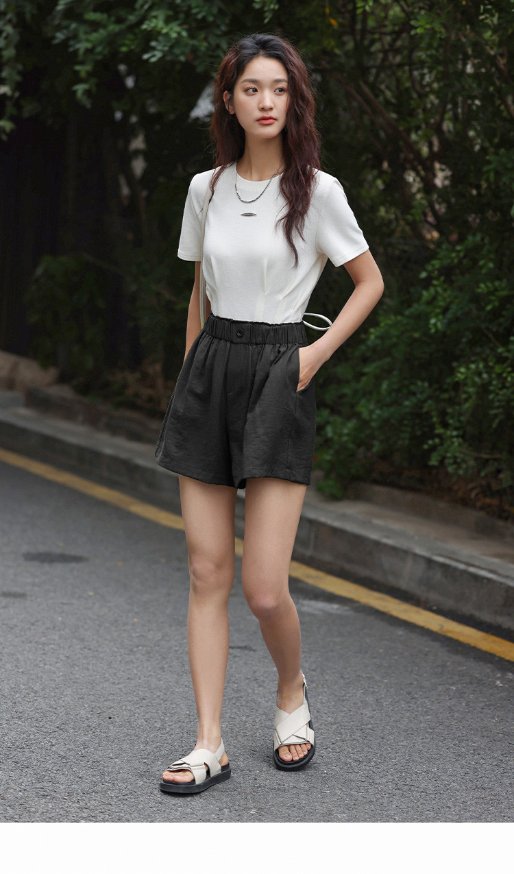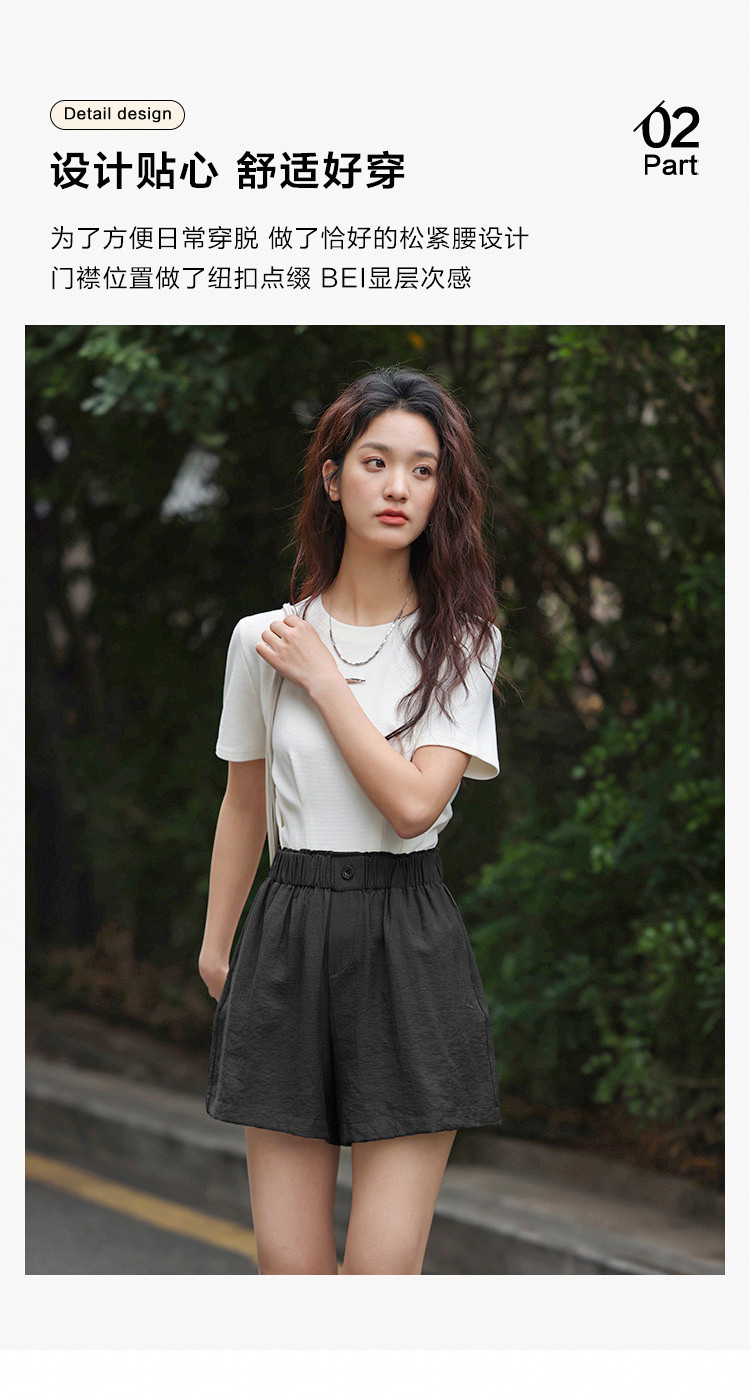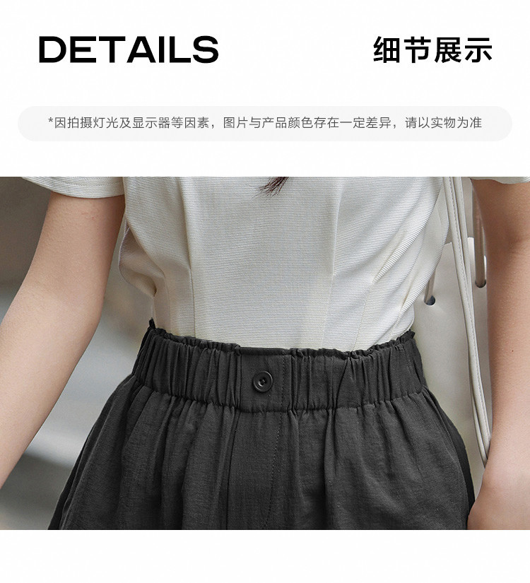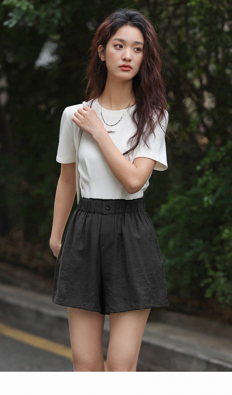 商品名称:【简约风阔腿短裤】夏慵懒感松紧腰头一粒扣阔腿短裤 586306
