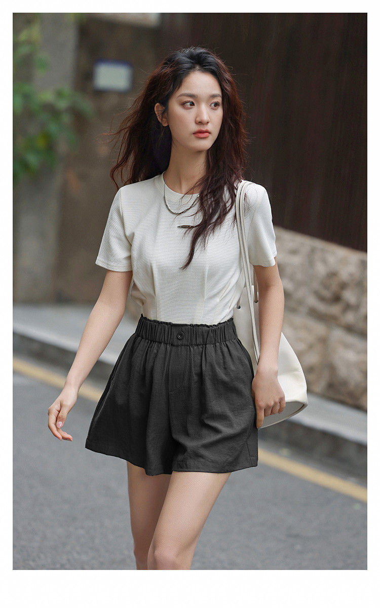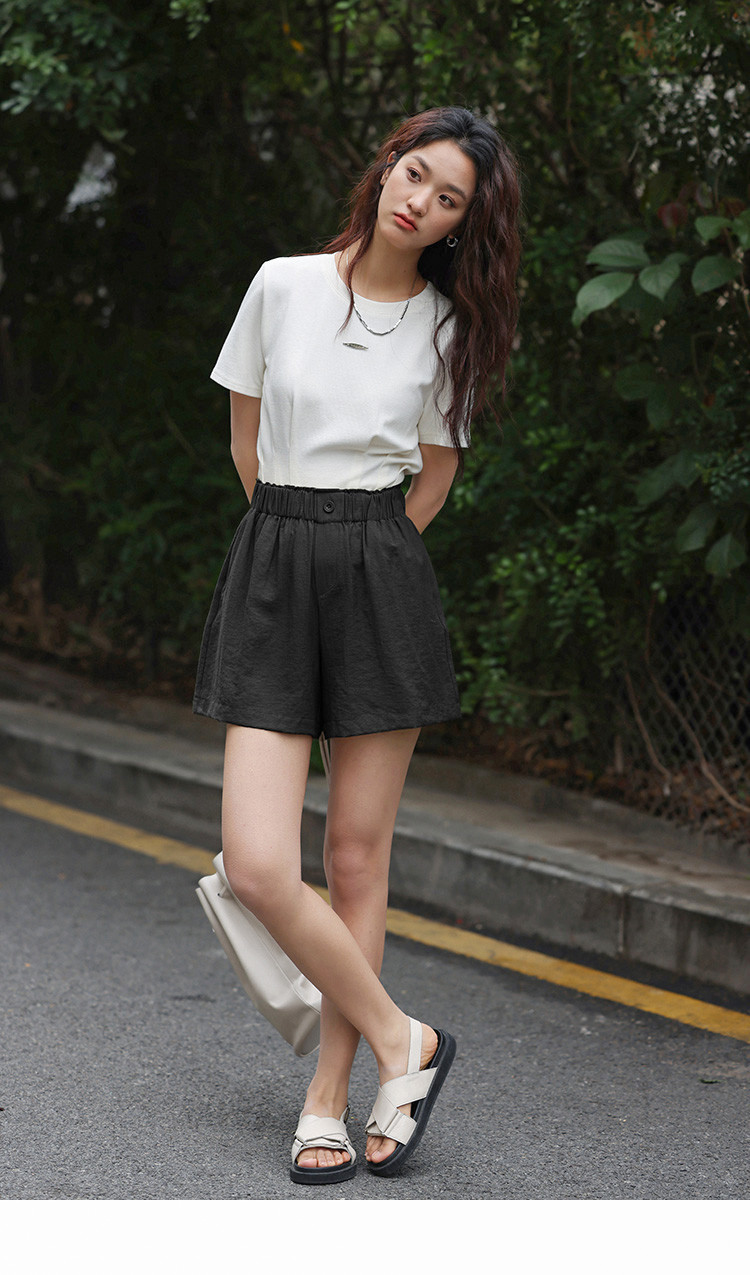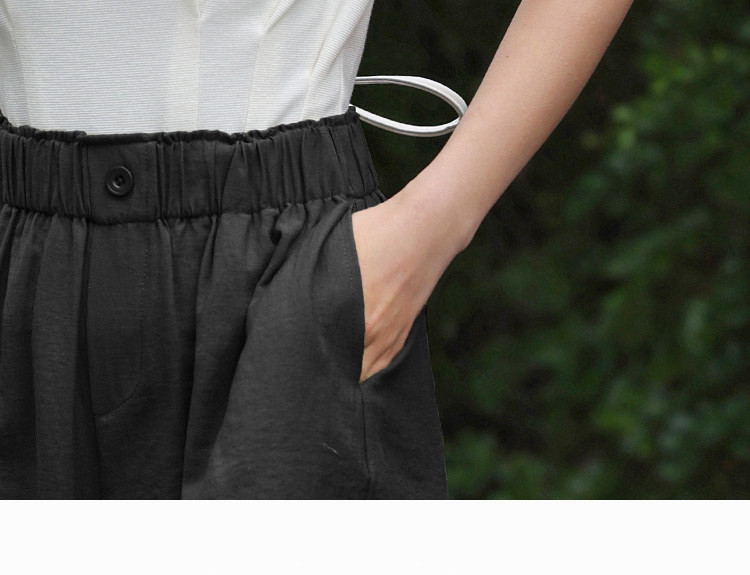 【简约风阔腿短裤】夏慵懒感松紧腰头一粒扣阔腿短裤 586306