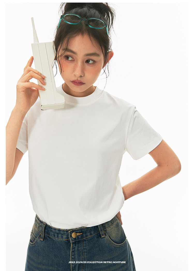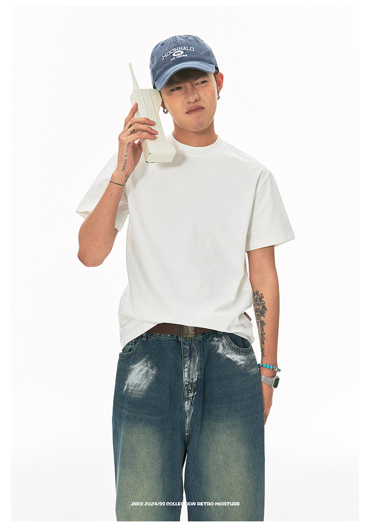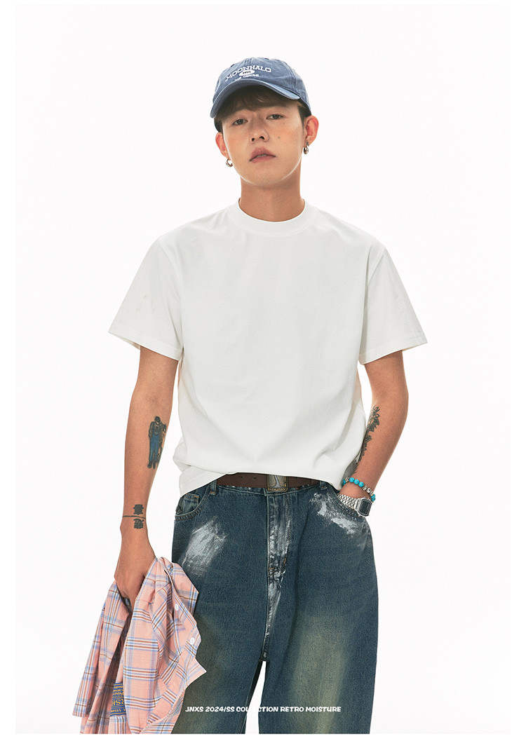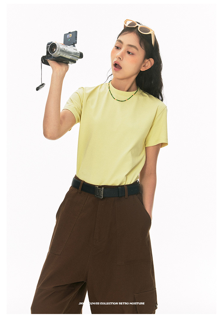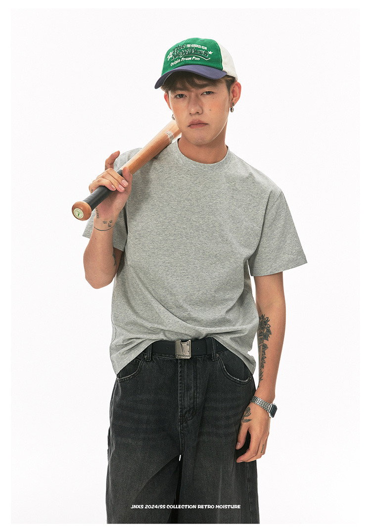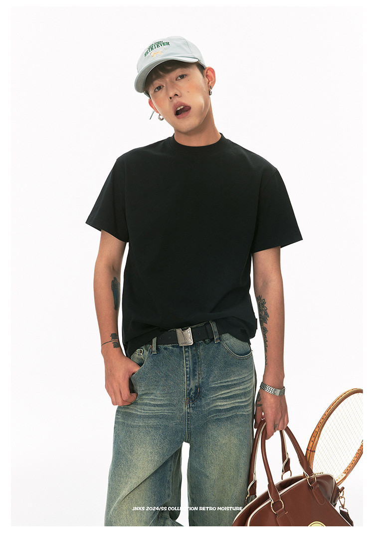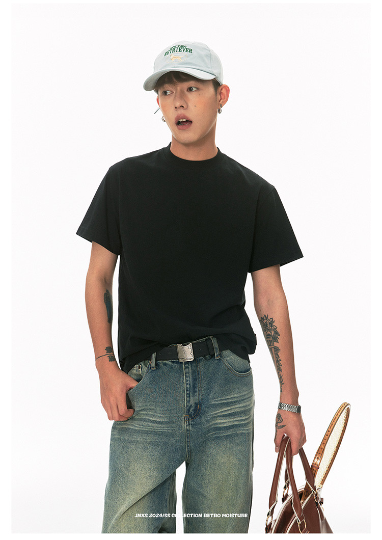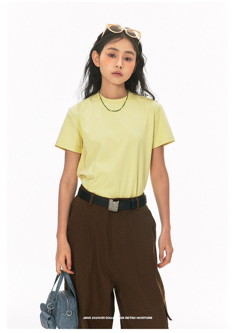 商品名称:江南先生美式复古索罗娜纯色休闲圆领短袖T恤男女夏季情侣打底衫 024273