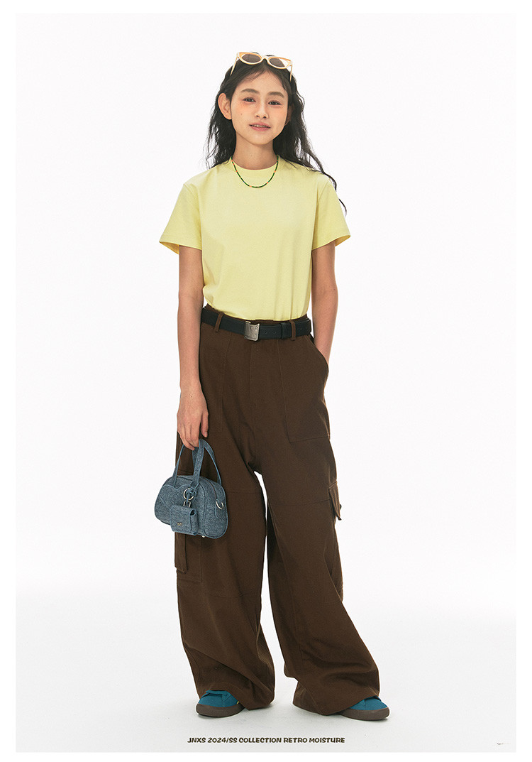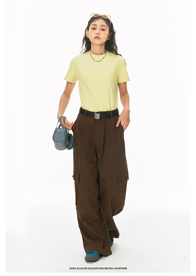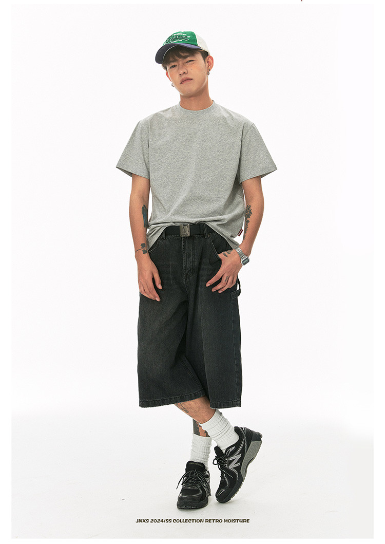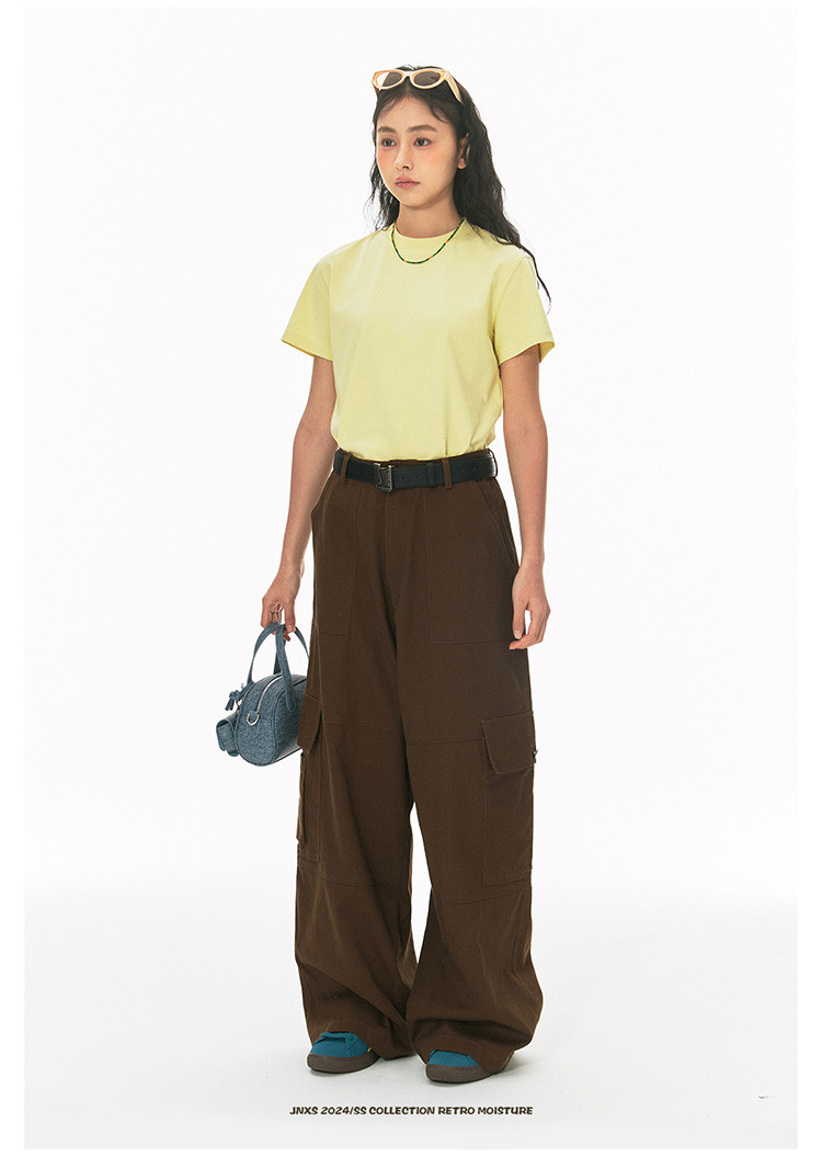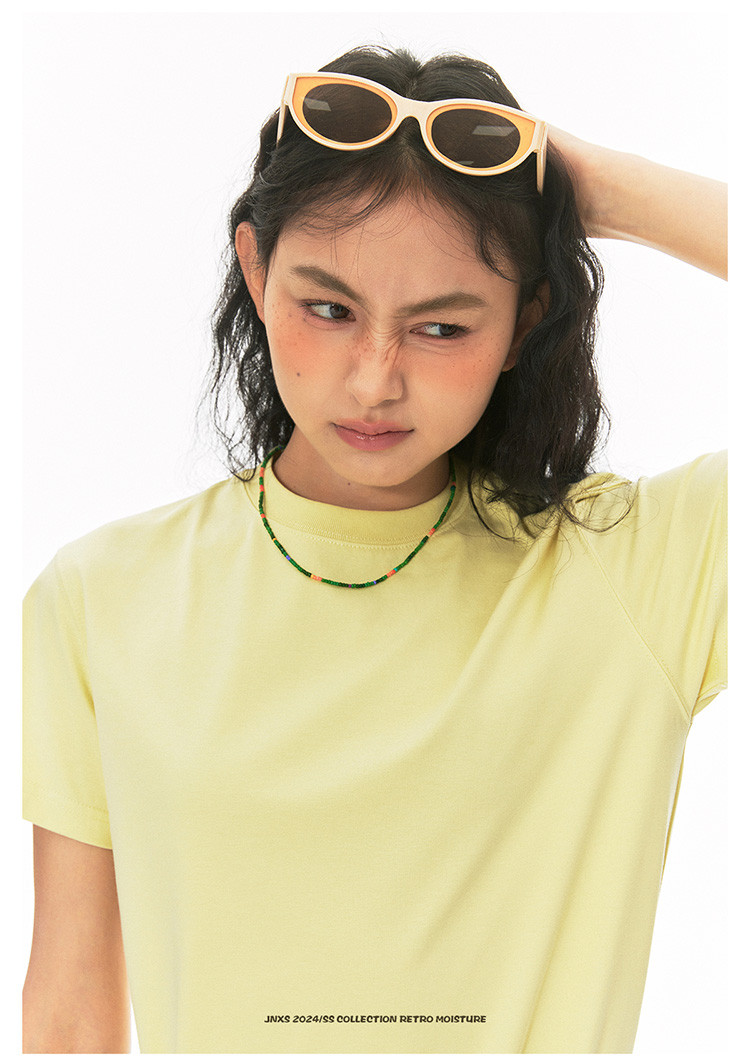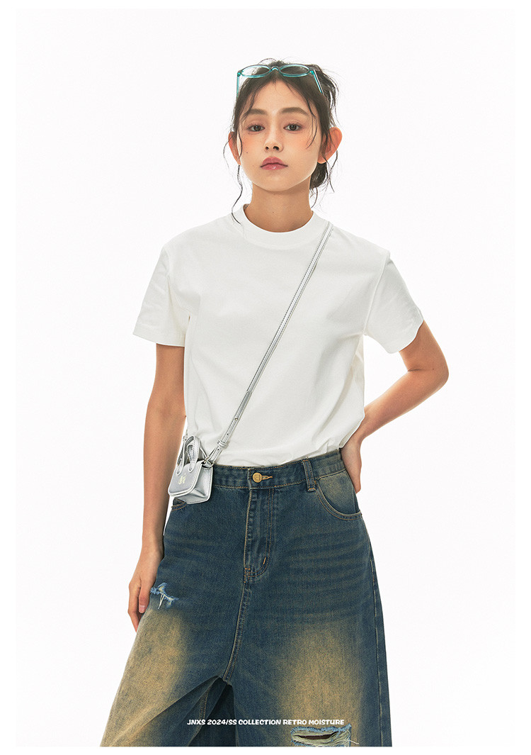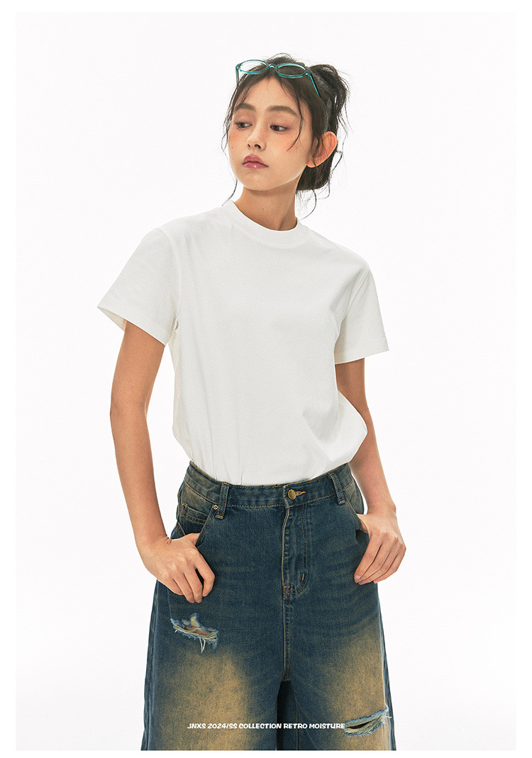 商品名称:江南先生美式复古索罗娜纯色休闲圆领短袖T恤男女夏季情侣打底衫 024273