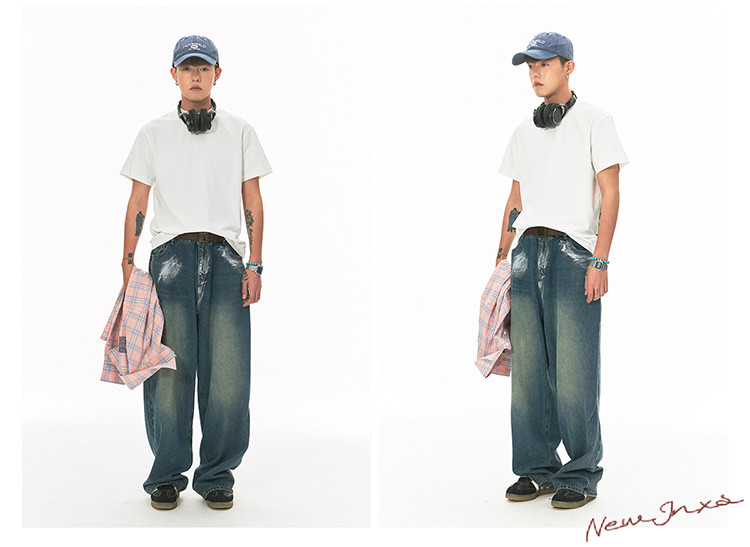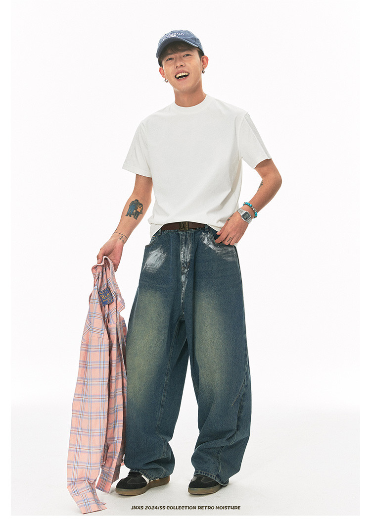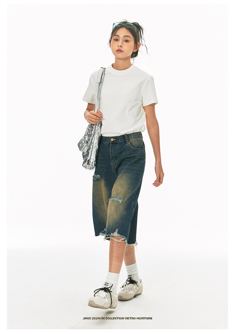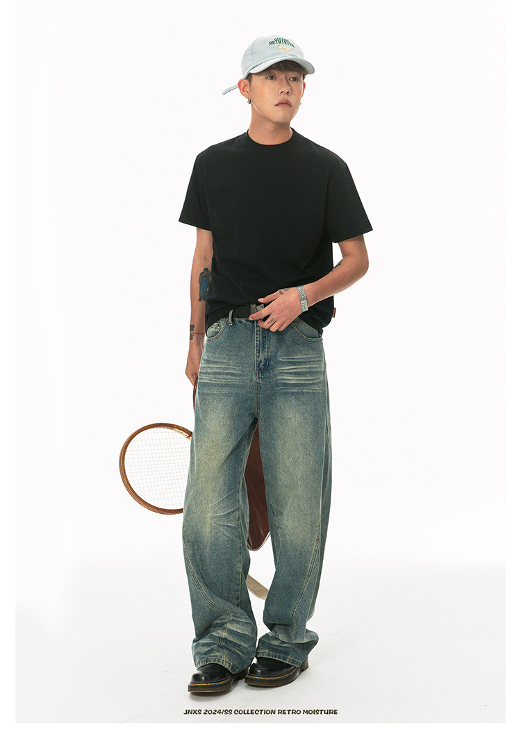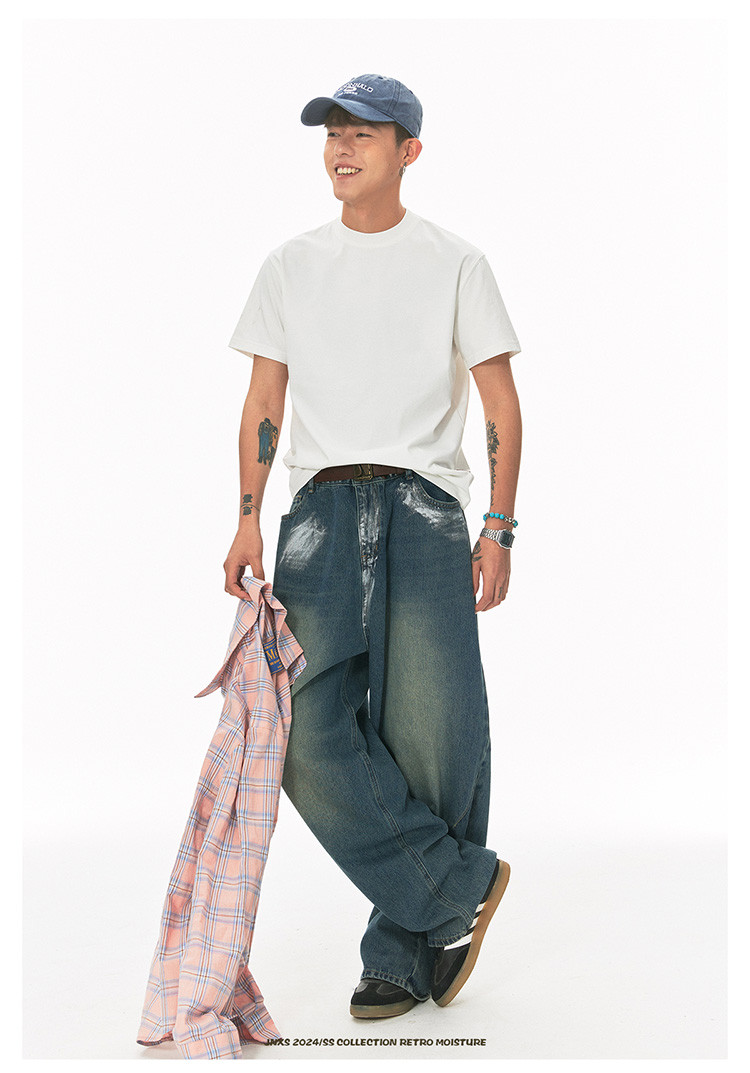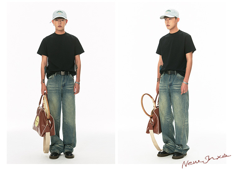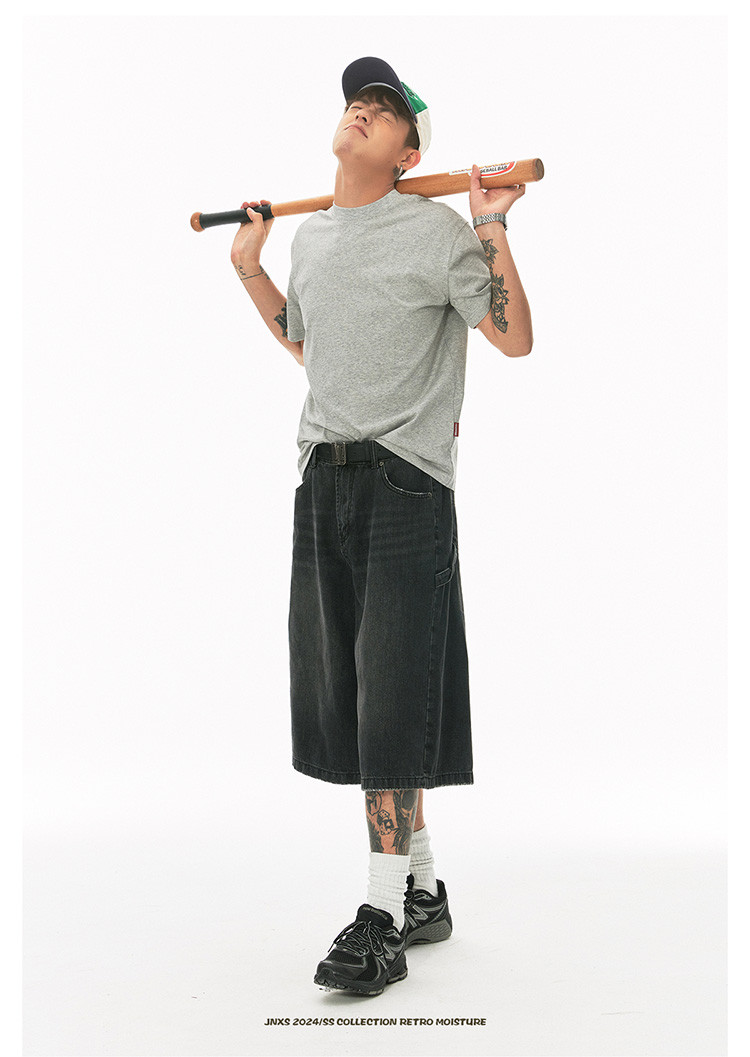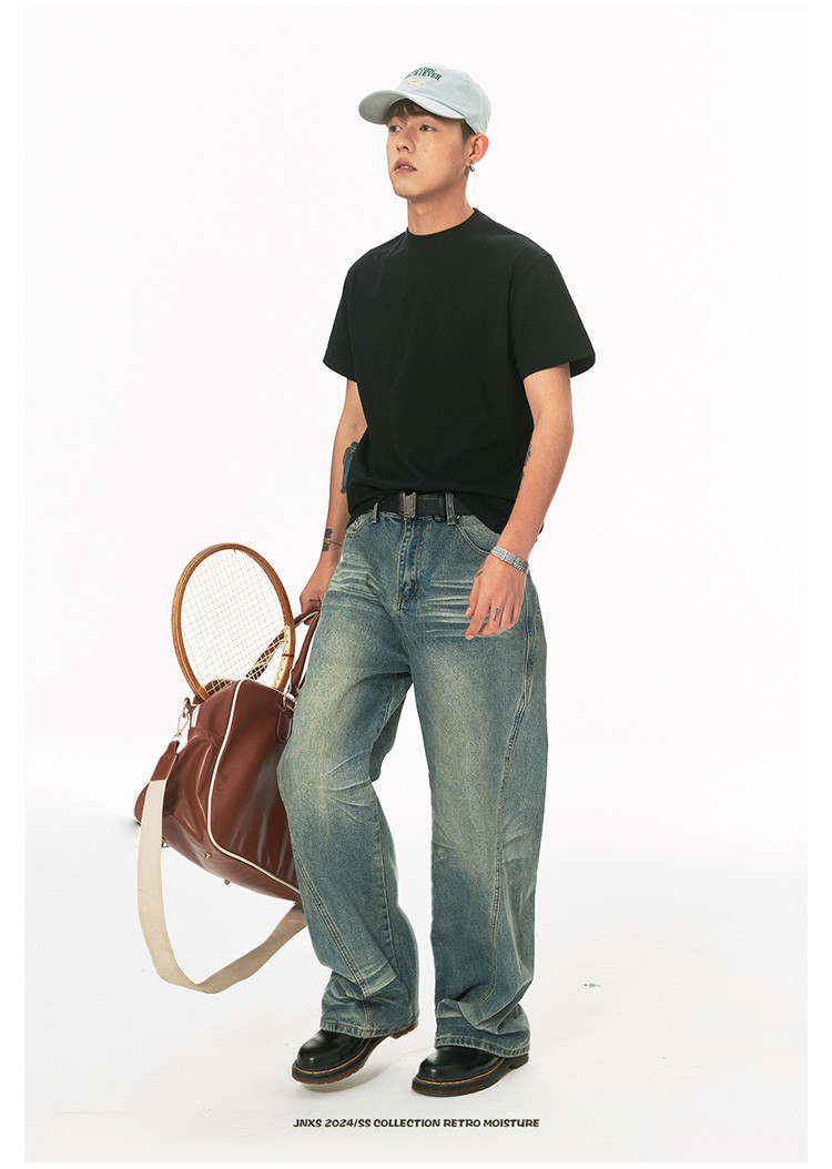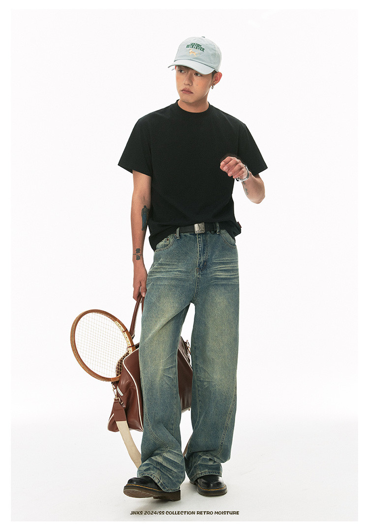 商品名称:江南先生美式复古索罗娜纯色休闲圆领短袖T恤男女夏季情侣打底衫 024273