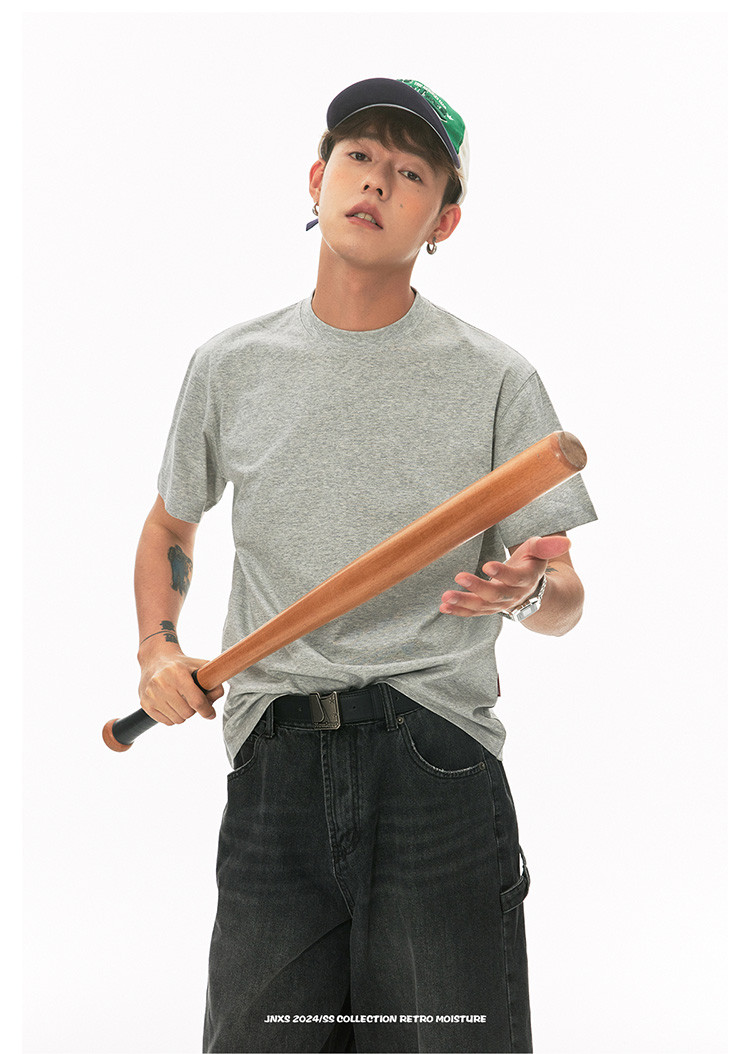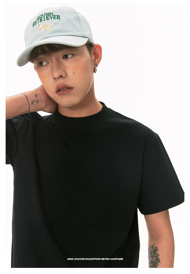 江南先生美式复古索罗娜纯色休闲圆领短袖T恤男女夏季情侣打底衫 024273