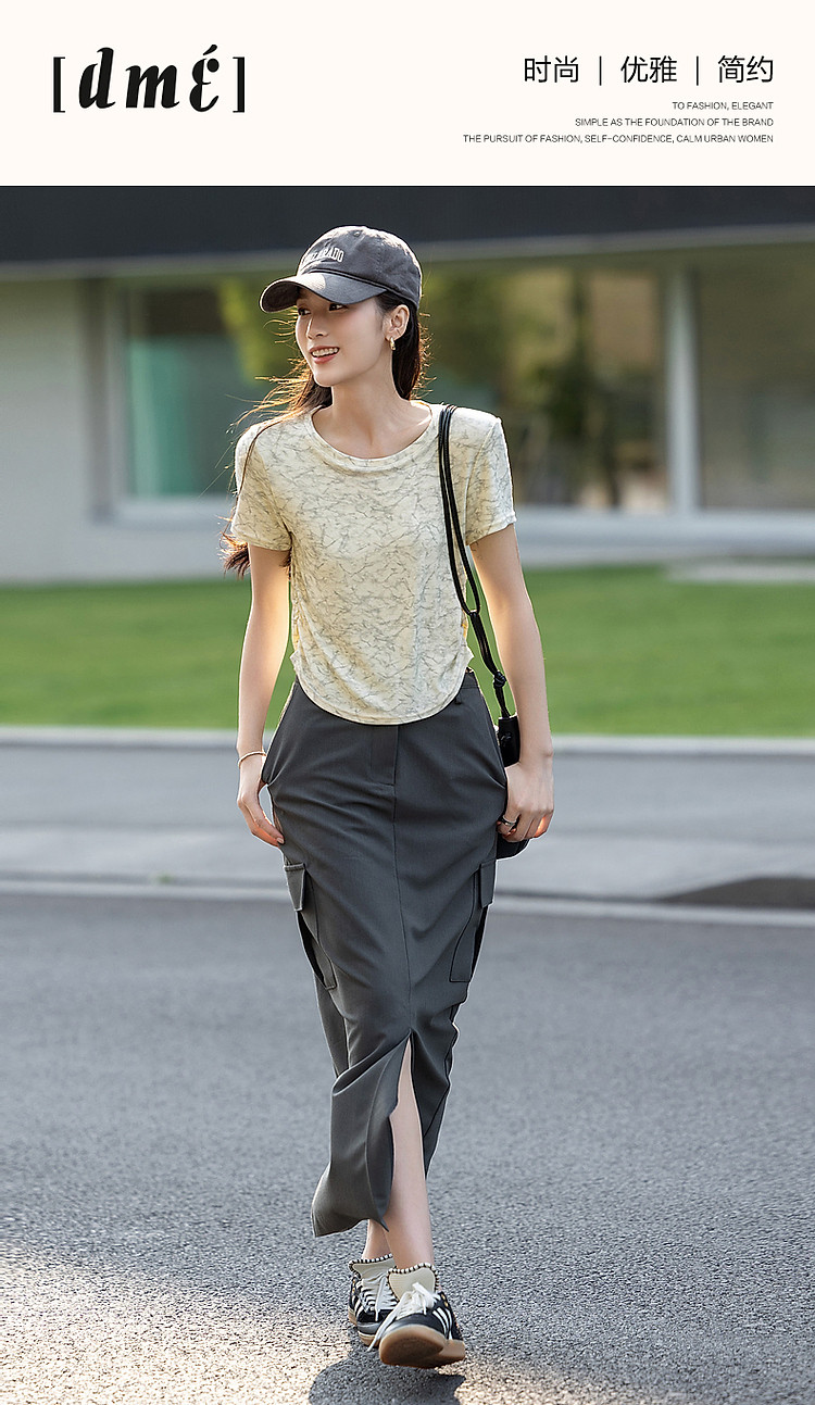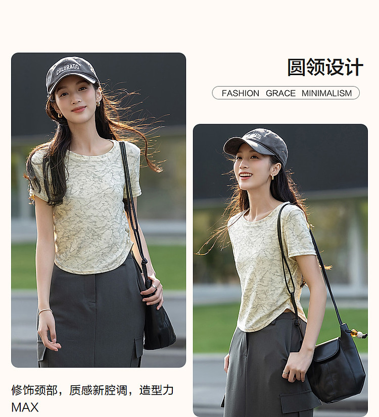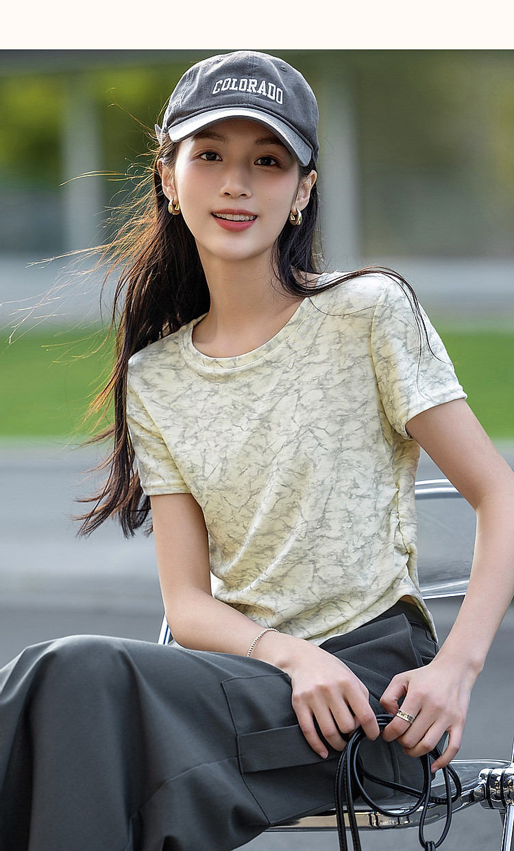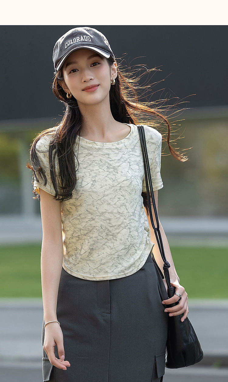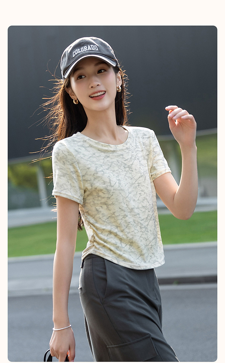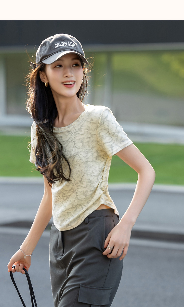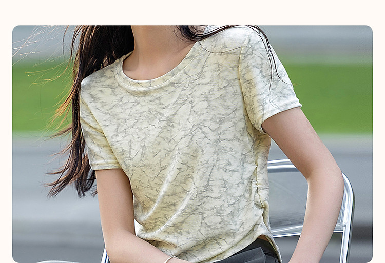 商品名称:【扎染艺术t恤】夏甜美淑女圆领修身显瘦短袖藏肉女式t恤 708353