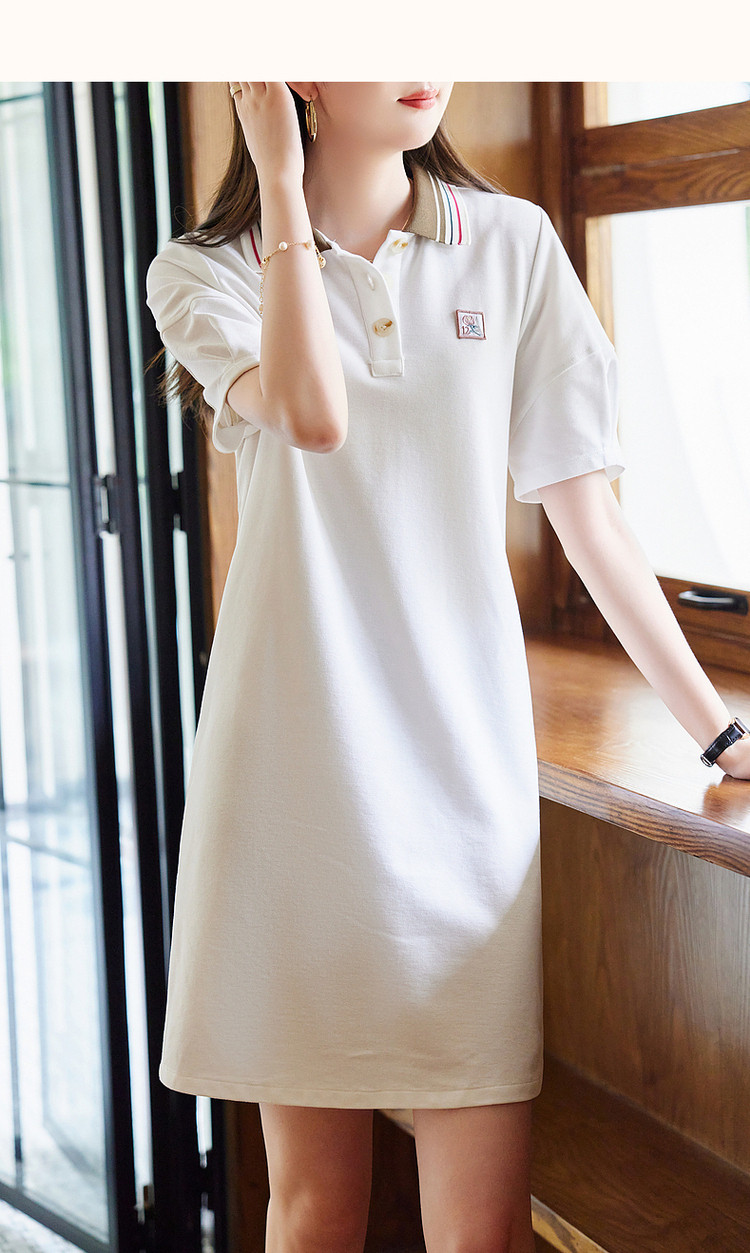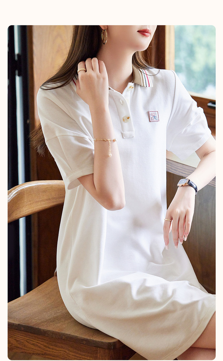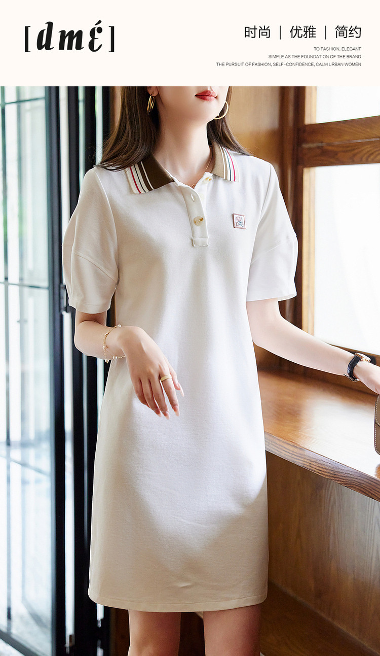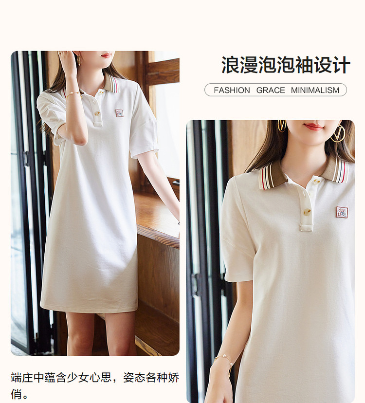 商品名称:【棉质刺绣裙】夏款翻领泡泡袖撞色连衣裙女中长款 074241