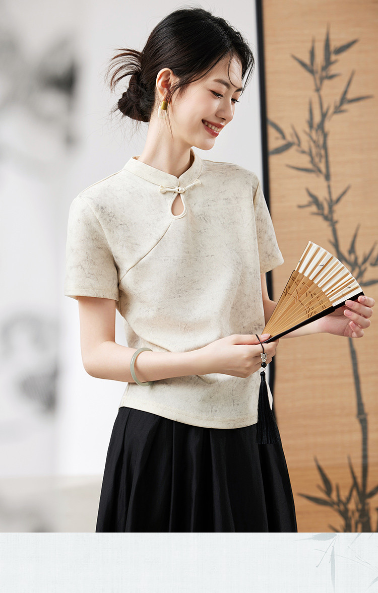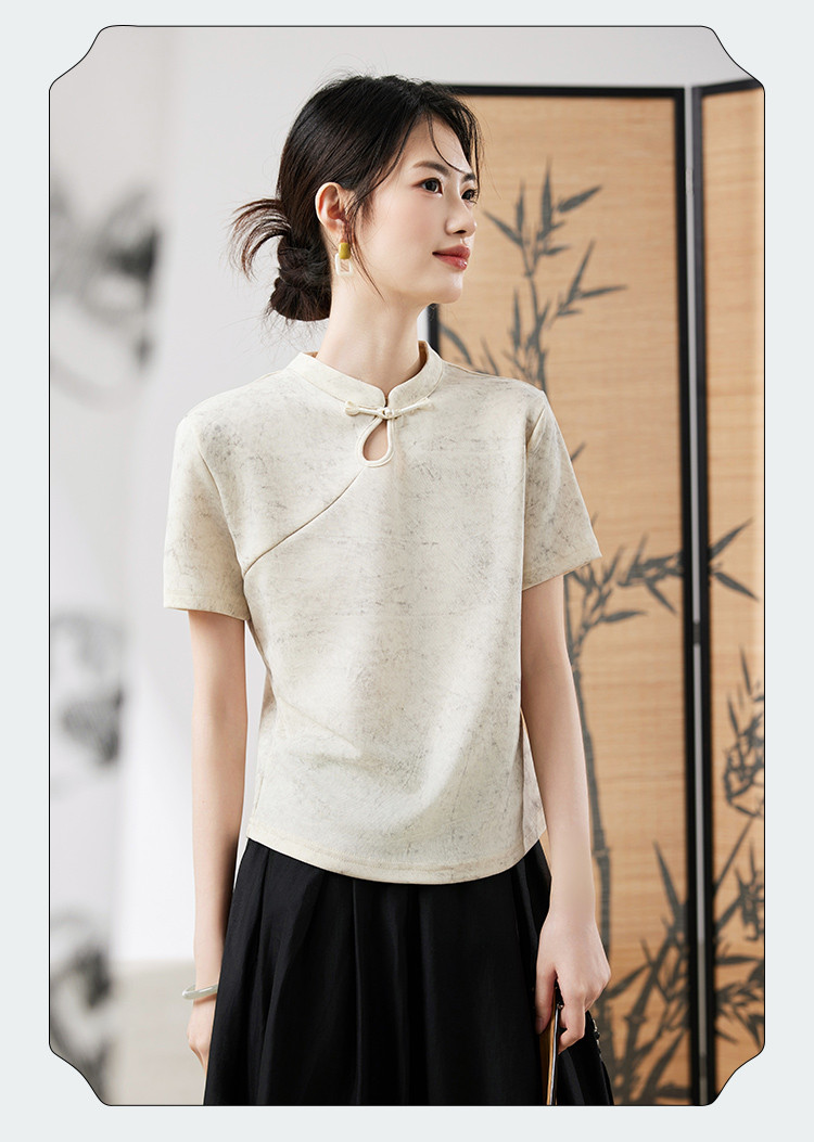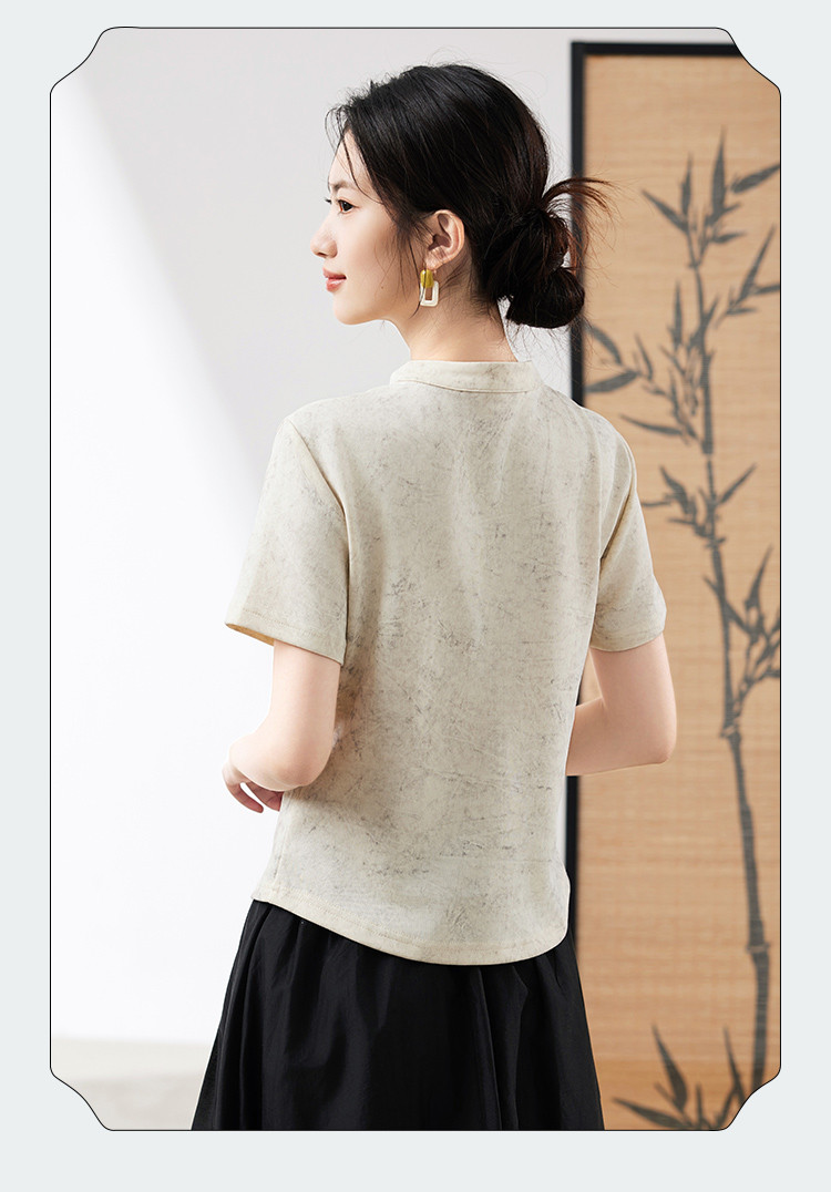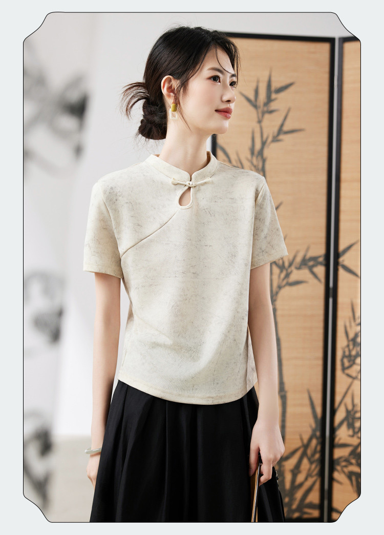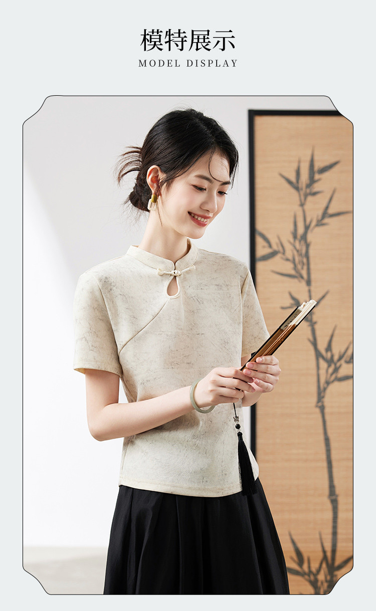 商品名称:新中式短袖T恤女2025夏装新款高级感扎染正肩显瘦国风上衣 917272