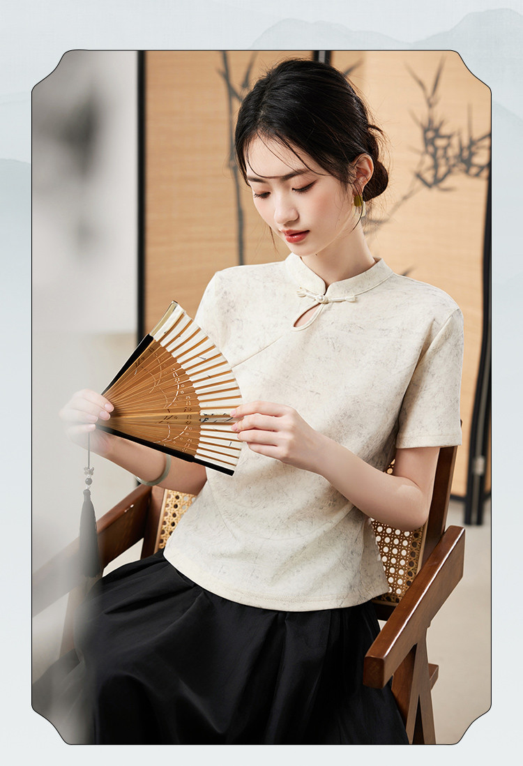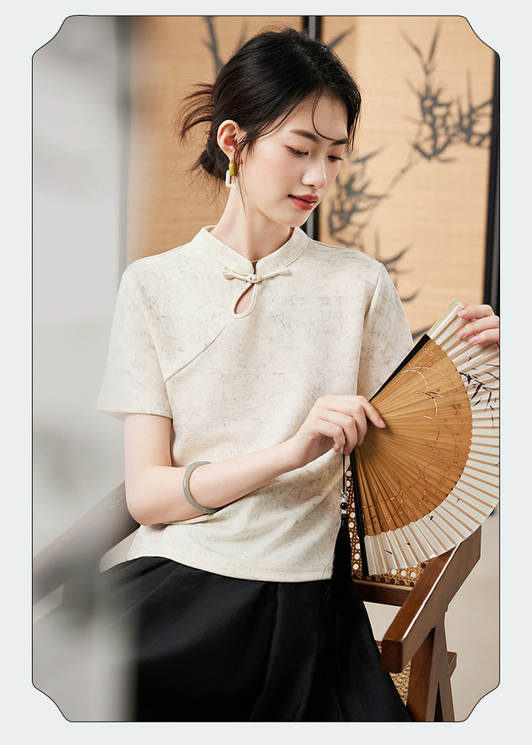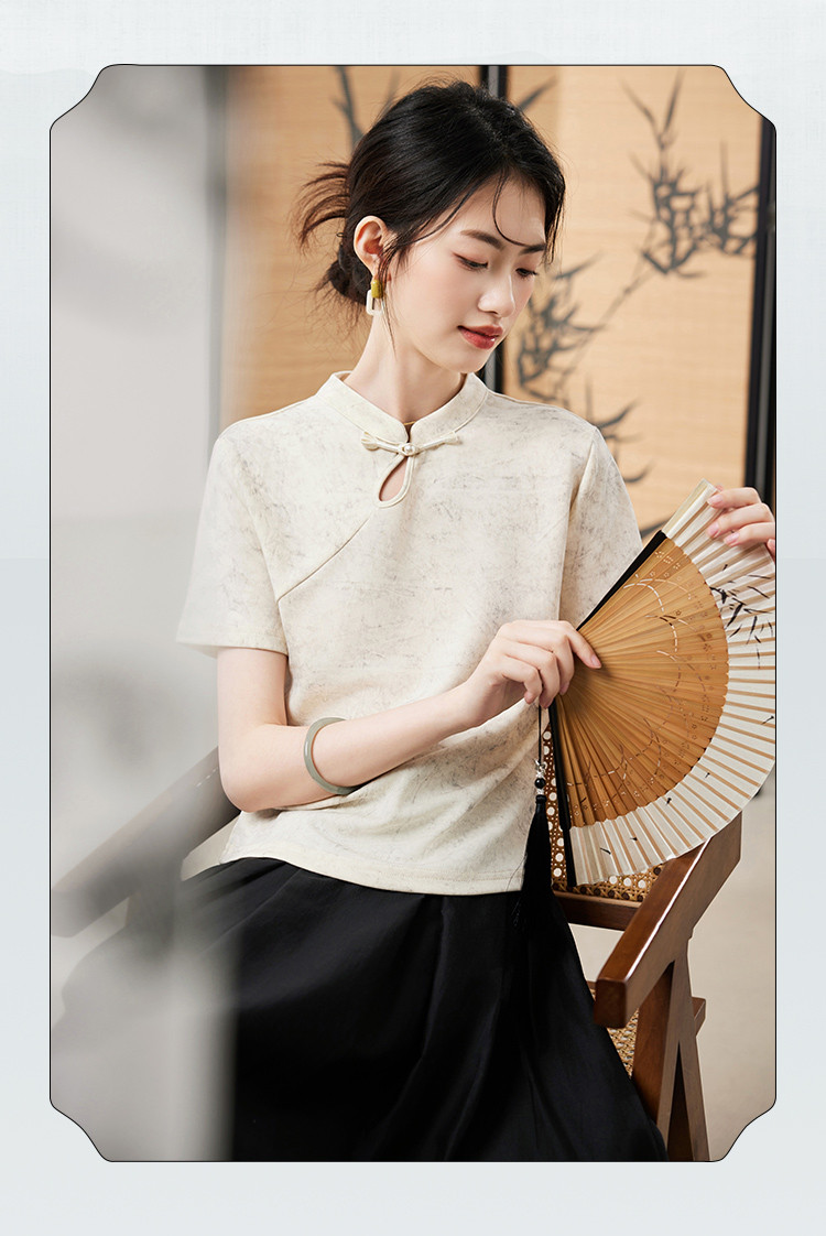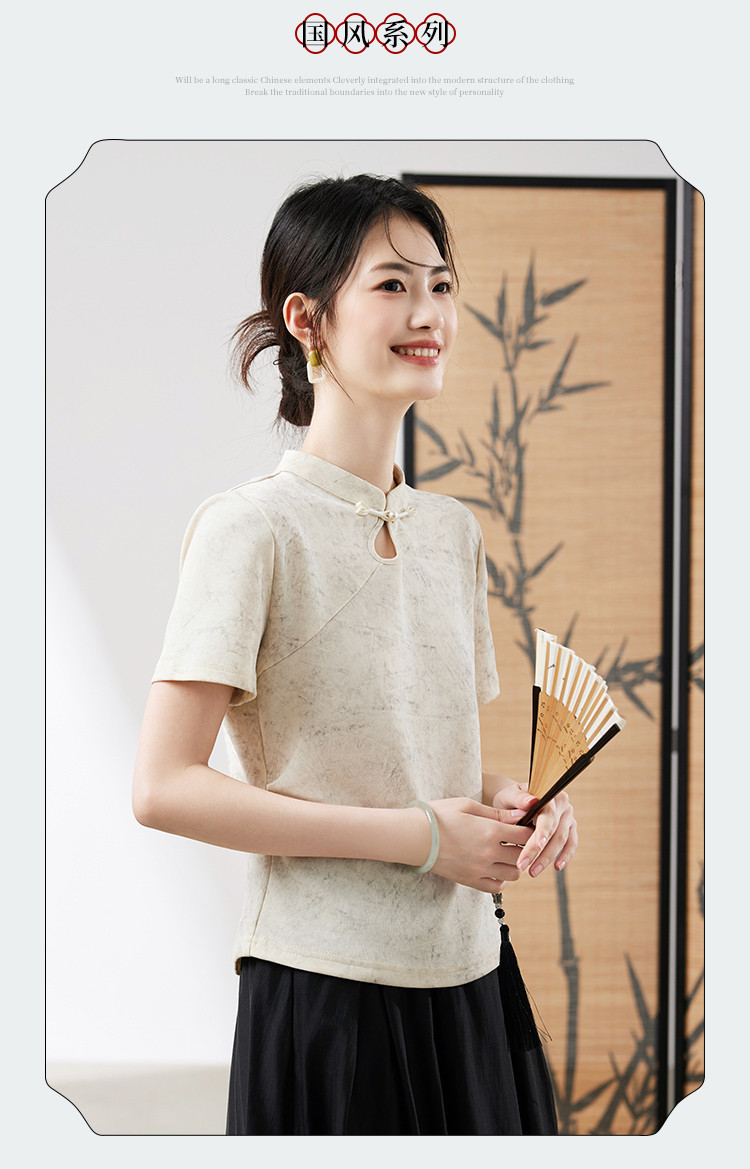 商品名称:新中式短袖T恤女2025夏装新款高级感扎染正肩显瘦国风上衣 917272