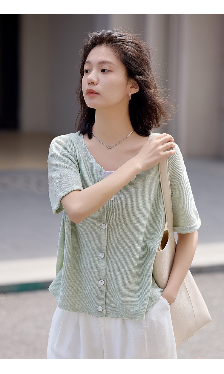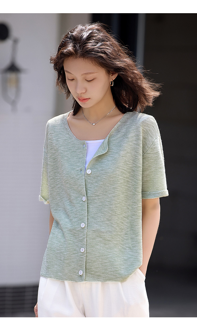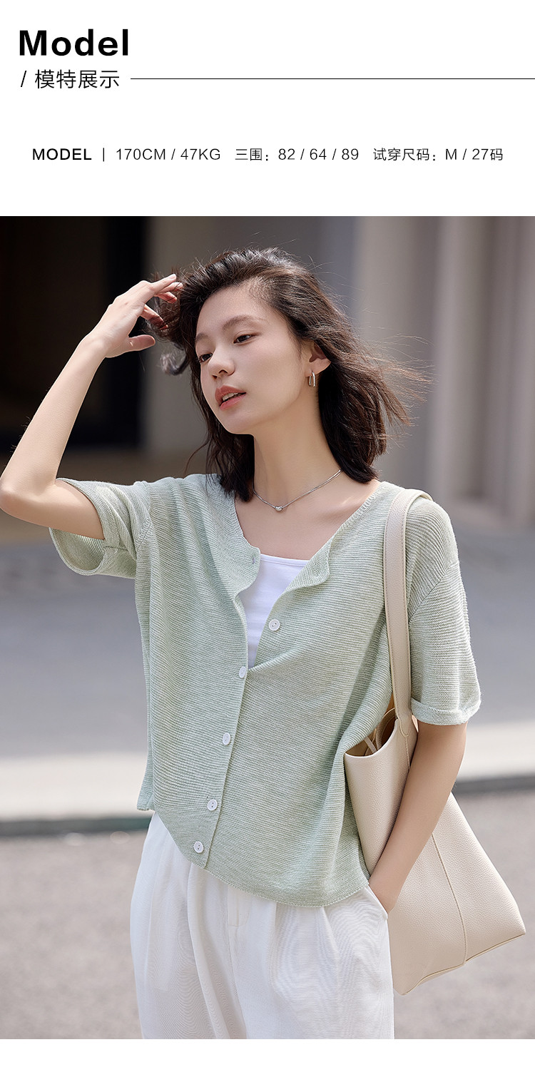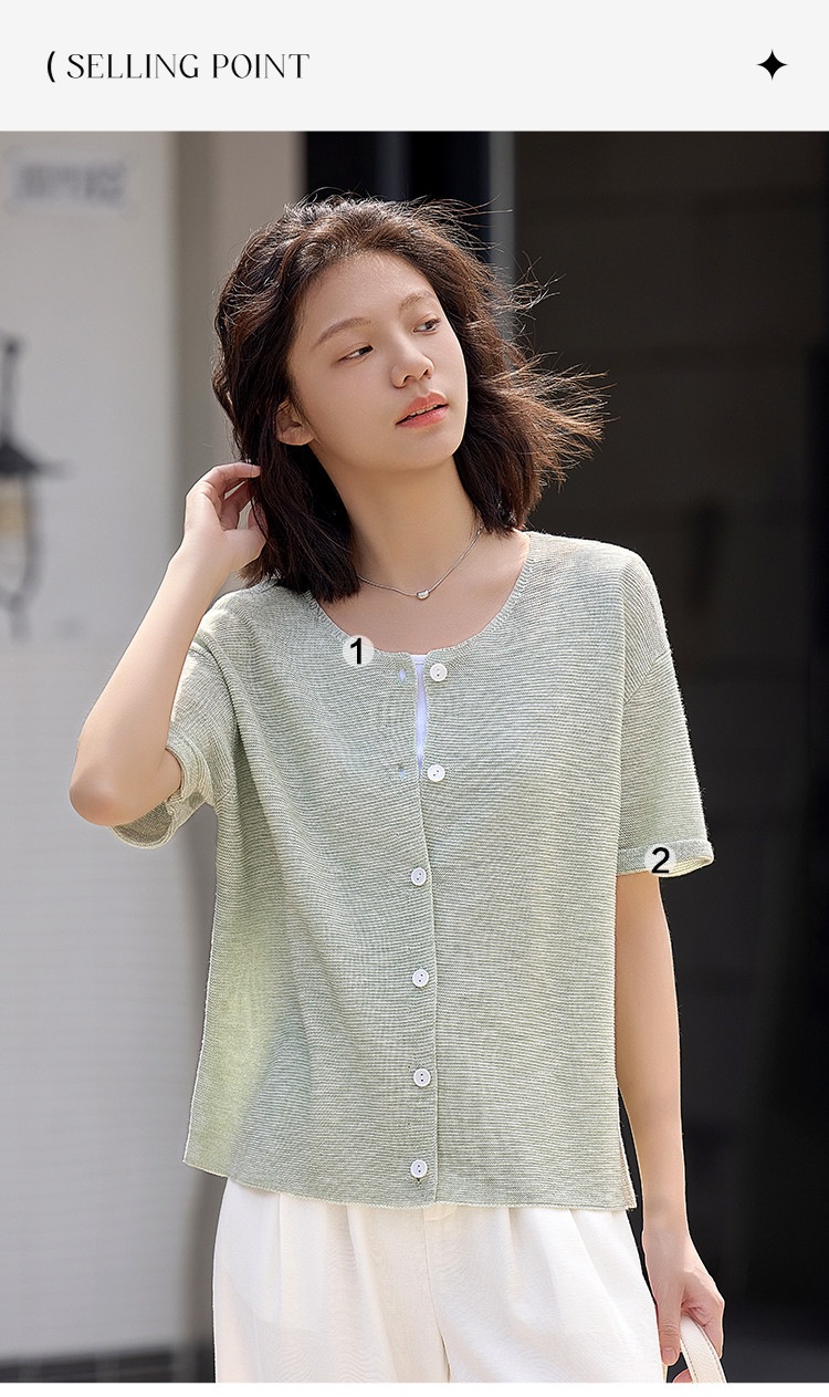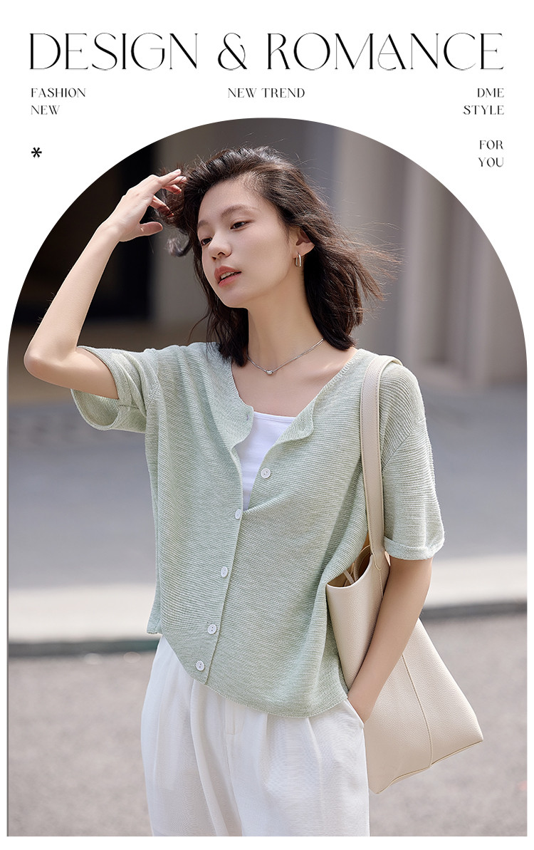 商品名称:【翻折袖口线衫】夏款网红风透气简约圆领短袖线衫开衫 021186
