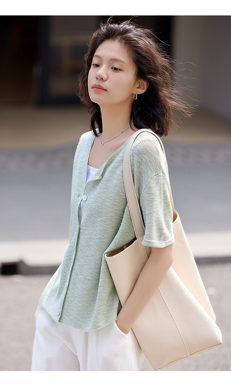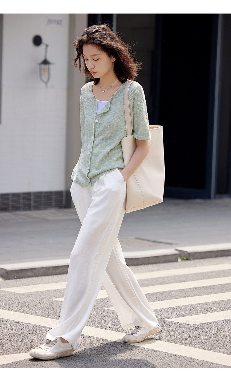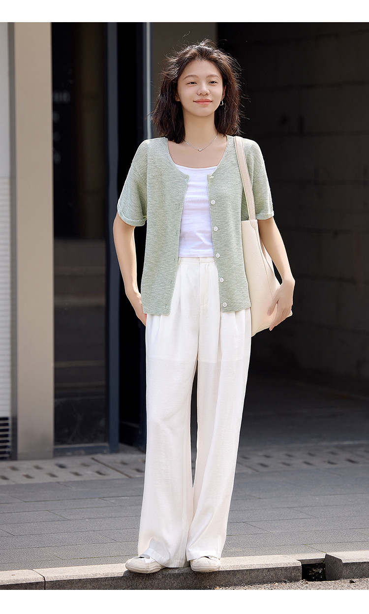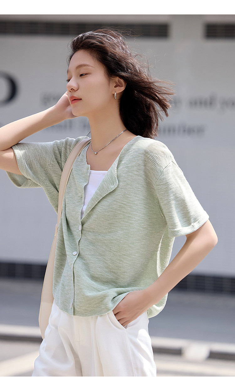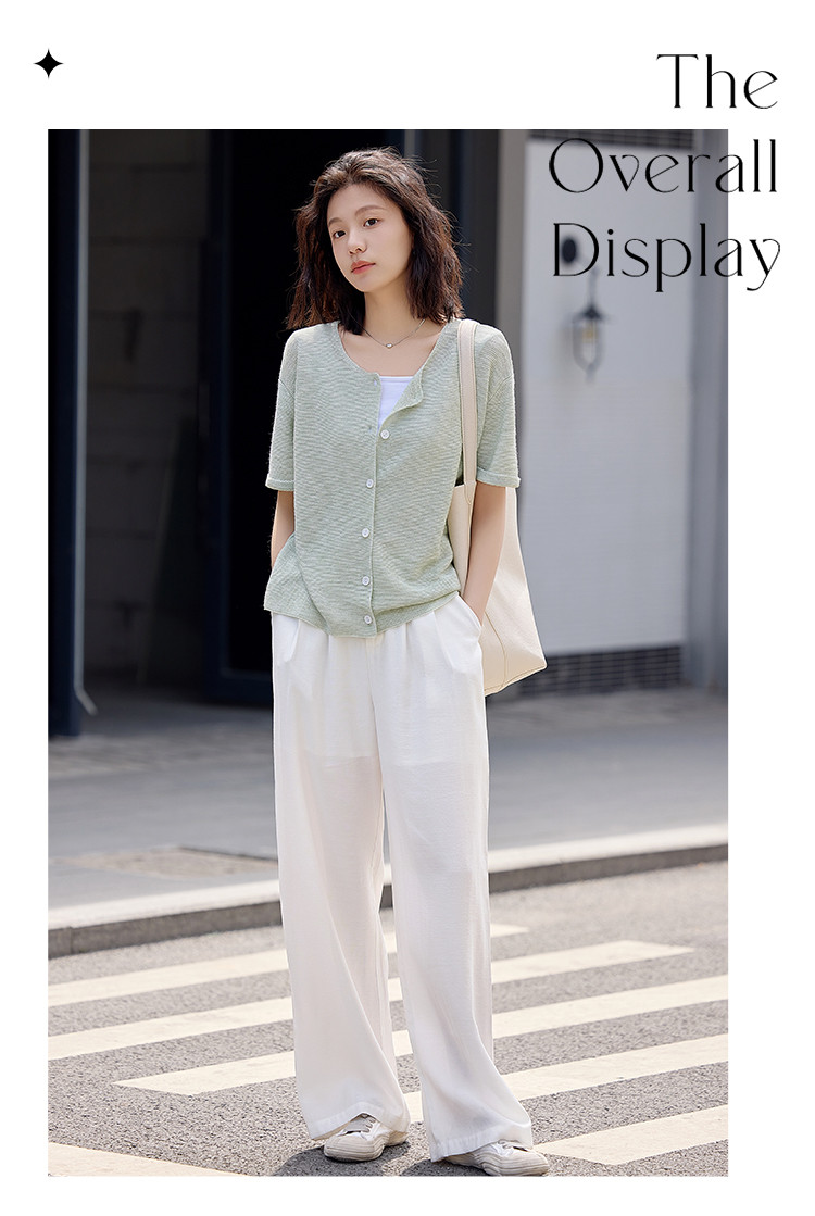 商品名称:【翻折袖口线衫】夏款网红风透气简约圆领短袖线衫开衫 021186