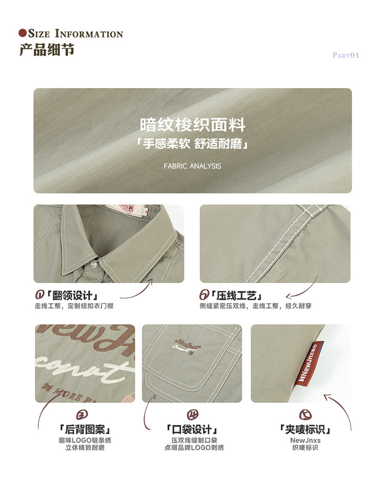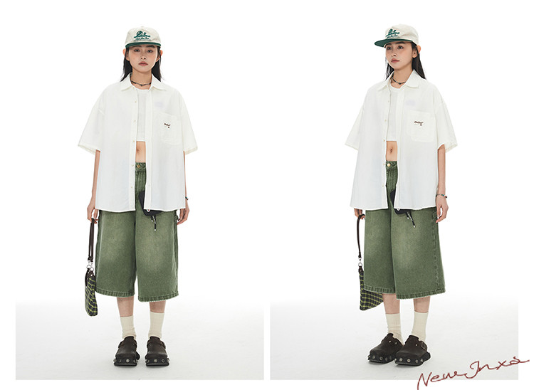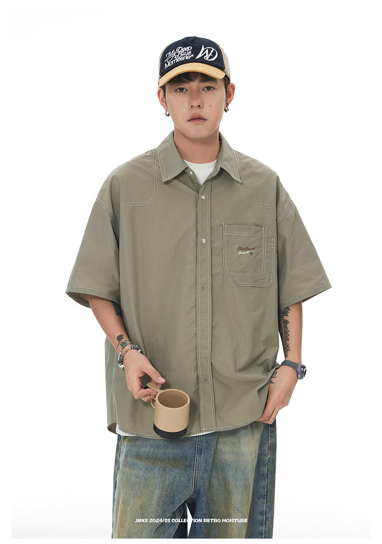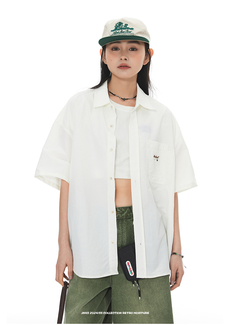 商品名称:JNXS美式刺绣设计短袖衬衫夏季宽松男女国潮工装休闲衬衣 573905