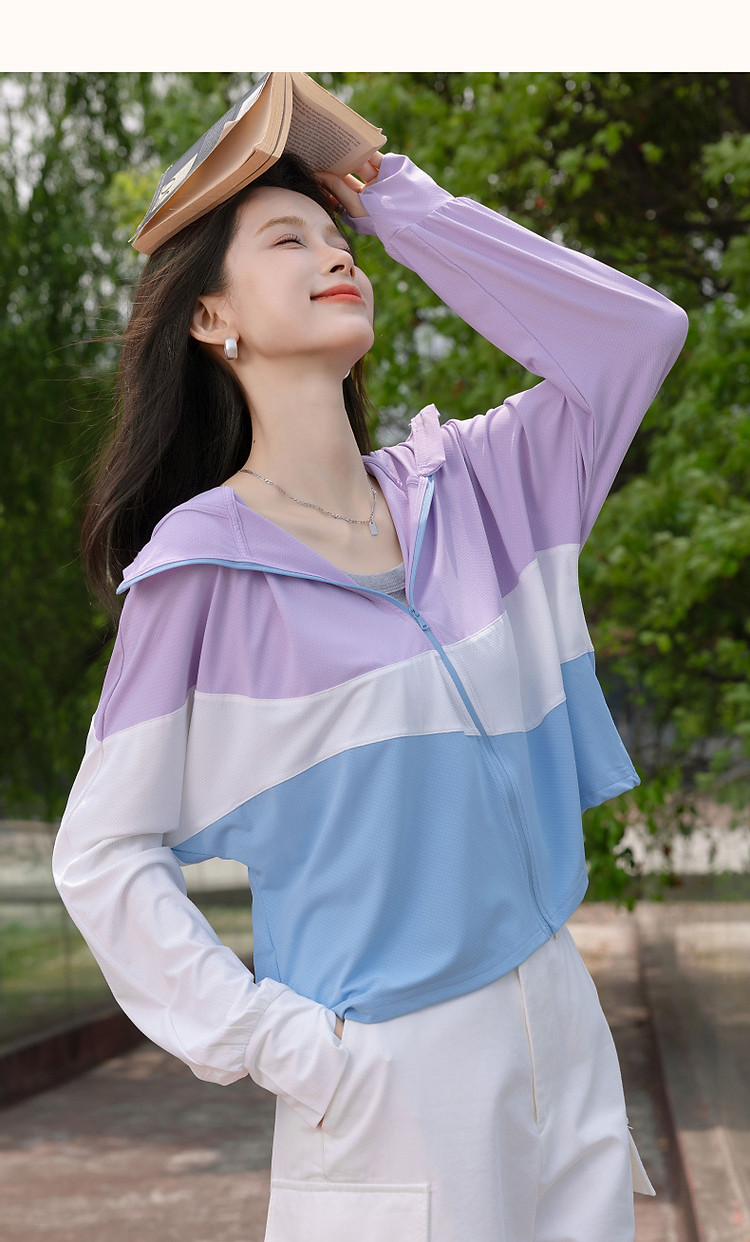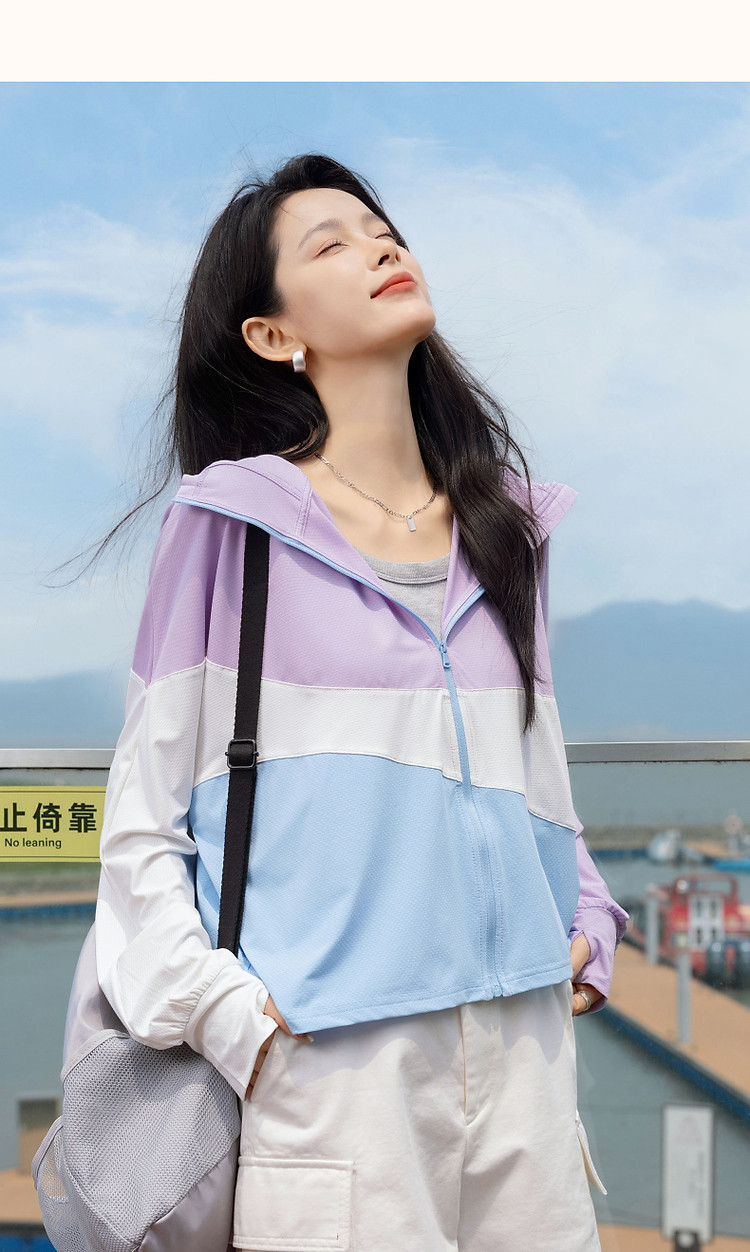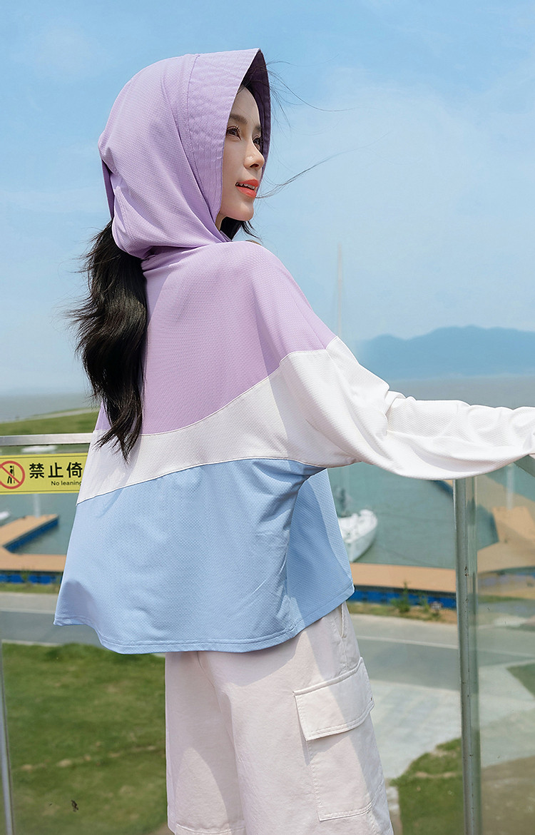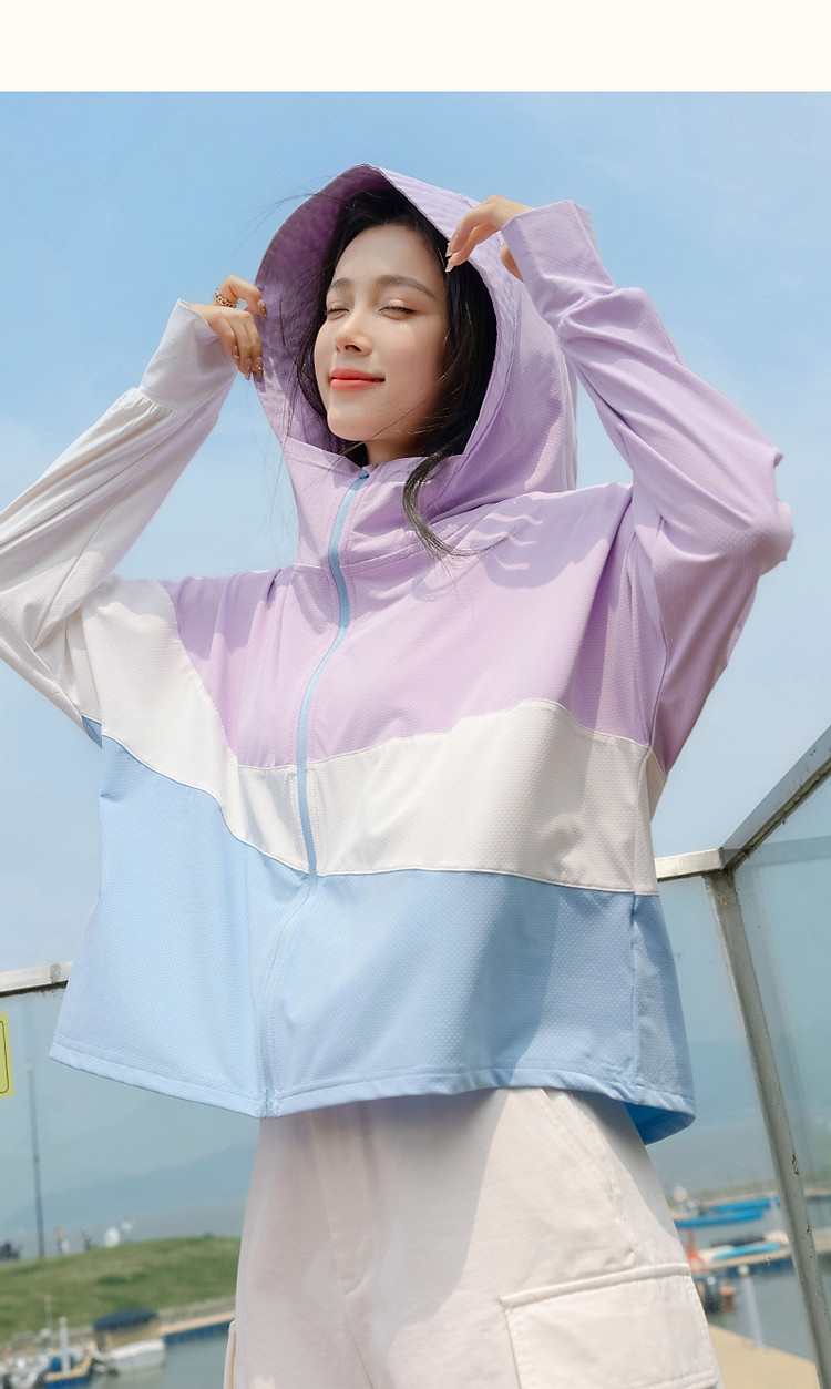 【新城市运动风】春秋连帽马卡龙薄款宽松拼色微弹外套女上衣休闲 829057