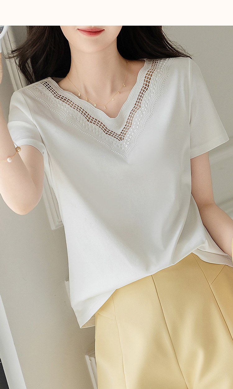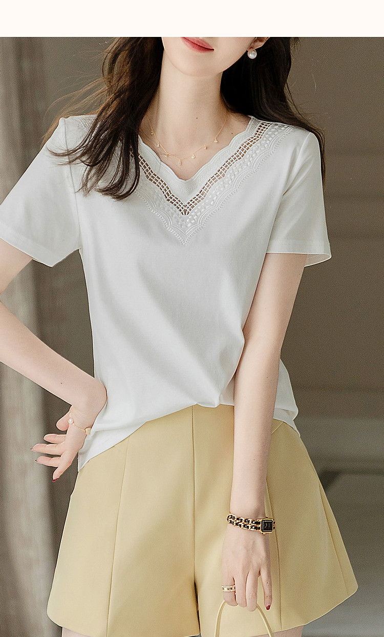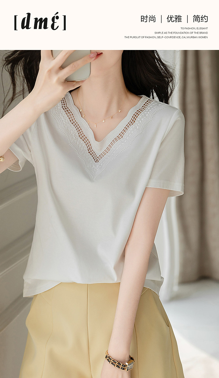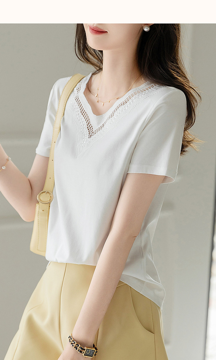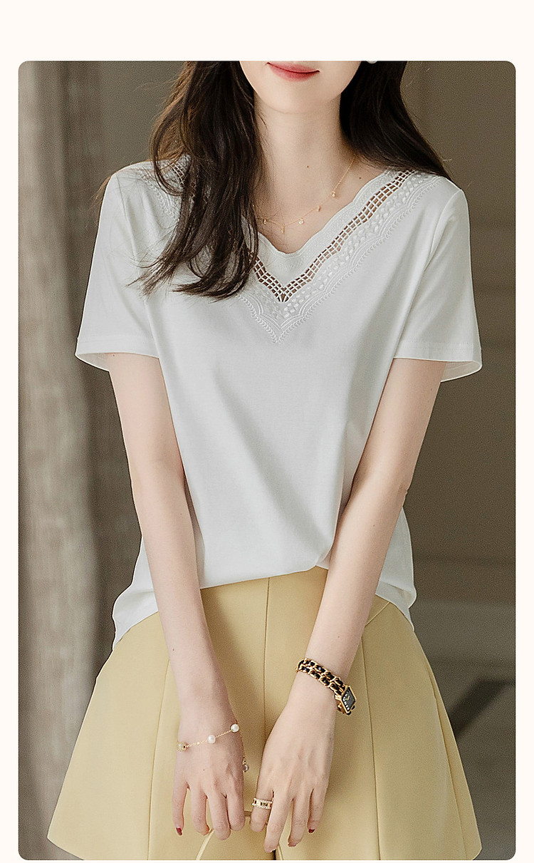 【都市简约棉氨t恤】轻熟V领通勤微弹短袖t恤柔软透气女式t恤 874433