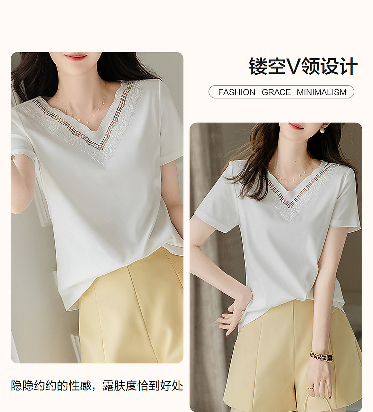 商品名称:【都市简约棉氨t恤】轻熟V领通勤微弹短袖t恤柔软透气女式t恤 874433