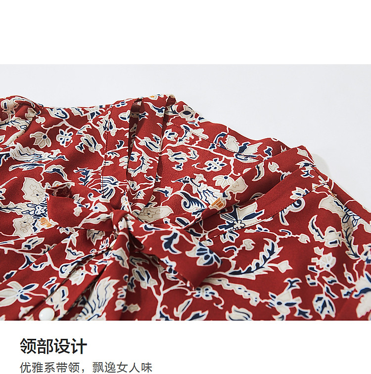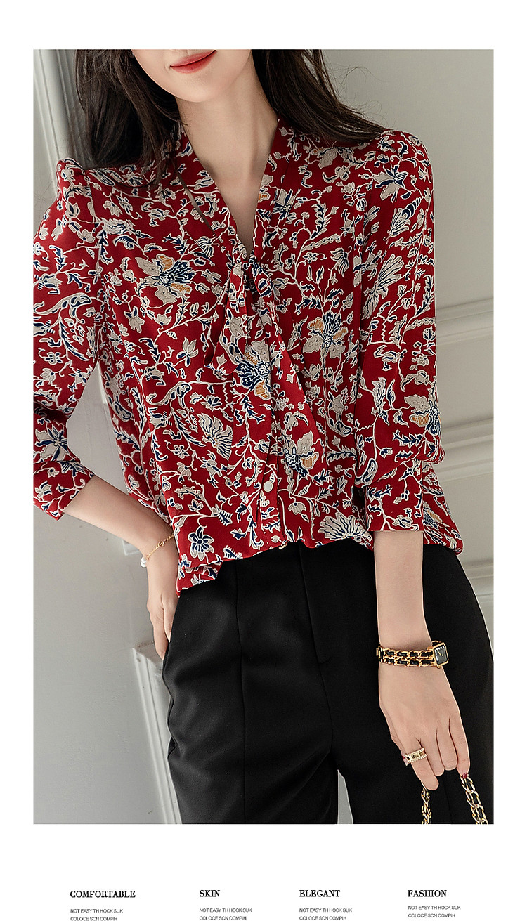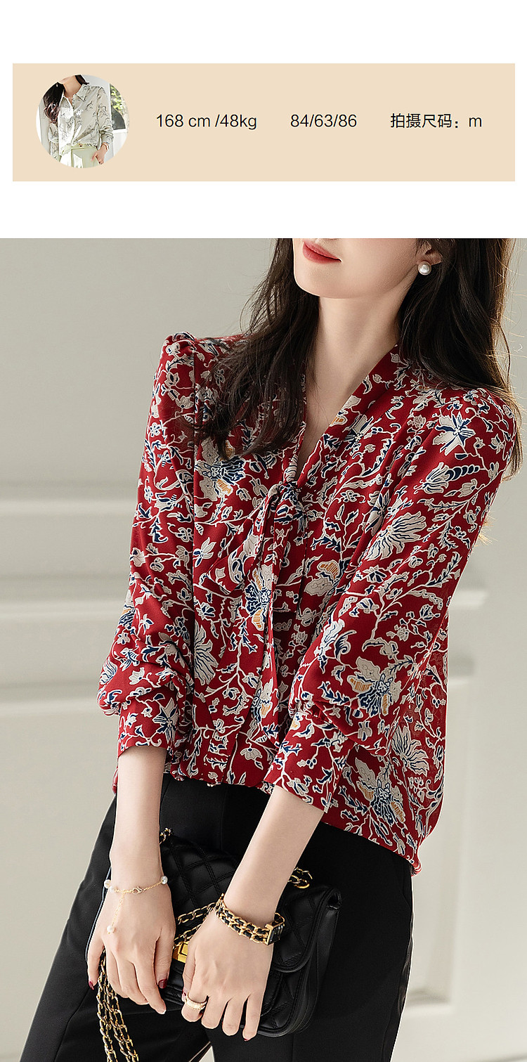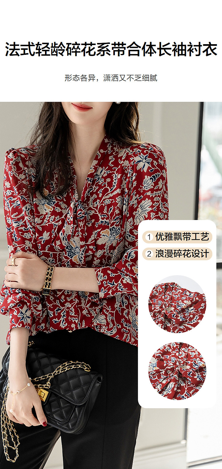 商品名称:【韩女速成班】春秋优雅风飘带衬衫高清印花好搭遮肉衬衣女装上衣 800385
