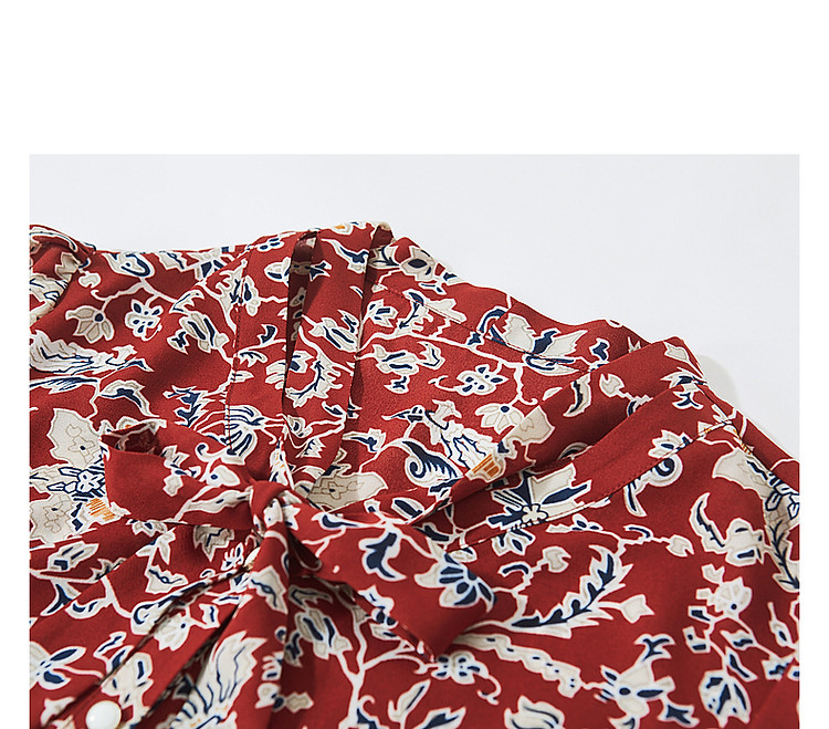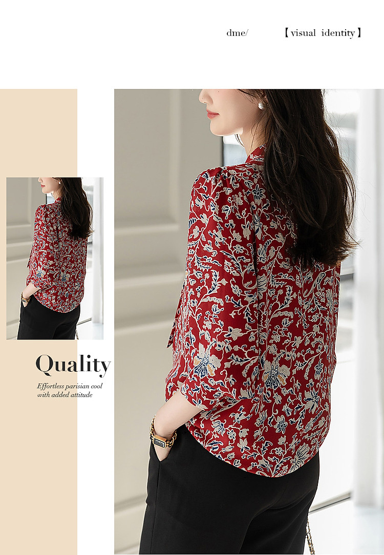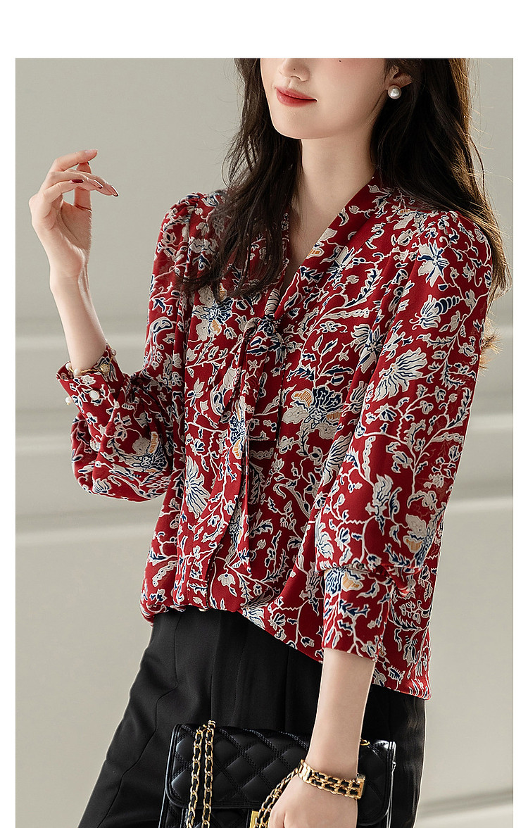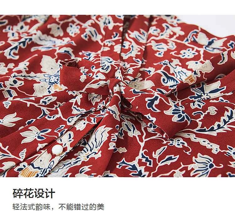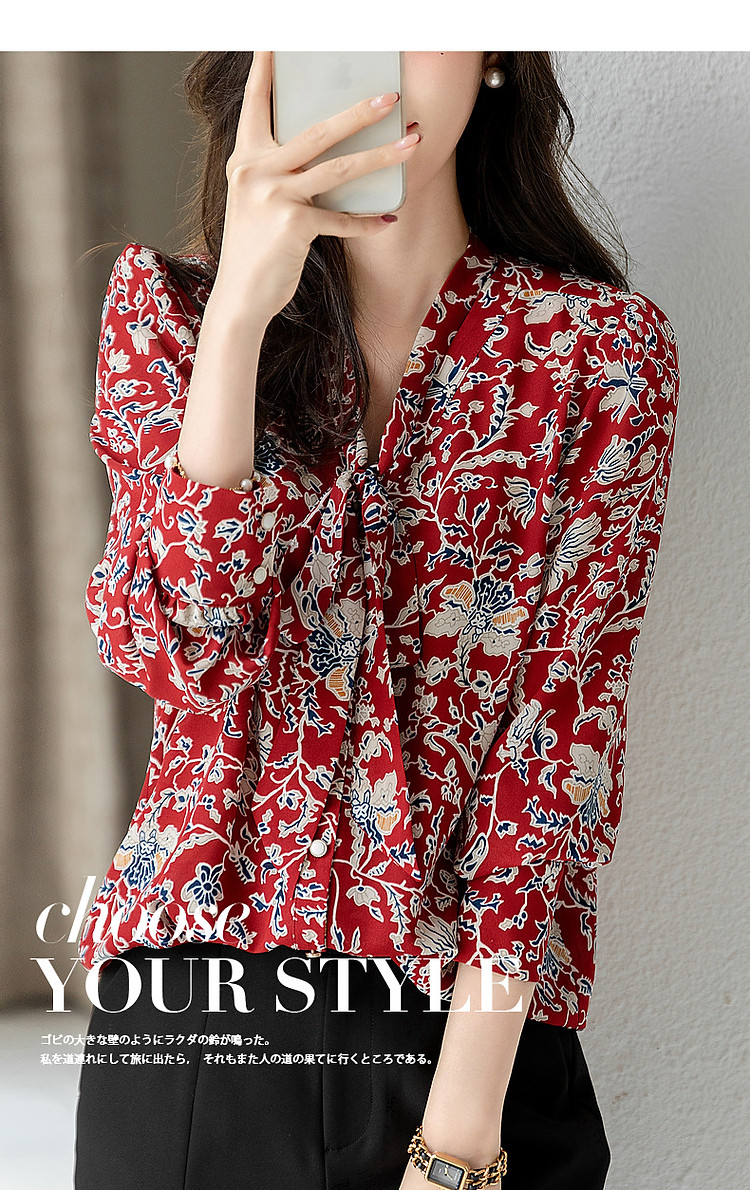 商品名称:【韩女速成班】春秋优雅风飘带衬衫高清印花好搭遮肉衬衣女装上衣 800385
