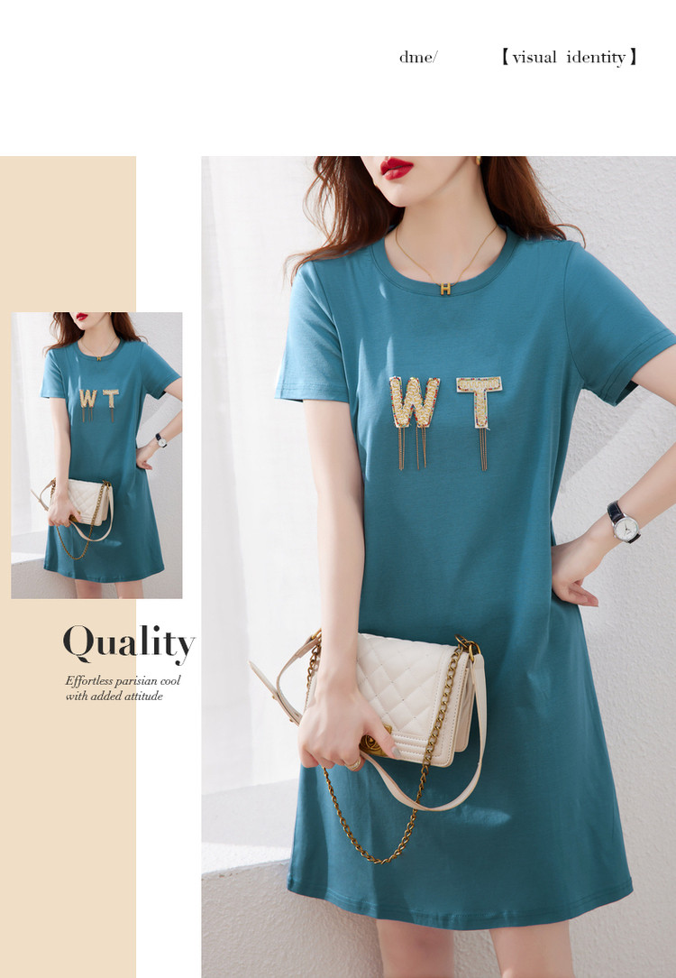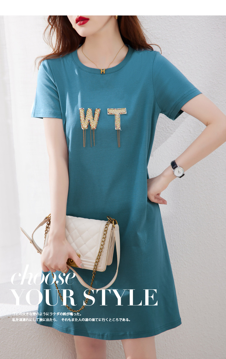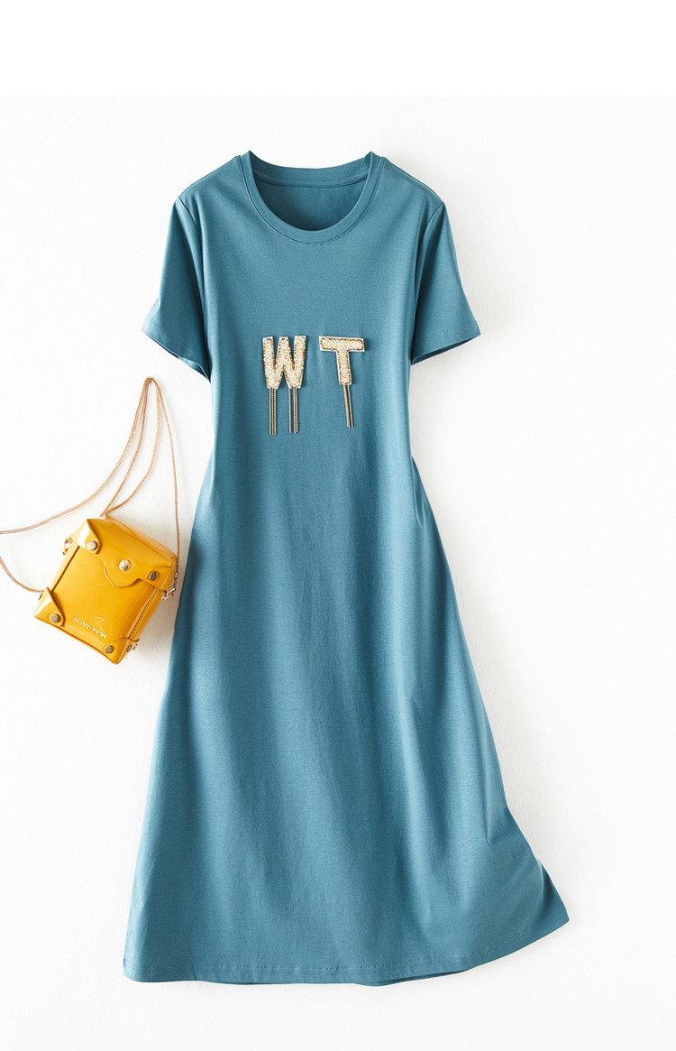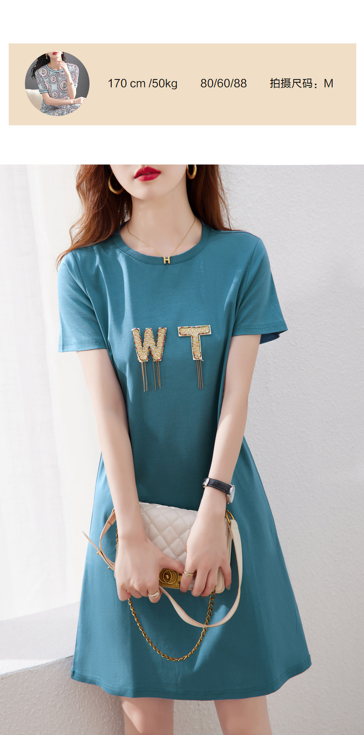 商品名称:【丝光棉】夏字母串珠流苏圆领短袖针织连衣裙女夏 626881