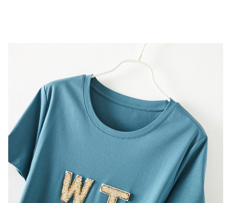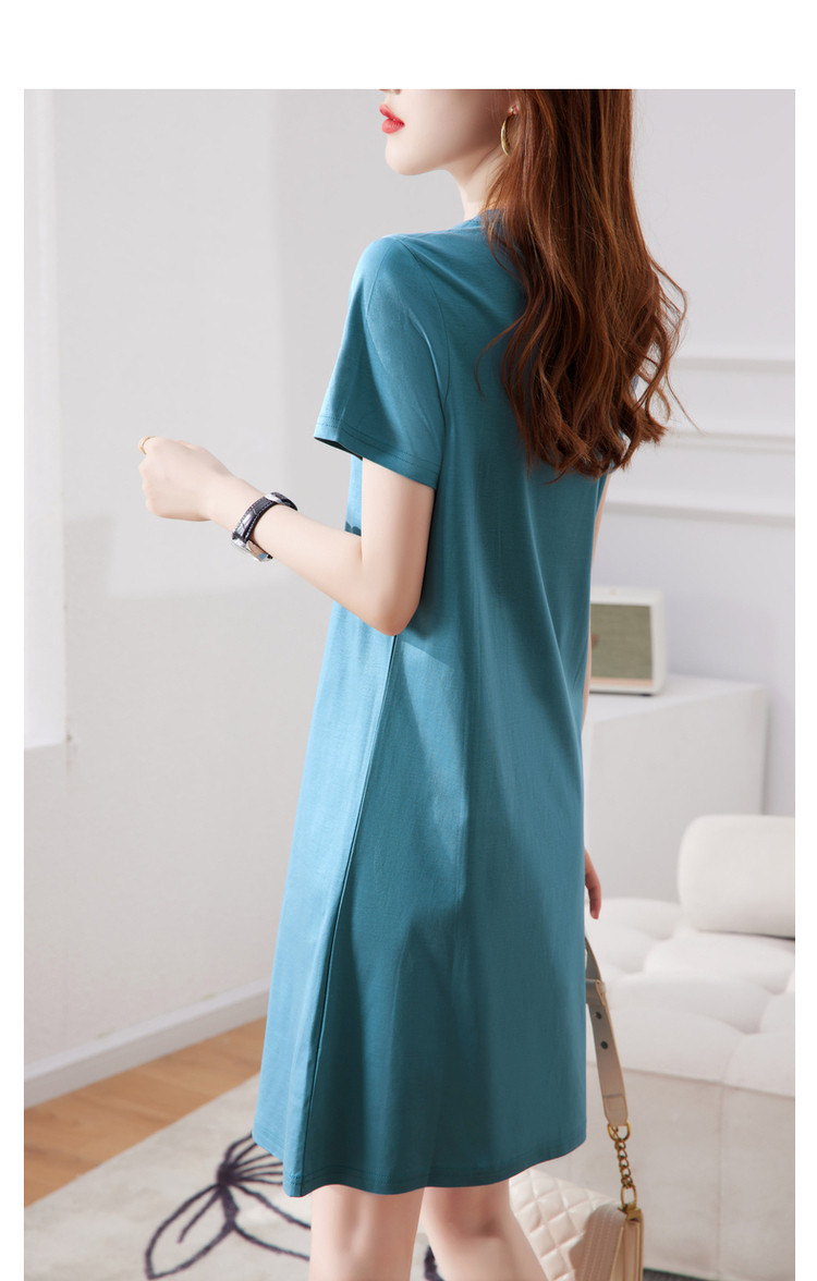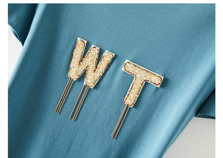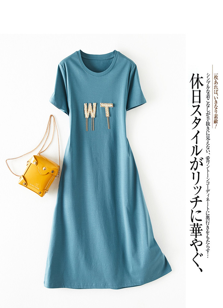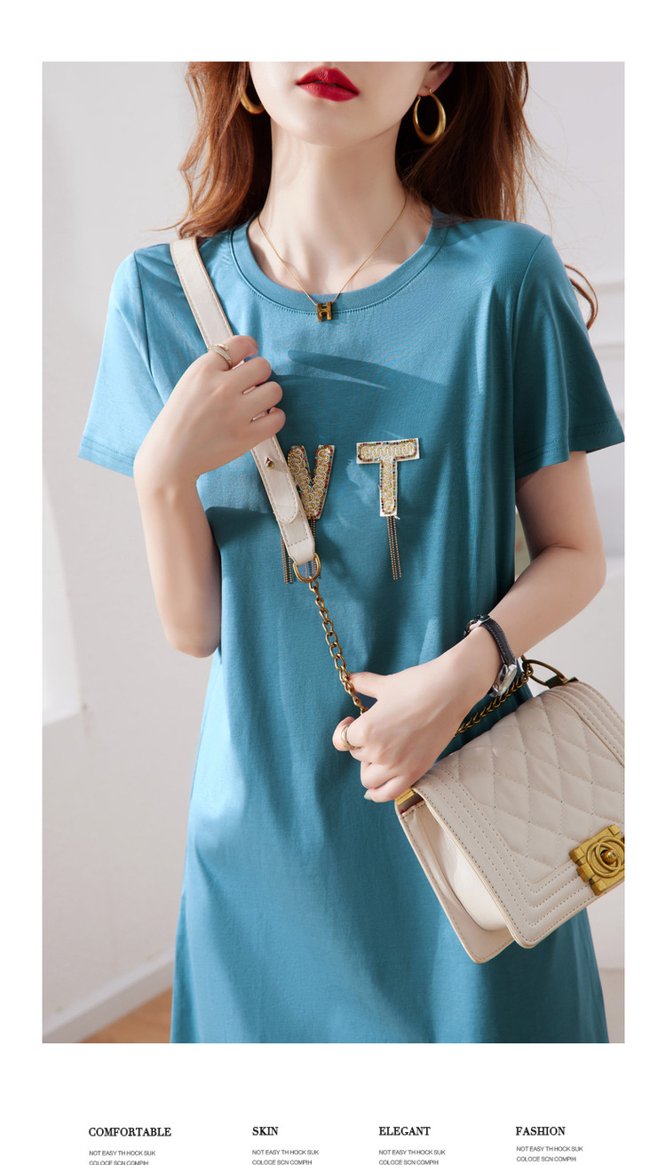 商品名称:【丝光棉】夏字母串珠流苏圆领短袖针织连衣裙女夏 626881
