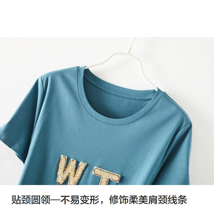 【丝光棉】夏字母串珠流苏圆领短袖针织连衣裙女夏 626881