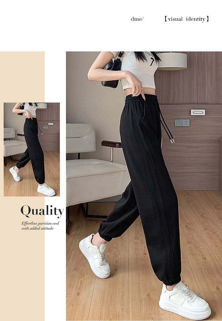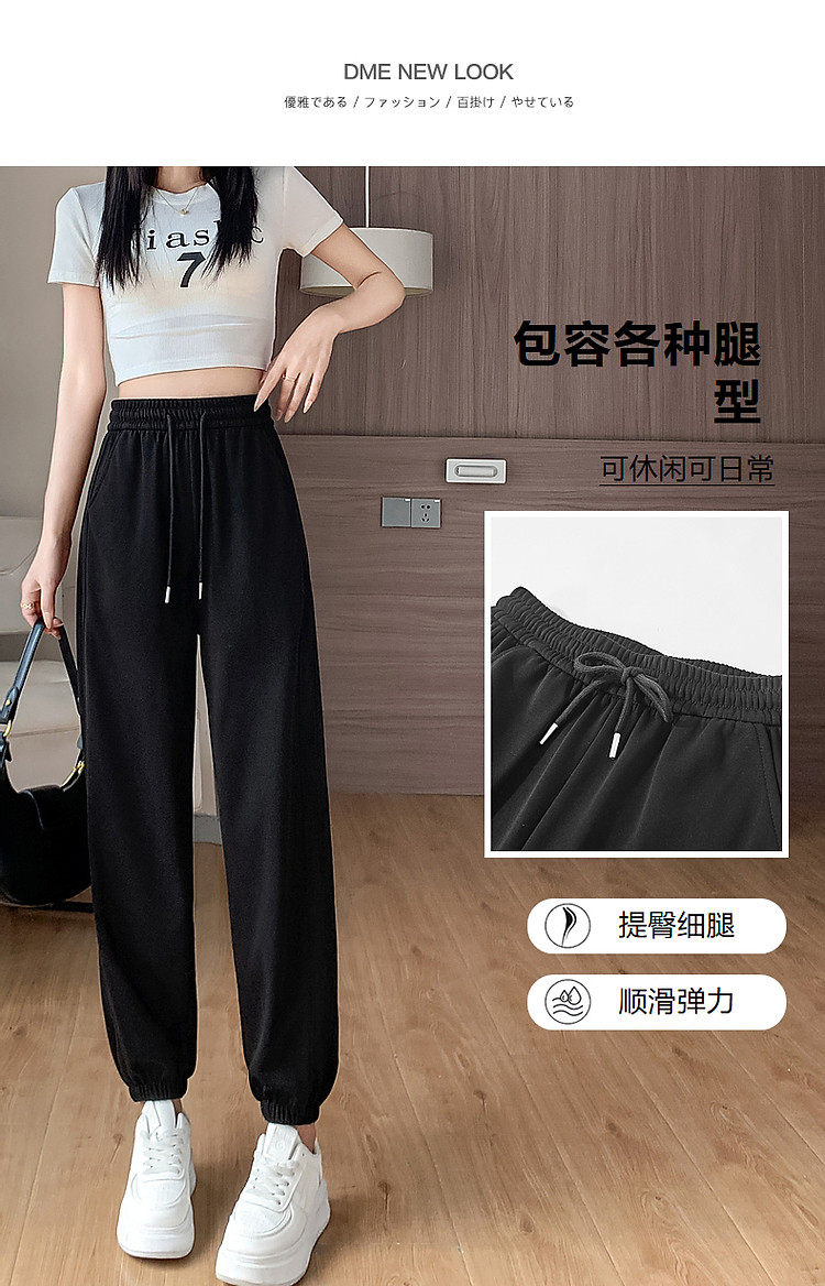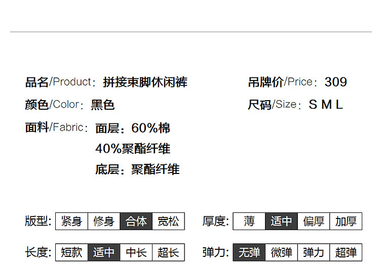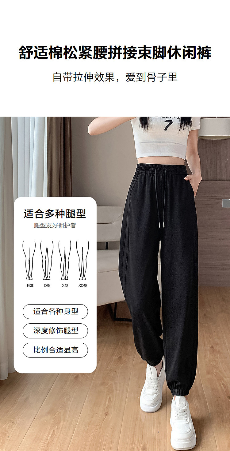 商品名称:【不挑腿型系列】春秋松紧腰拼接束脚裤微弹系绳舒适棉休闲裤 924033
