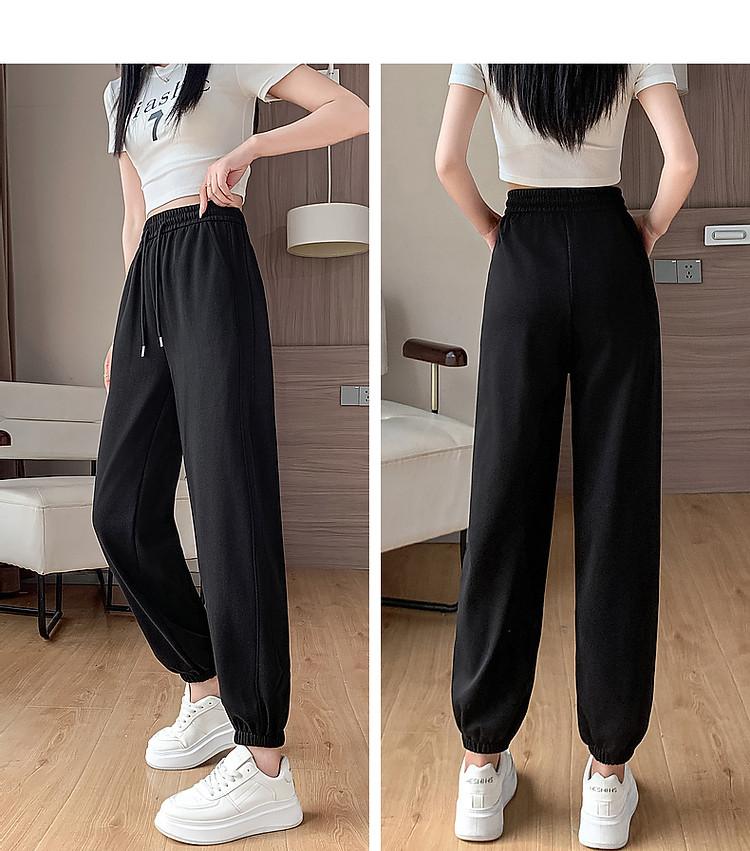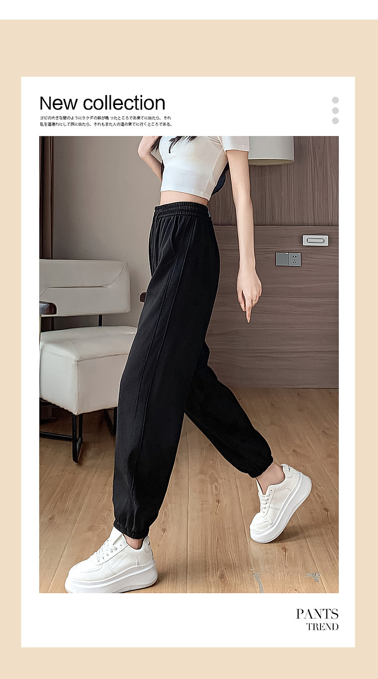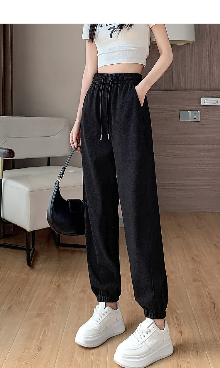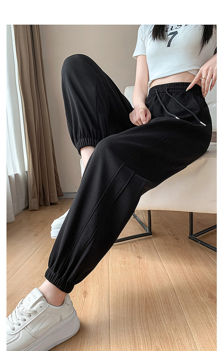 商品名称:【不挑腿型系列】春秋松紧腰拼接束脚裤微弹系绳舒适棉休闲裤 924033