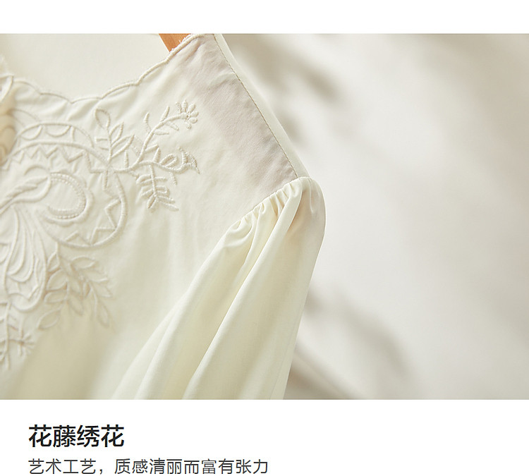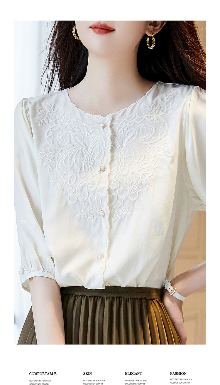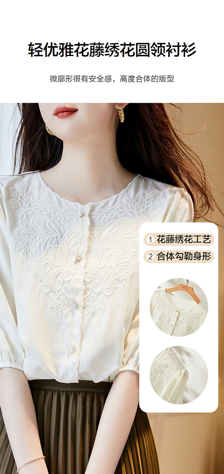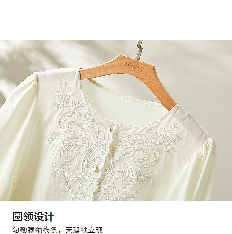 商品名称:【呼吸感花藤刺绣衬衫】夏法式文艺设计感褶皱藏肉舒适衬衣女上衣 931777