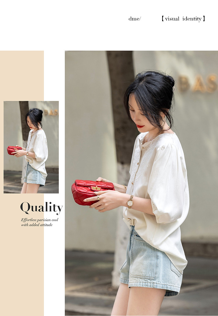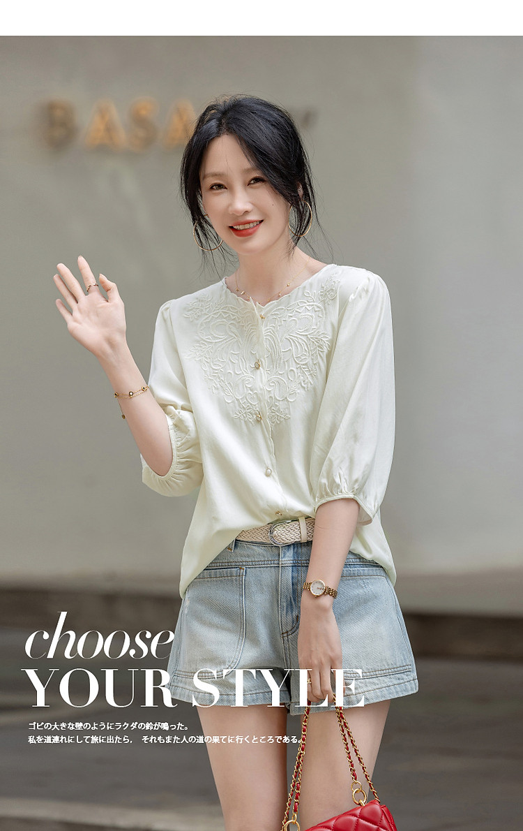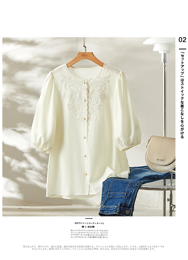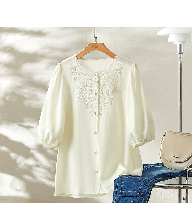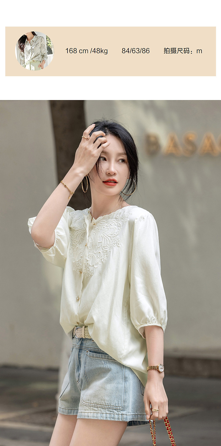 商品名称:【呼吸感花藤刺绣衬衫】夏法式文艺设计感褶皱藏肉舒适衬衣女上衣 931777