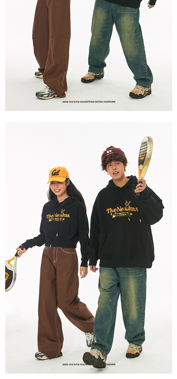 江南先生美式复古字母绣花情侣卫衣春季国潮男女百搭宽松连帽外套 560081