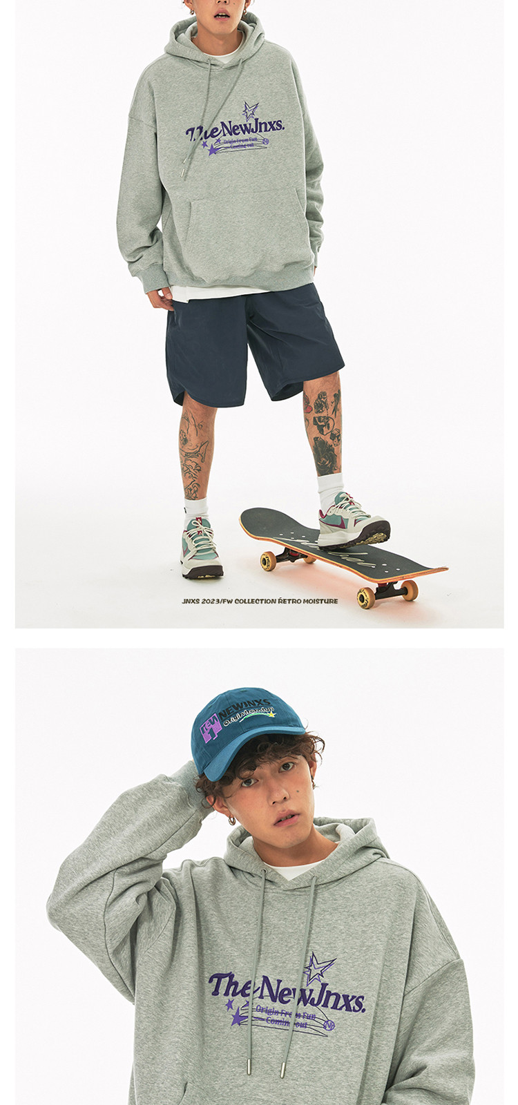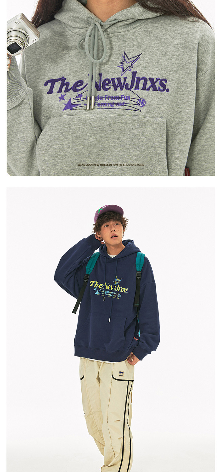 商品名称:江南先生美式复古字母绣花情侣卫衣春季国潮男女百搭宽松连帽外套 560081