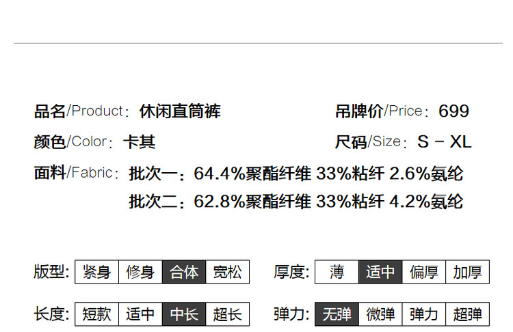 商品名称:【通勤休闲裤】春秋季简约直筒女裤拉链长裤子女 671297