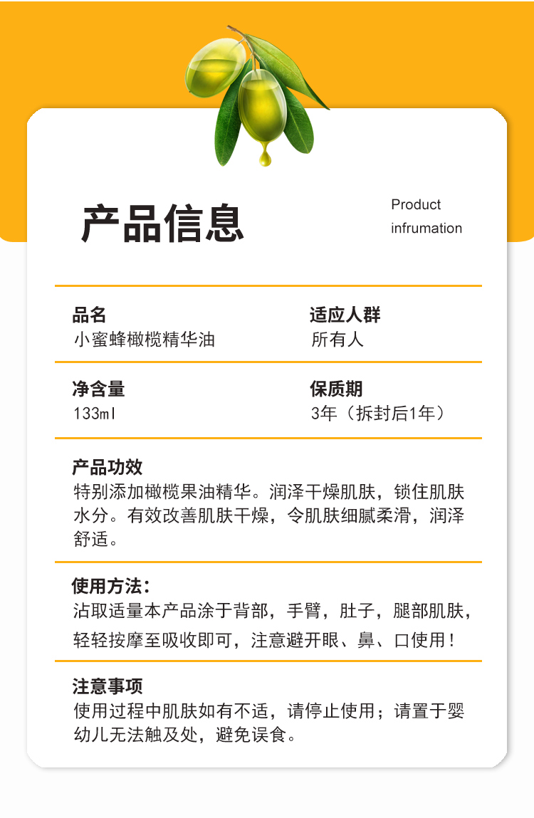商品名称:小蜜蜂孕妇橄榄油保湿润泽柔滑肌肤去孕纹细纹