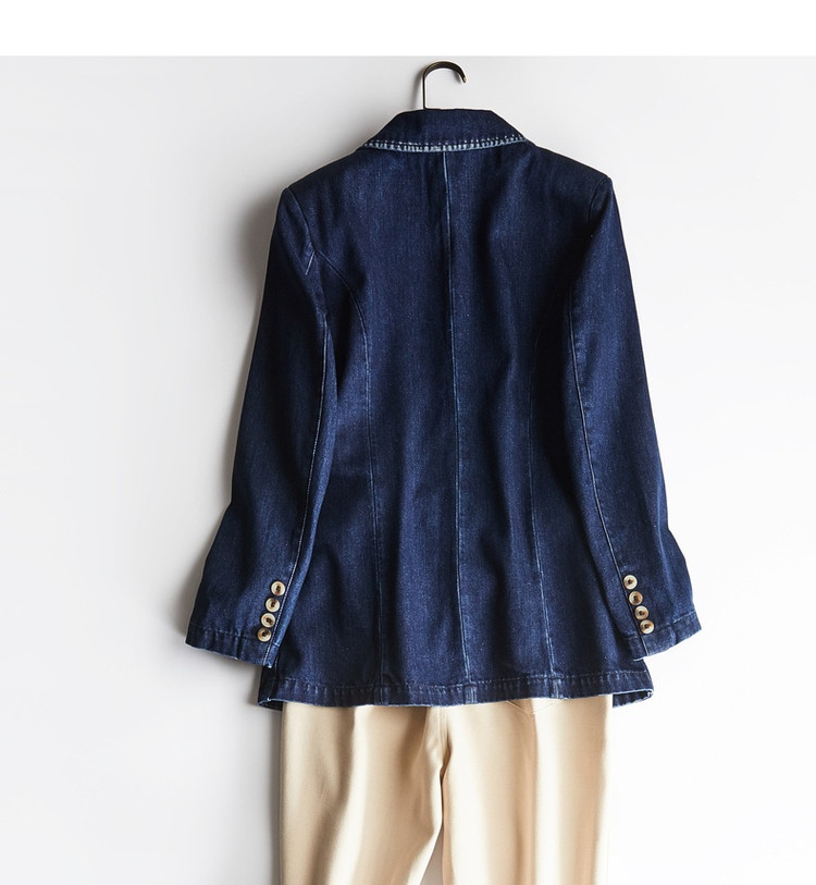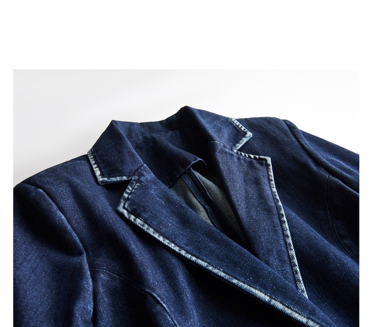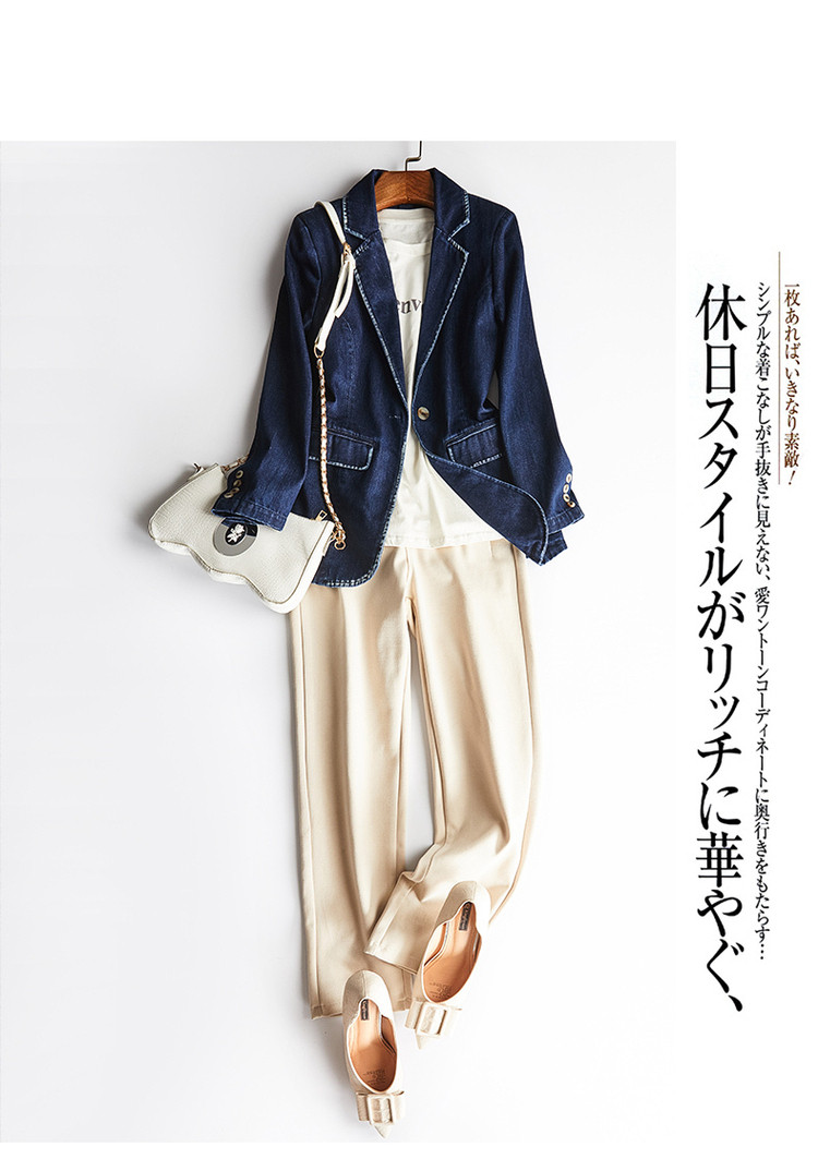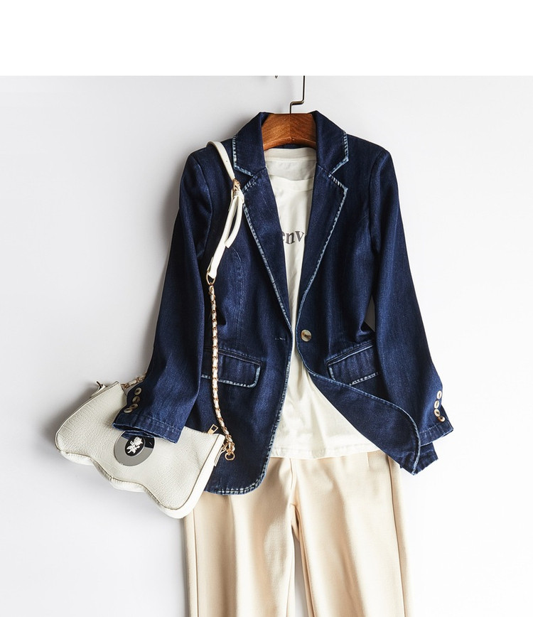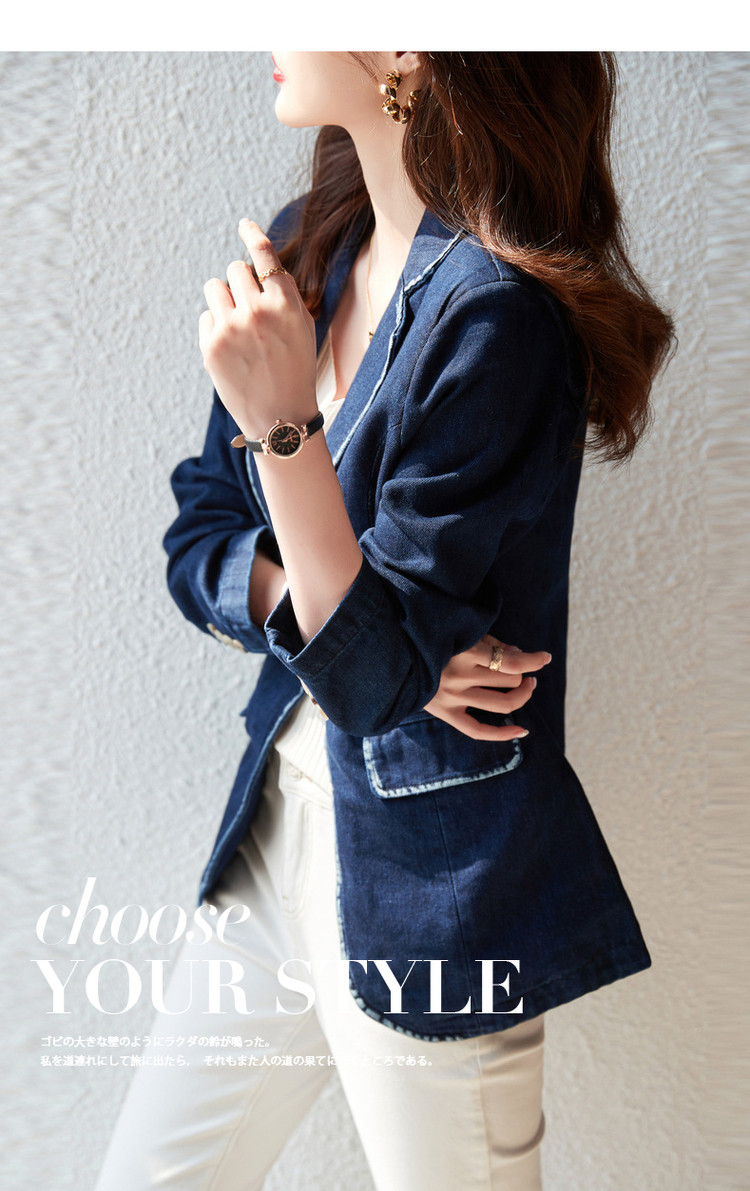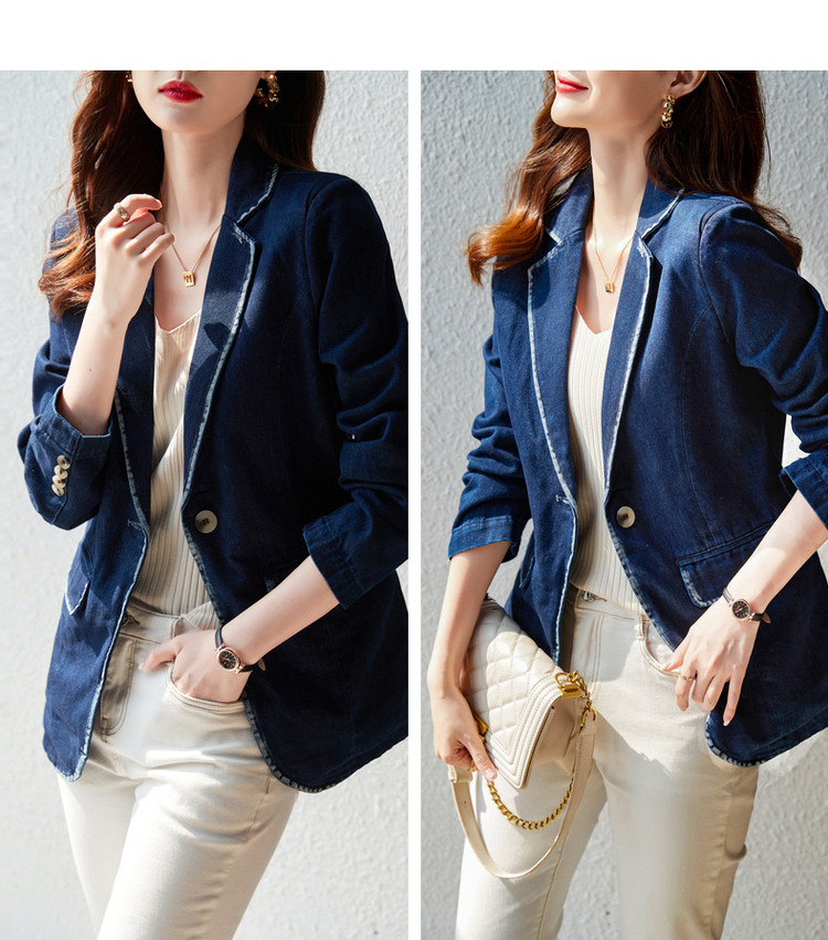 【智型丹宁】春秋通勤风云朵棉撞色边翻领一粒扣修身女式牛仔外套 171457